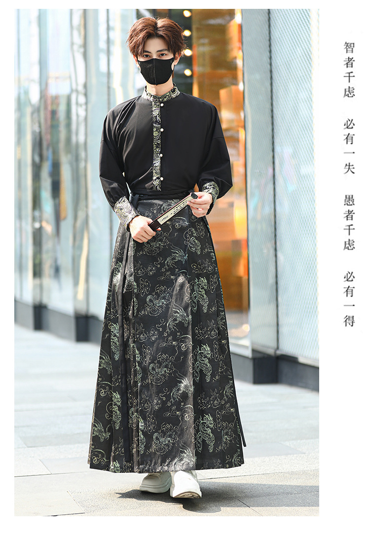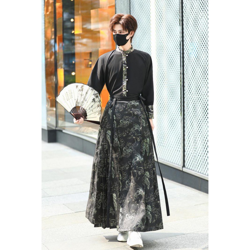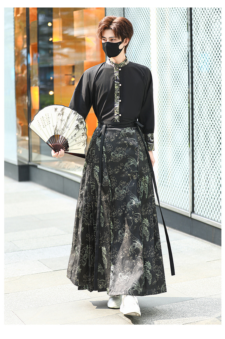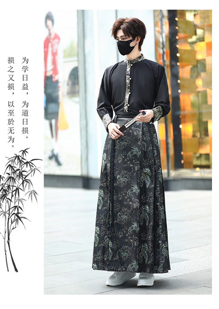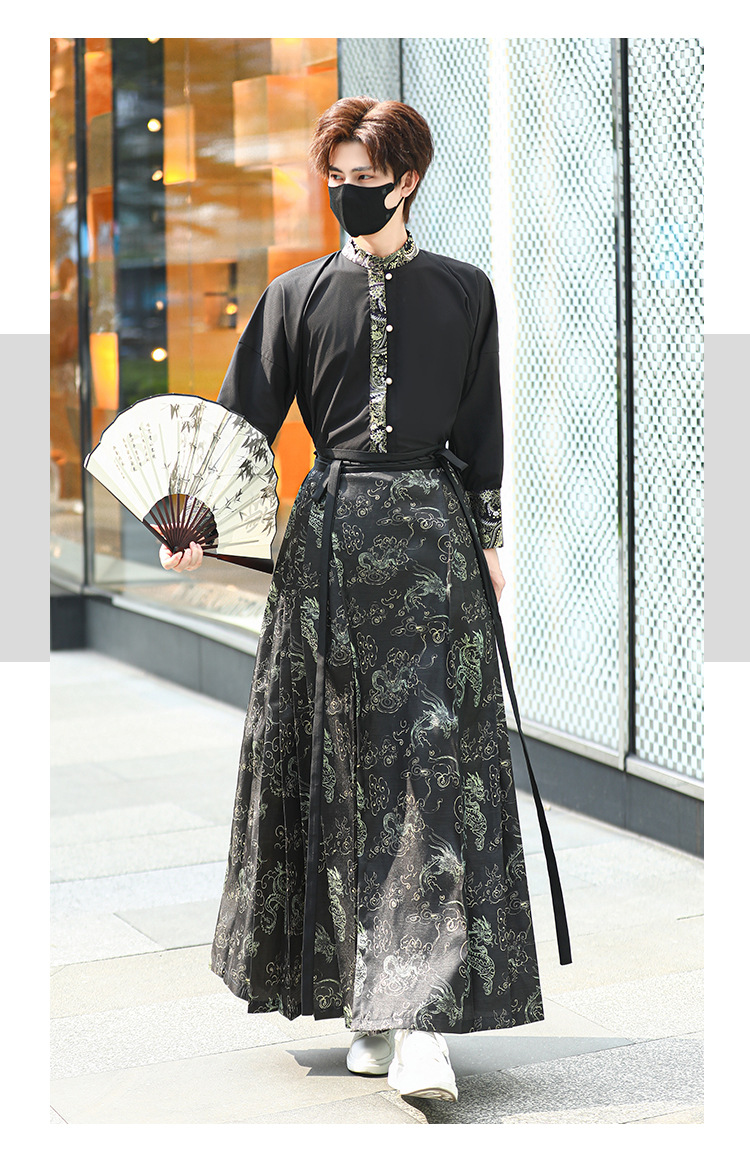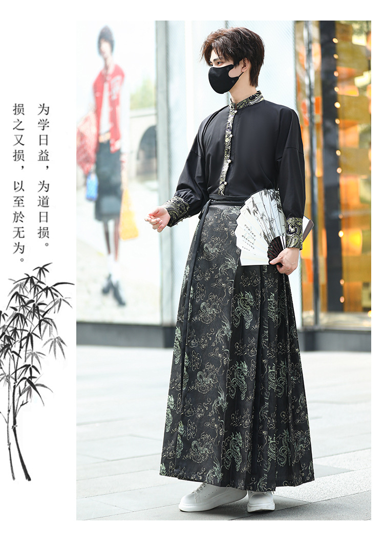 新中式男装国风汉服情侣CP装男女同款 烫金龙纹古风大码马面裙