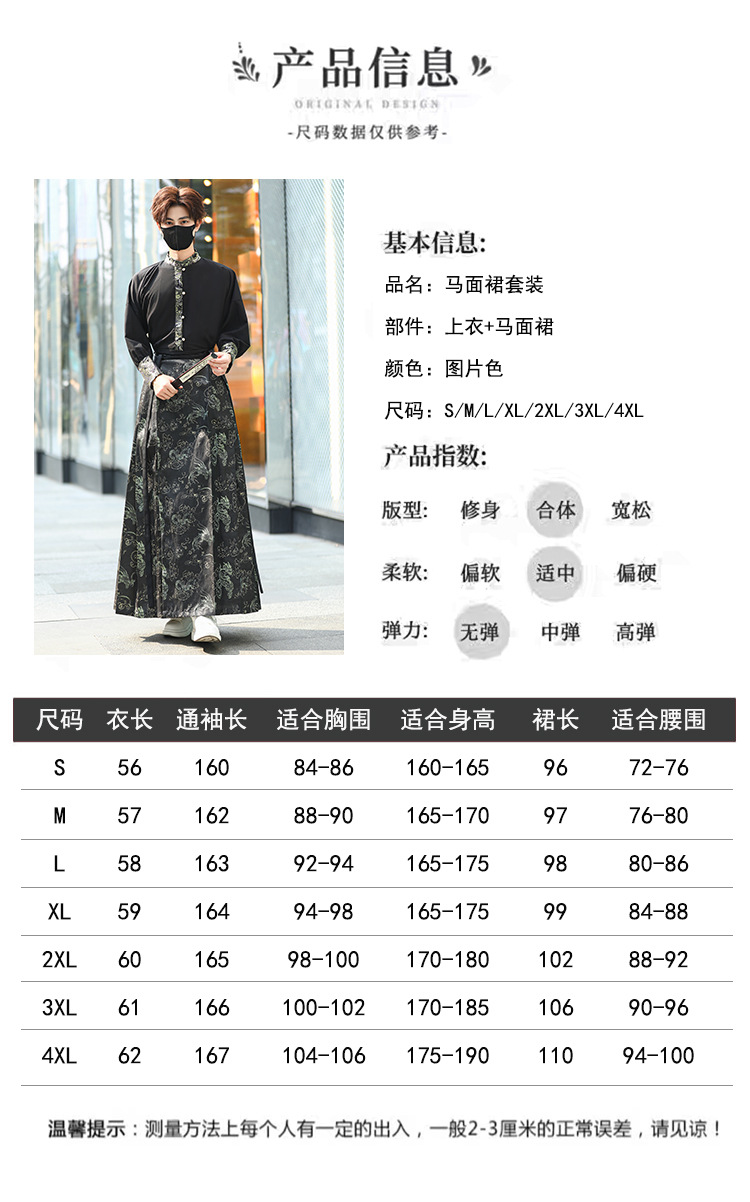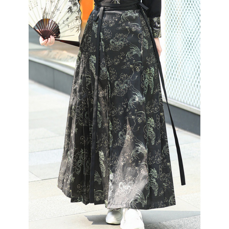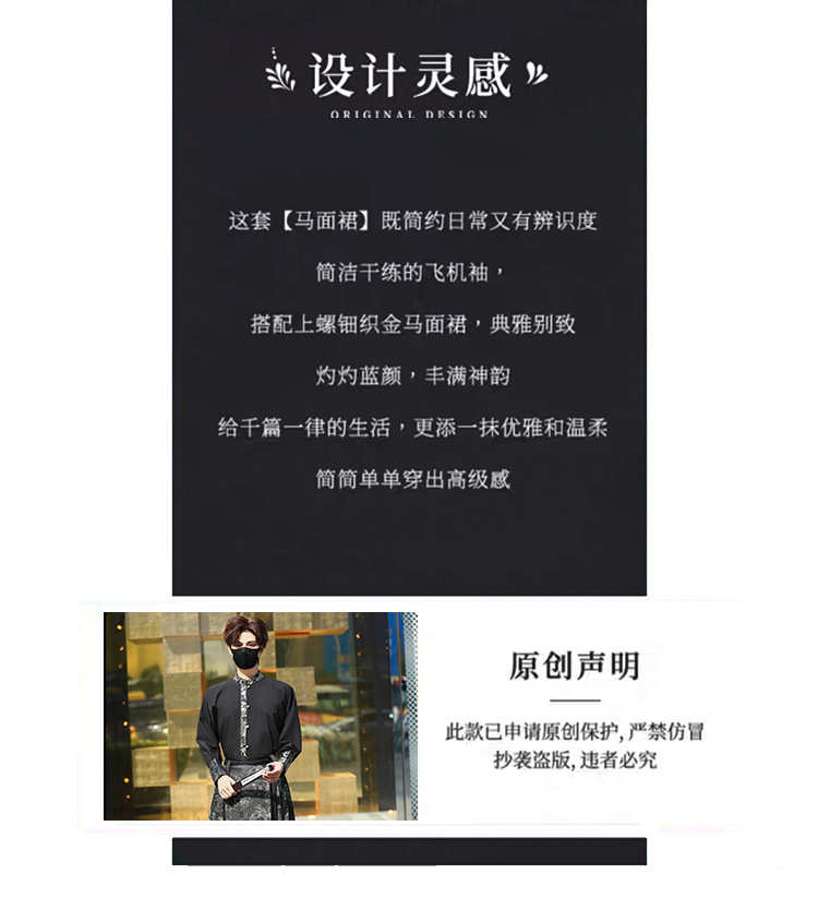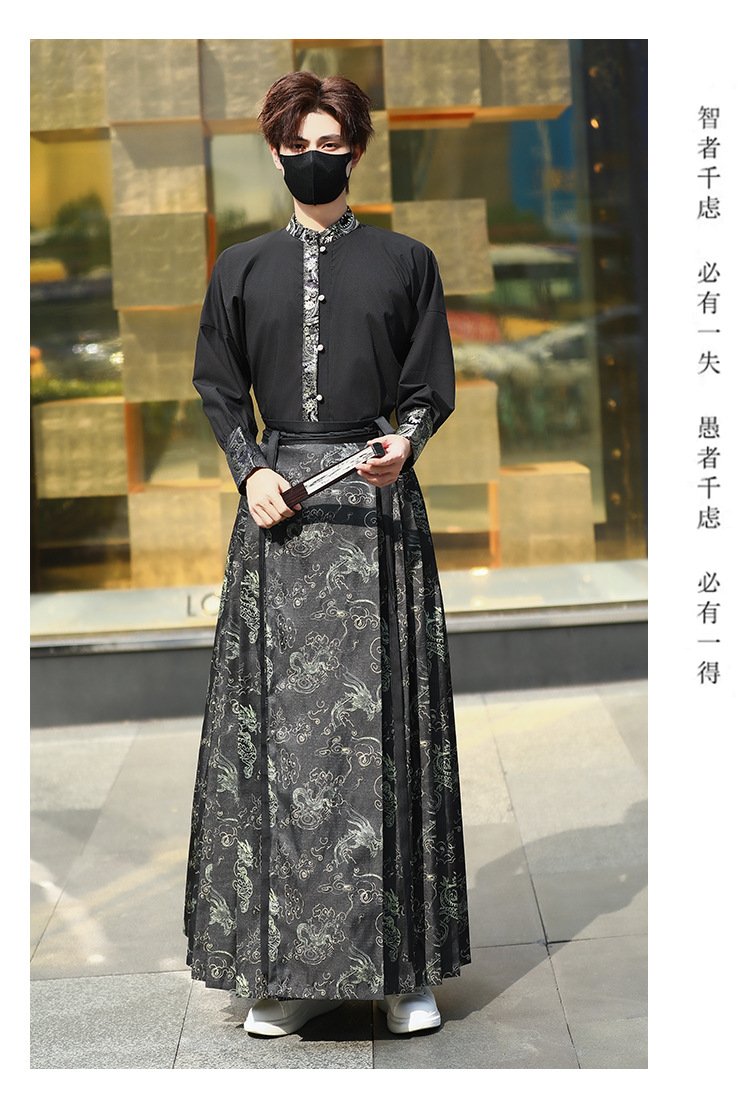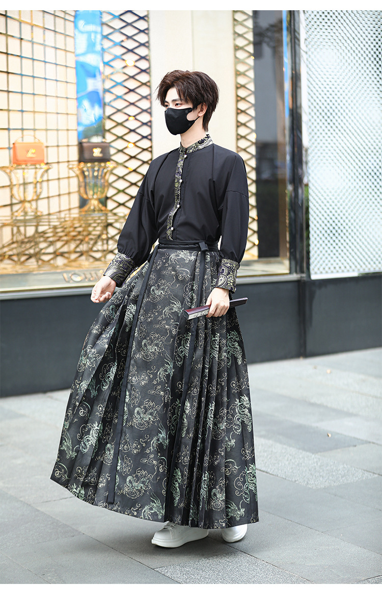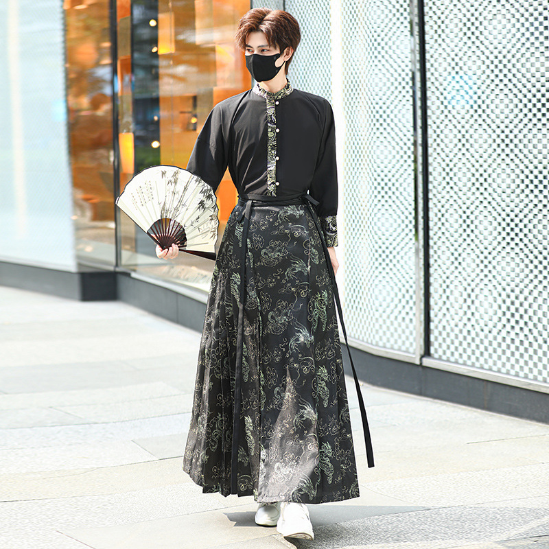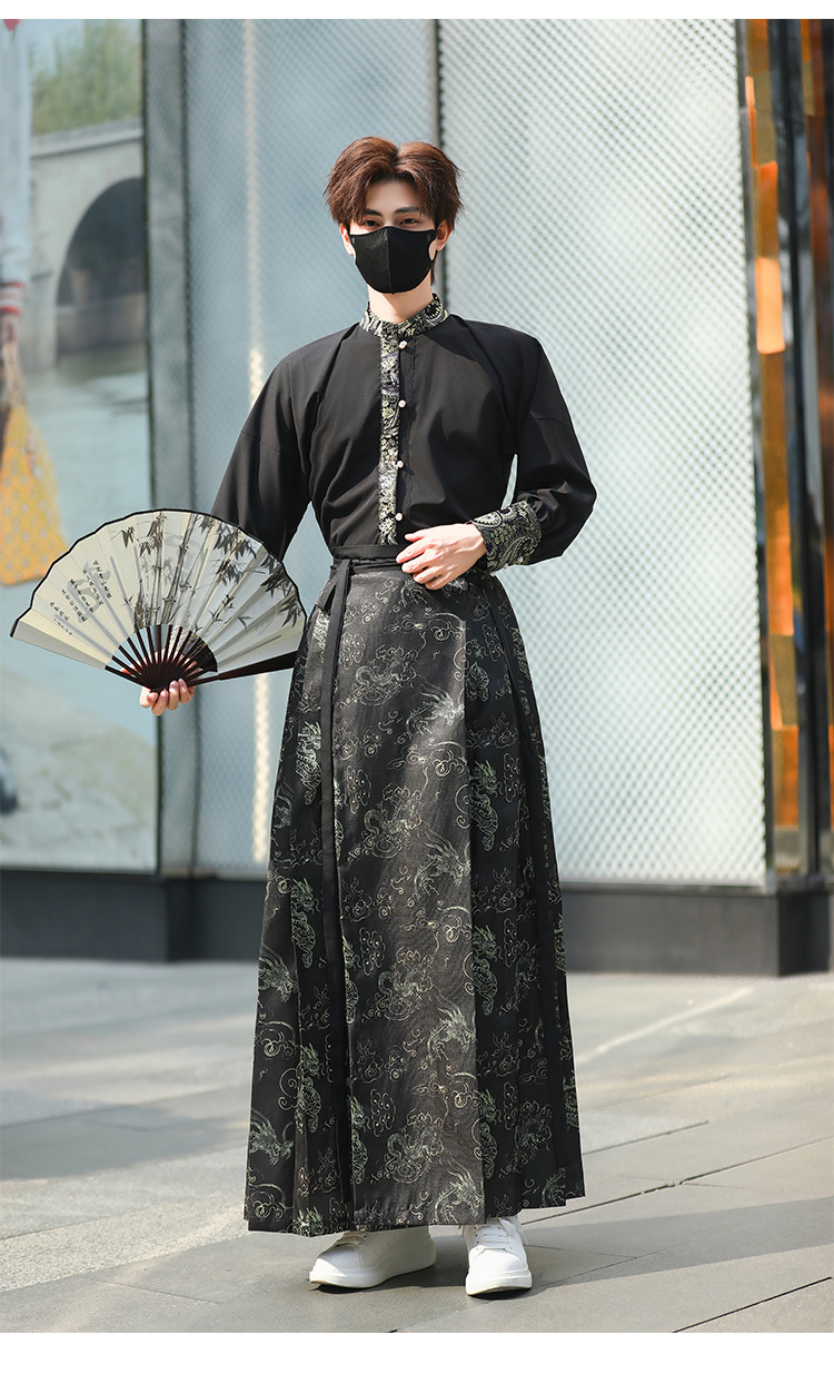 新中式男装国风汉服情侣CP装男女同款 烫金龙纹古风大码马面裙