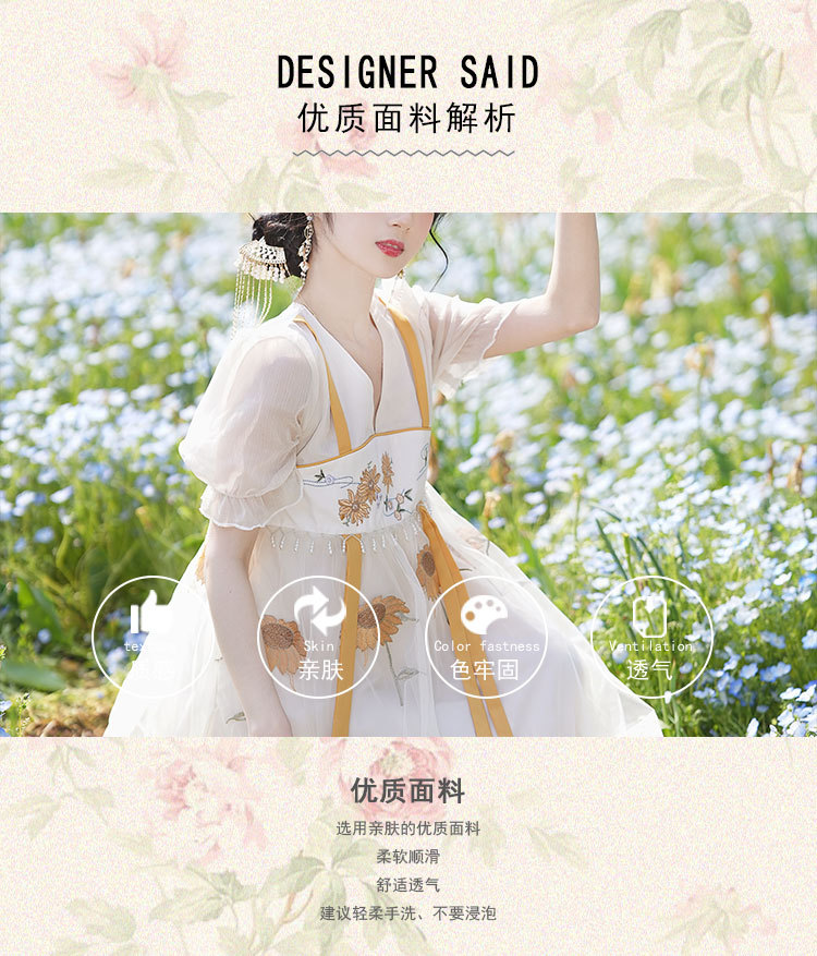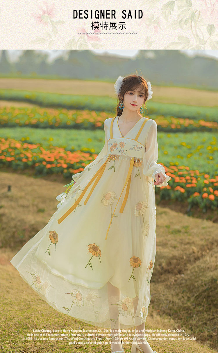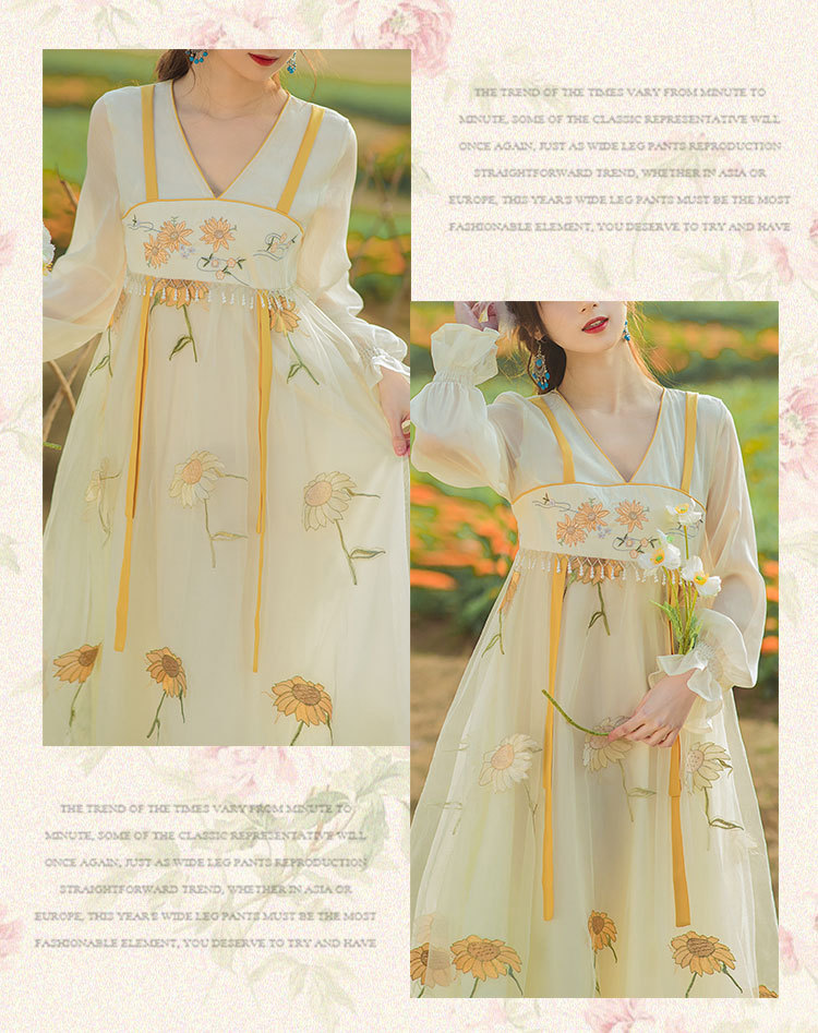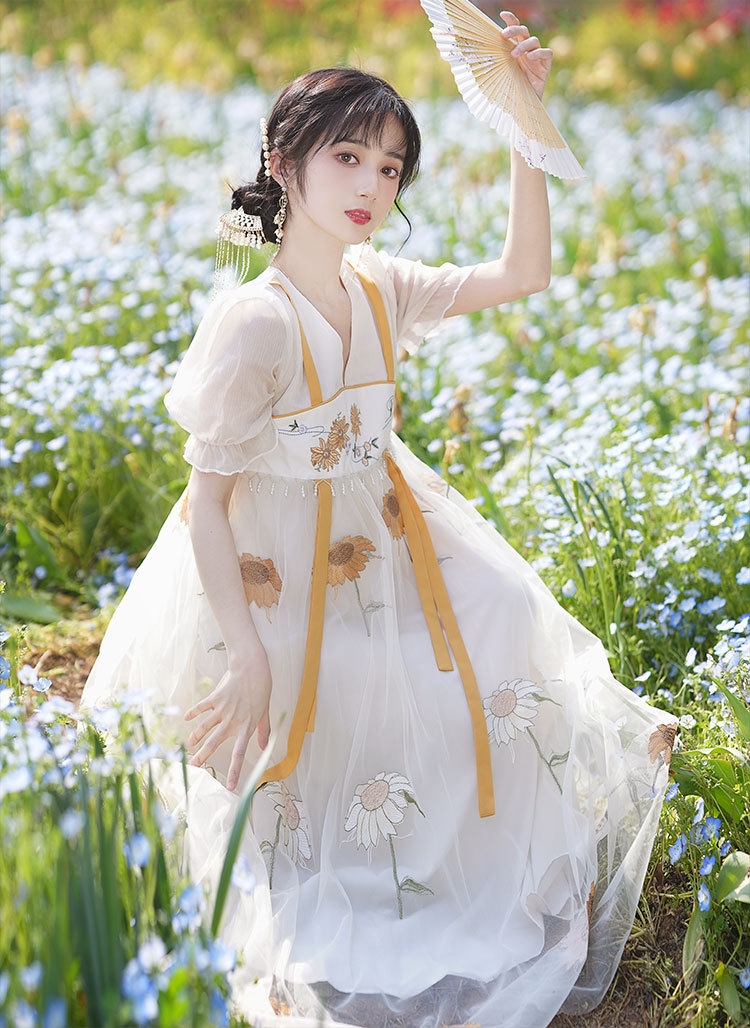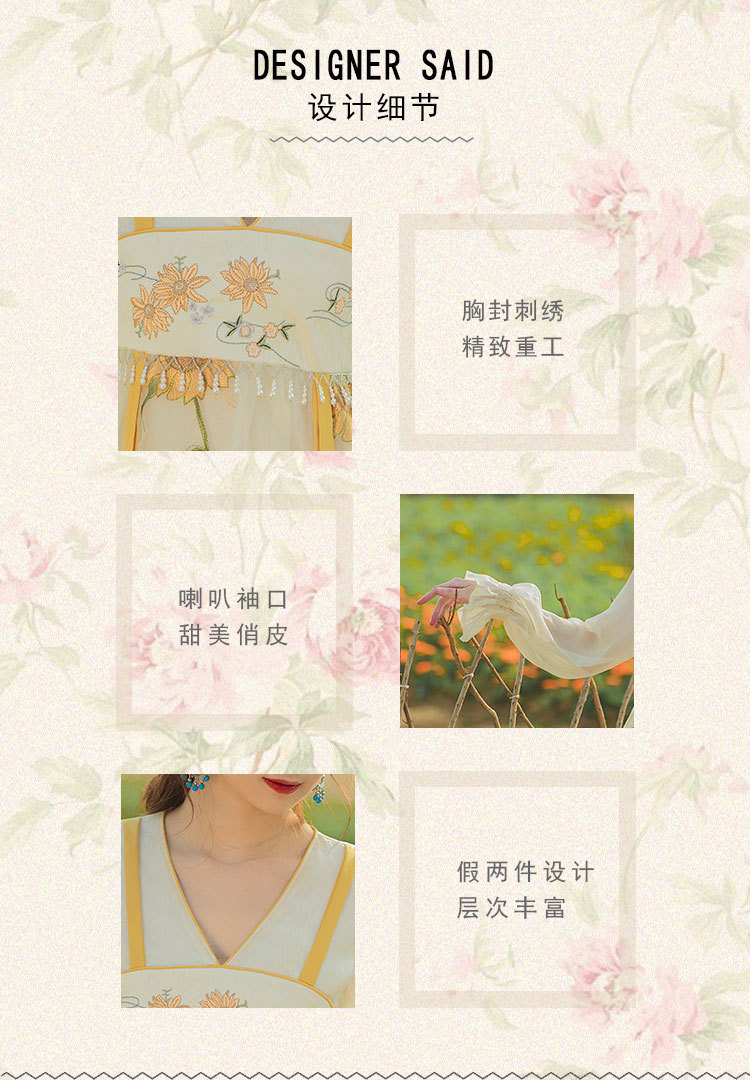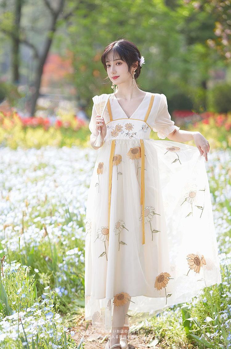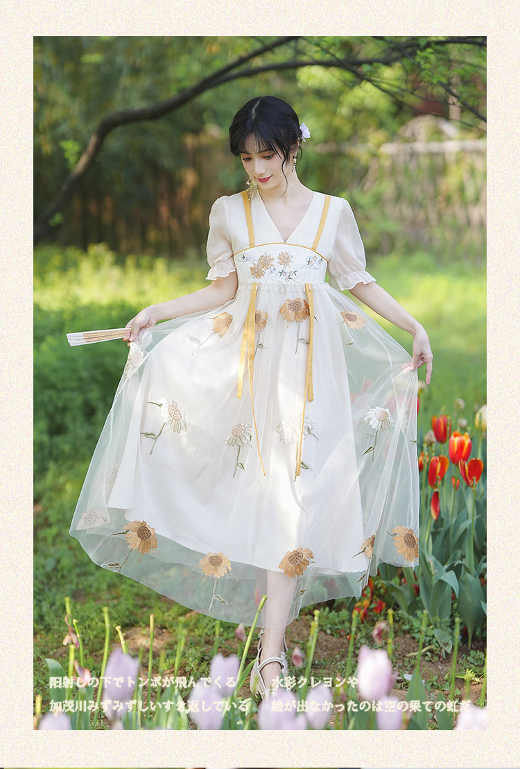 中国风齐胸裙短袖绣花日常女装汉元素绣花重工订珠国风复古连衣裙