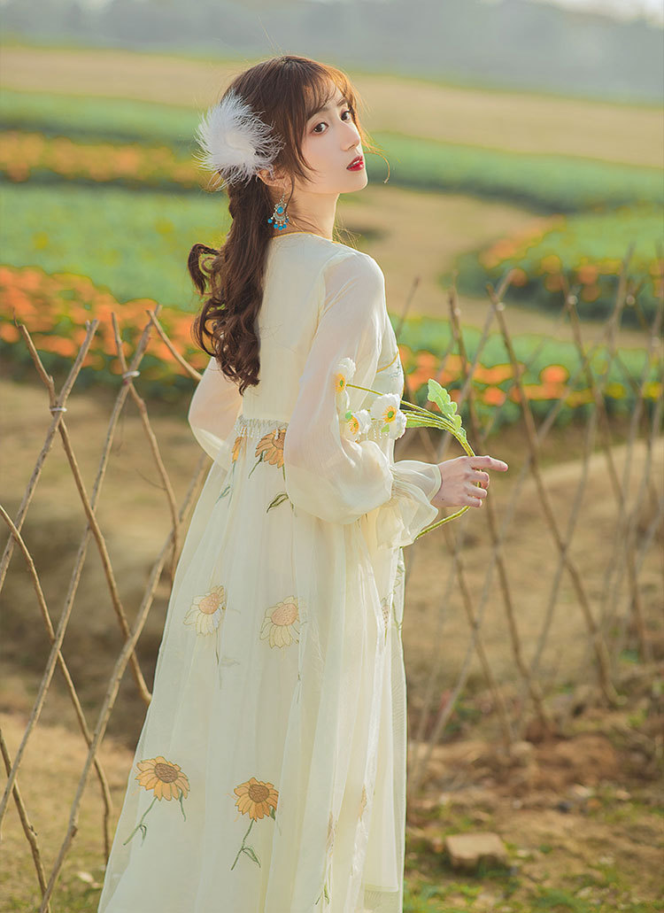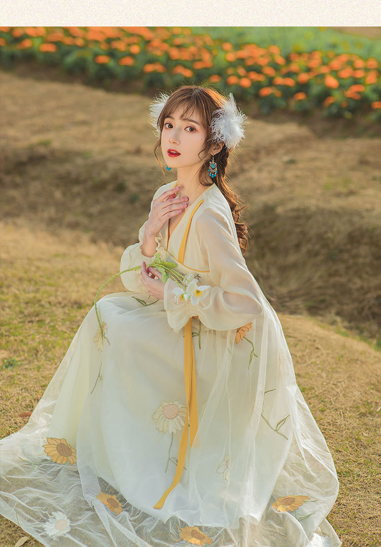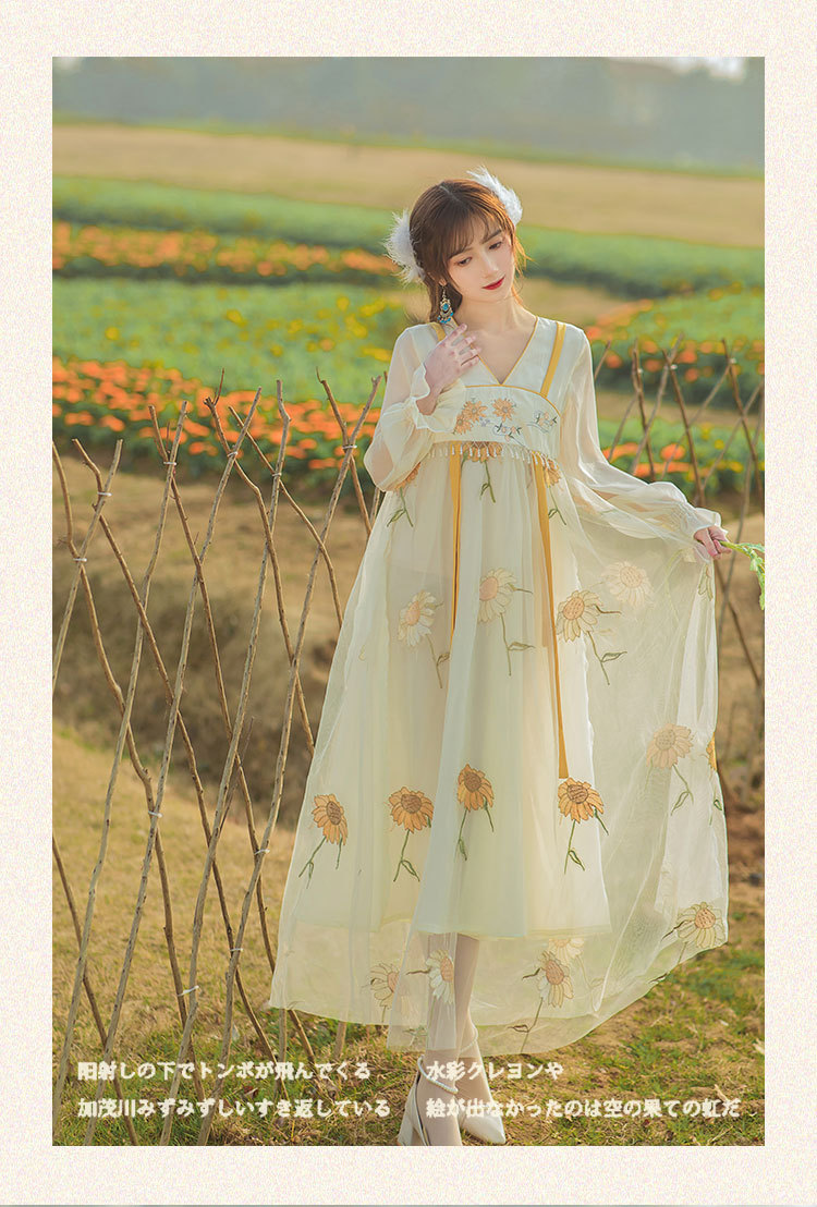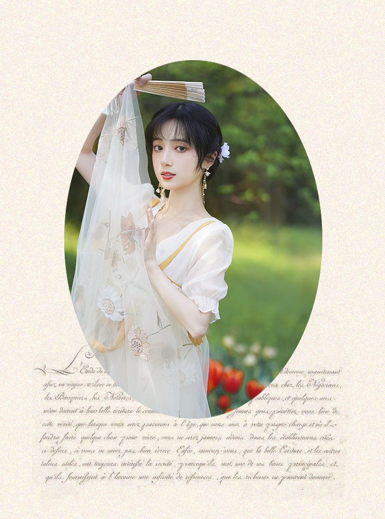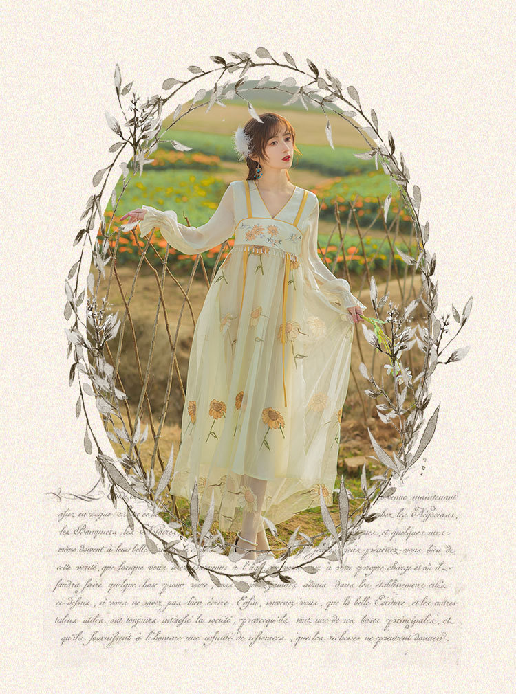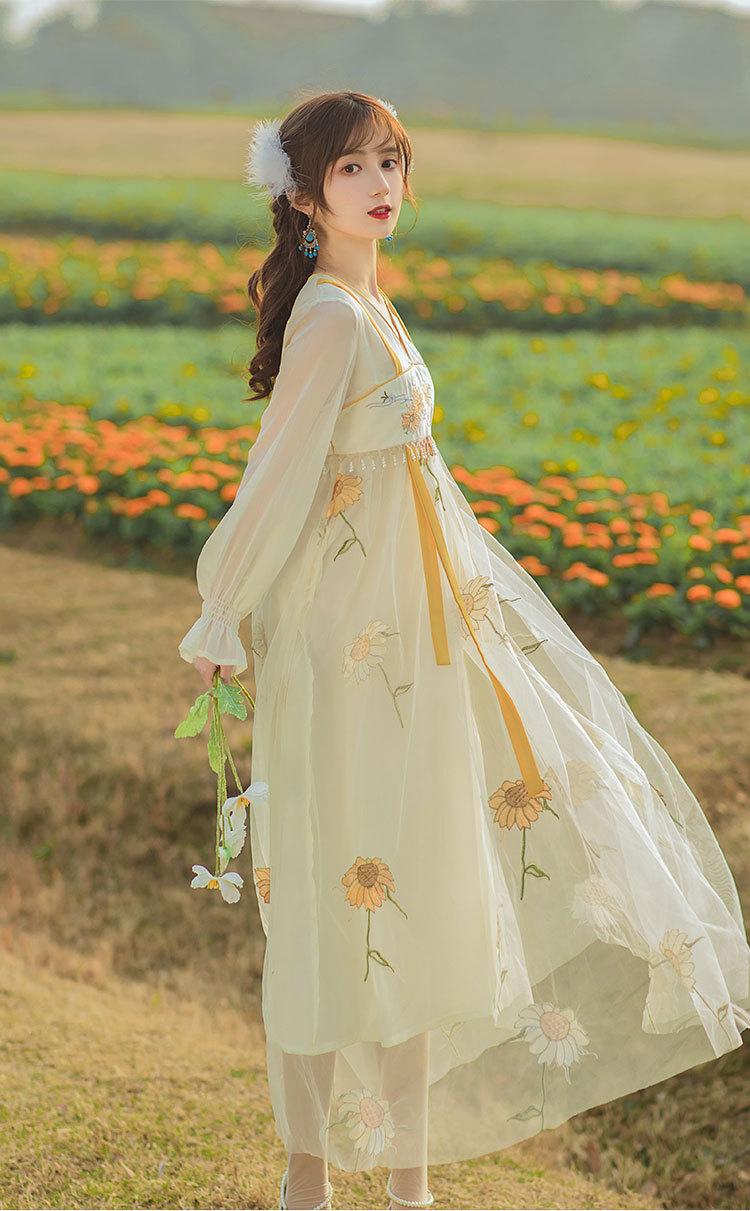 中国风齐胸裙短袖绣花日常女装汉元素绣花重工订珠国风复古连衣裙