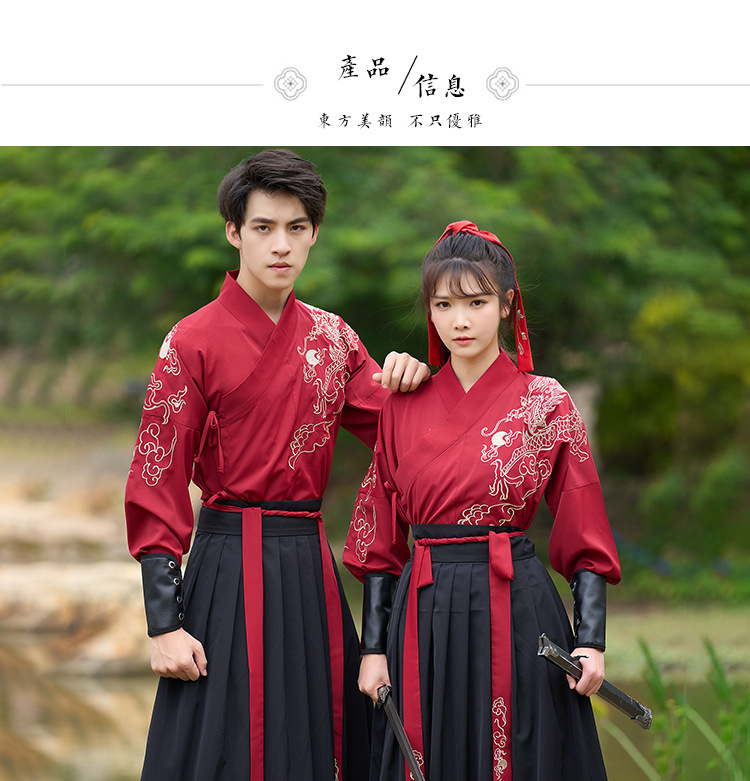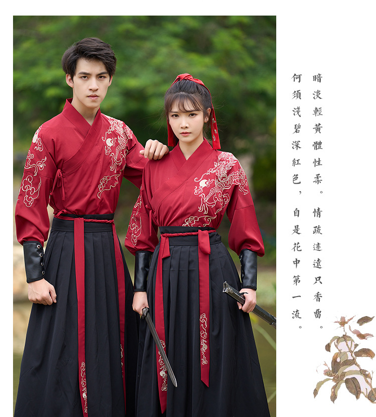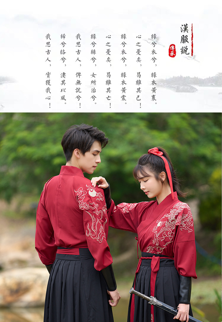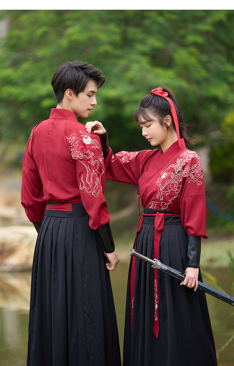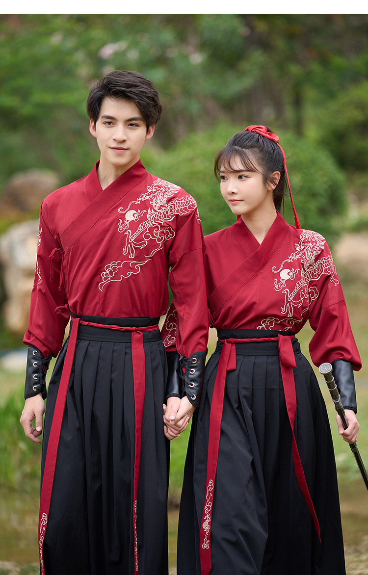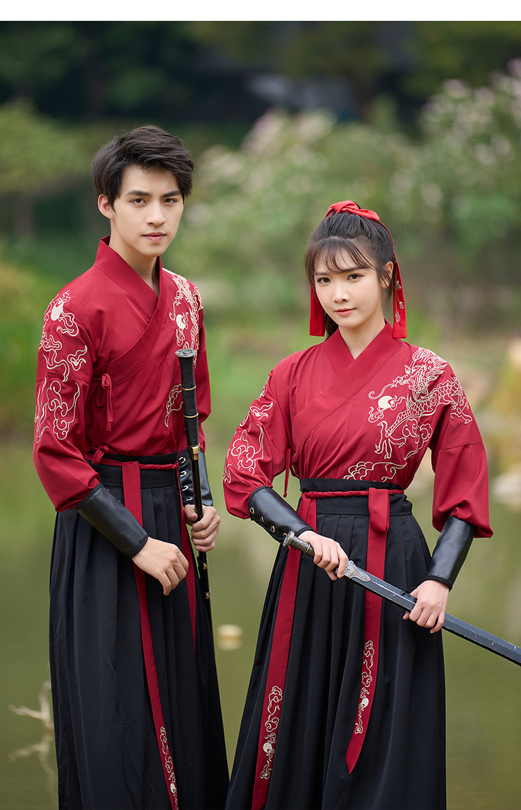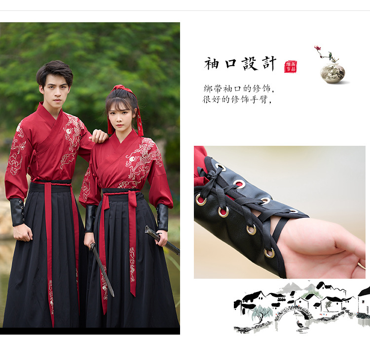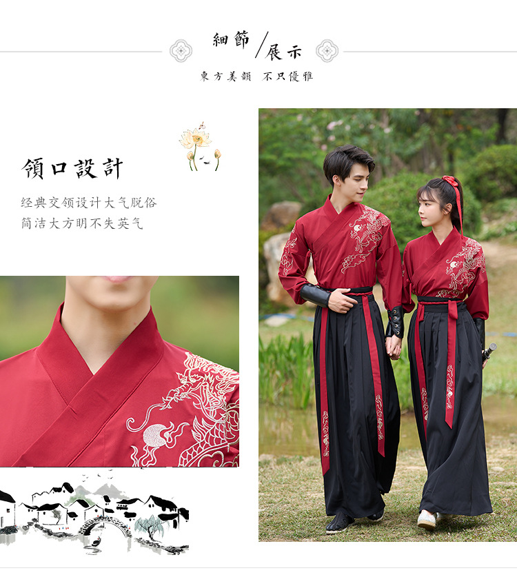 中国风新款古装男式龙纹长袖汉服男女款女侠范古典情侣装演出班服