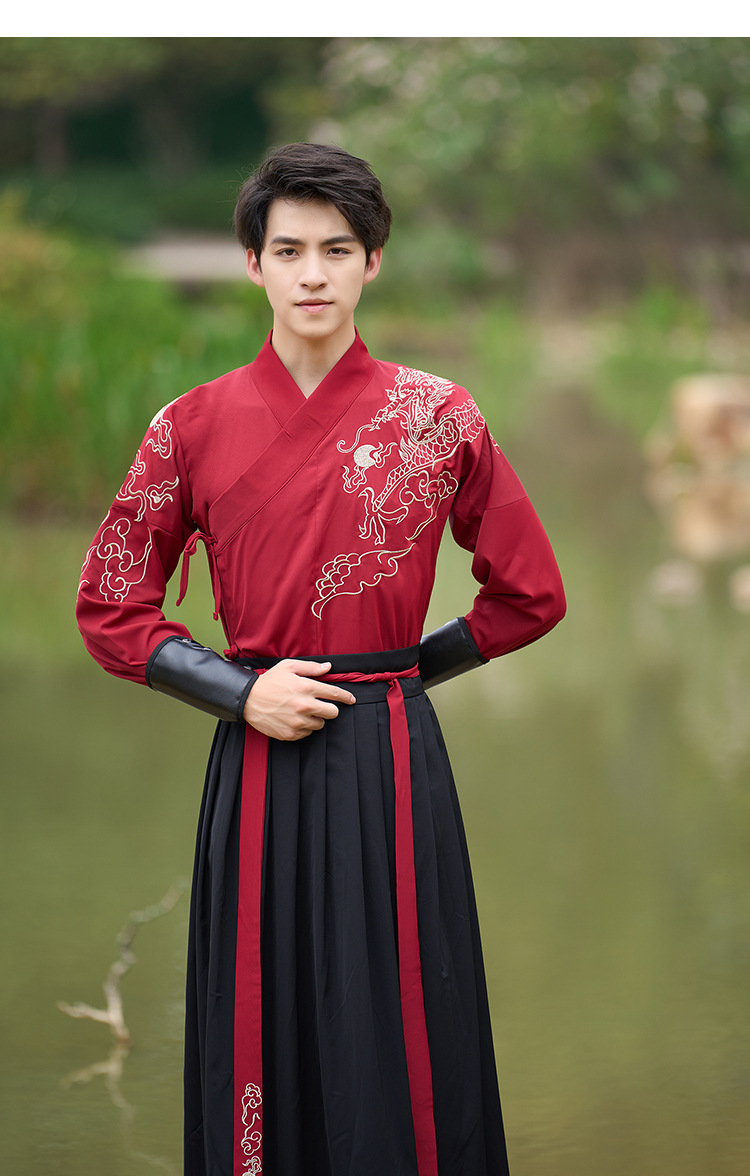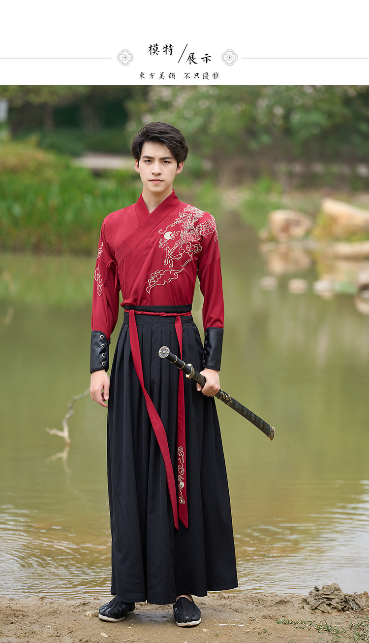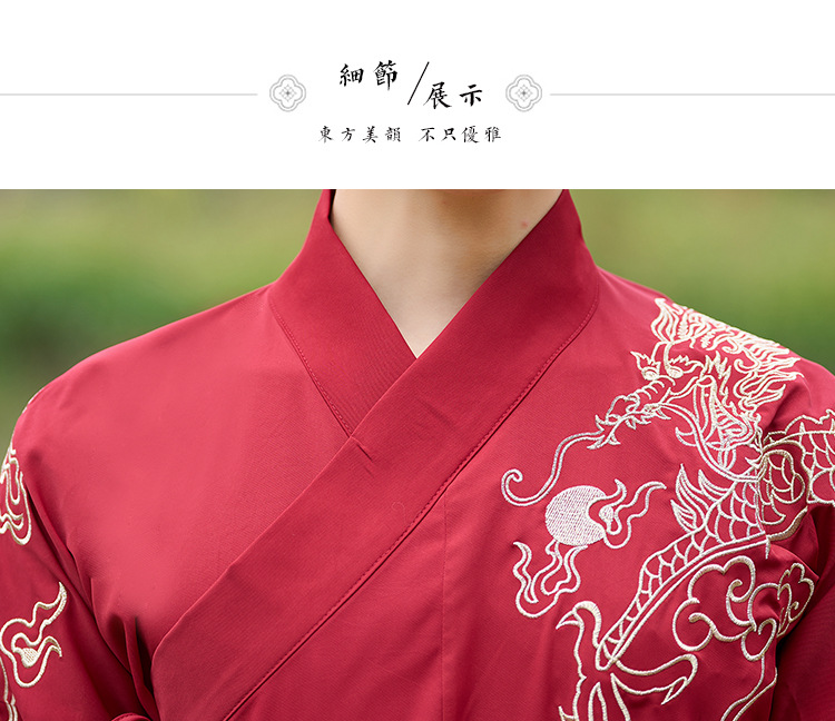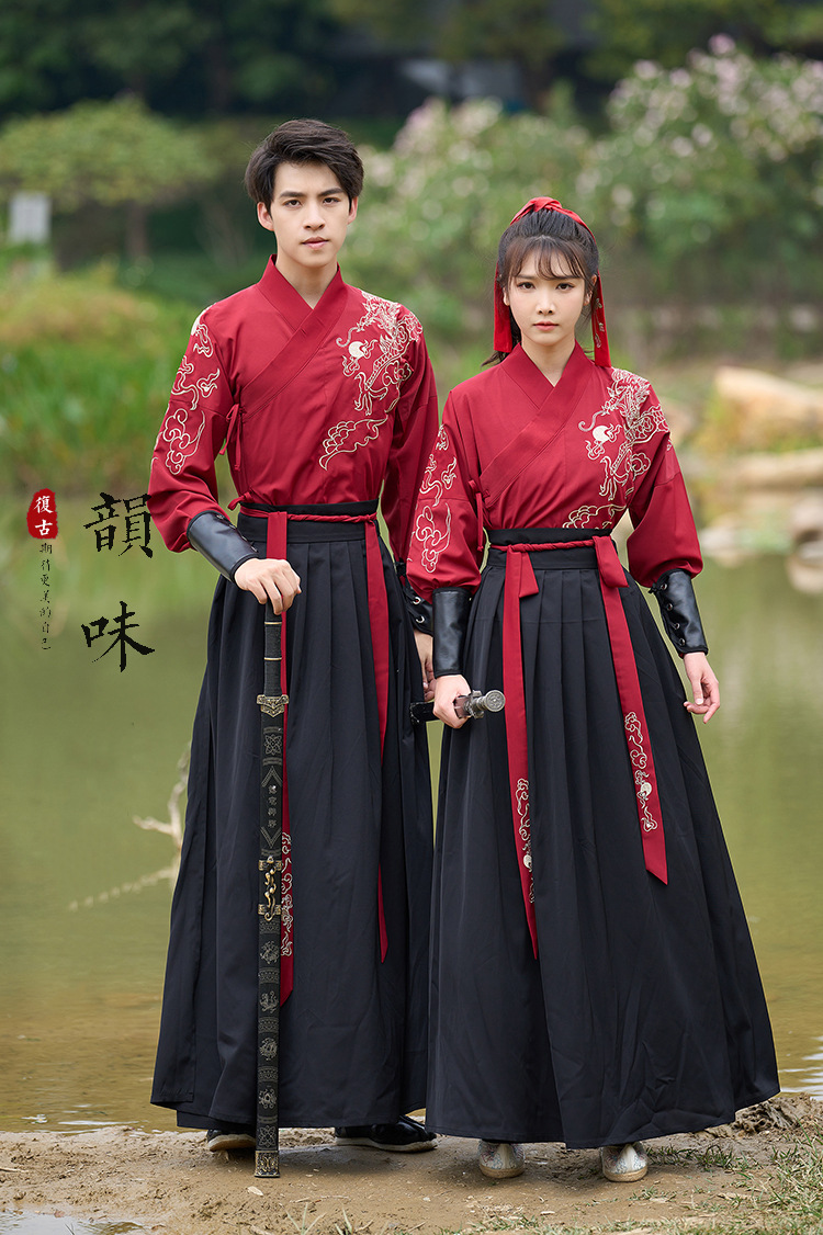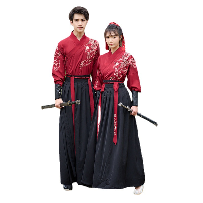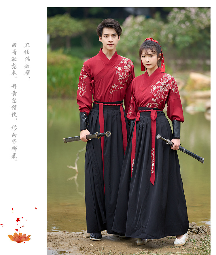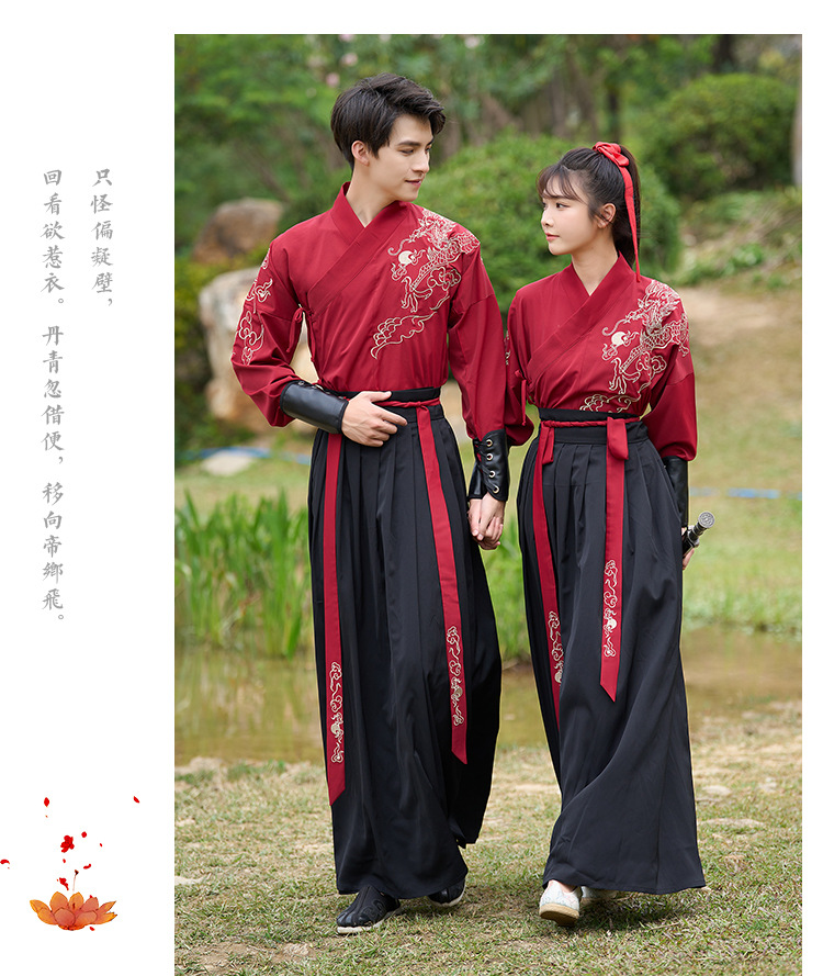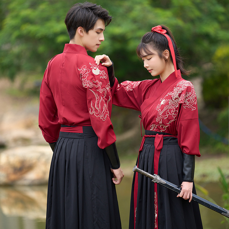 中国风新款古装男式龙纹长袖汉服男女款女侠范古典情侣装演出班服