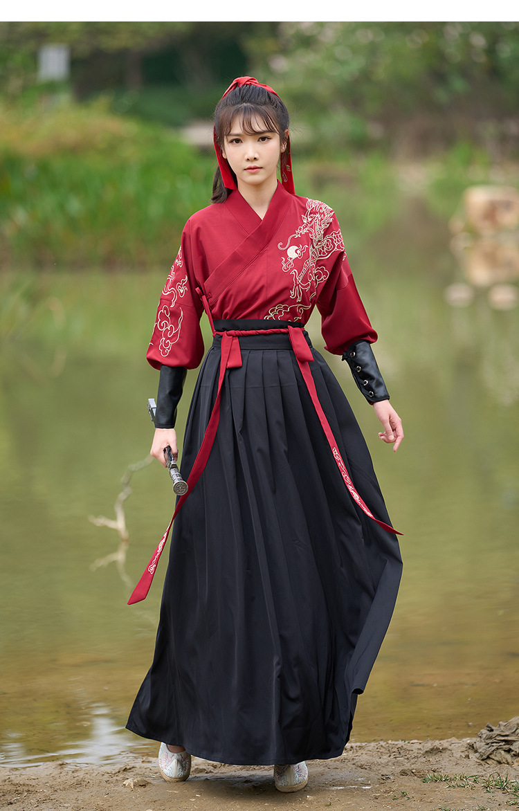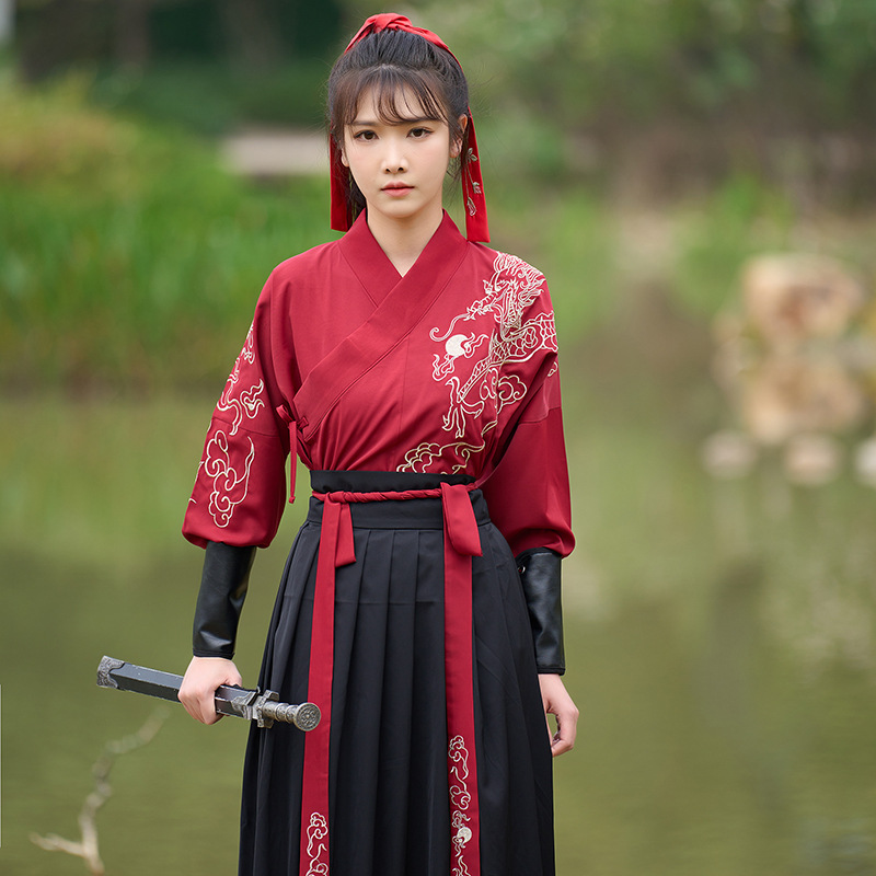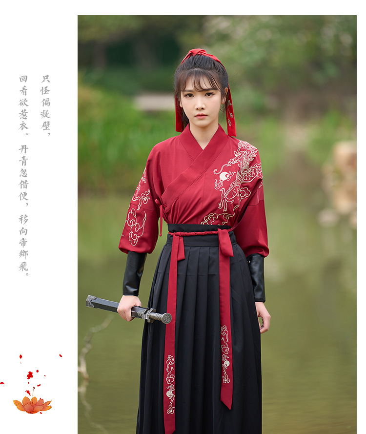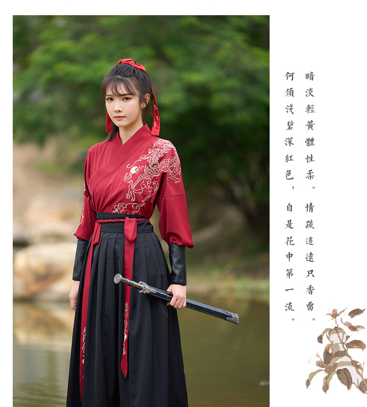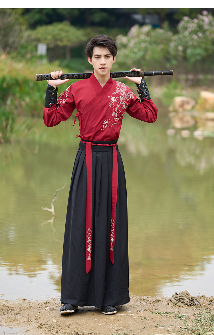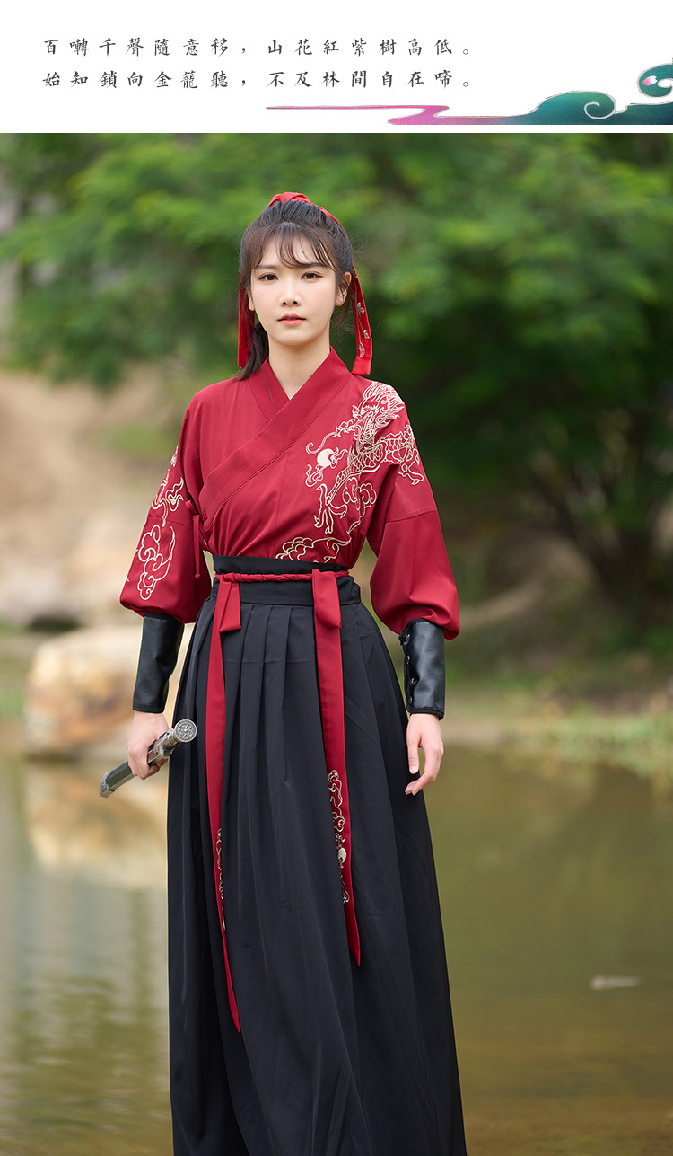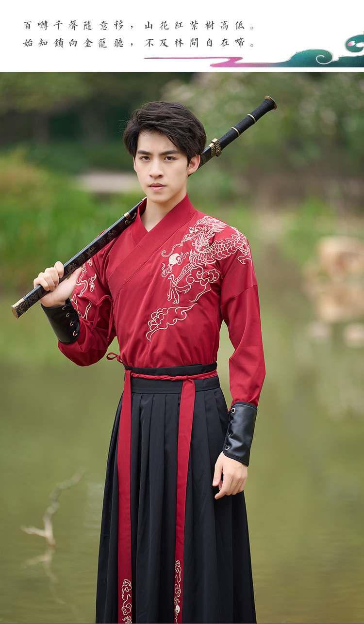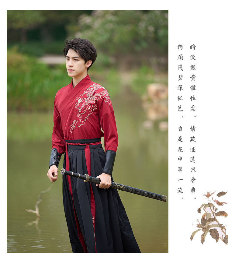 中国风新款古装男式龙纹长袖汉服男女款女侠范古典情侣装演出班服