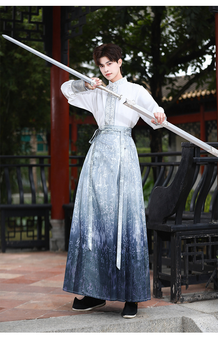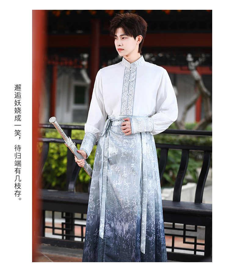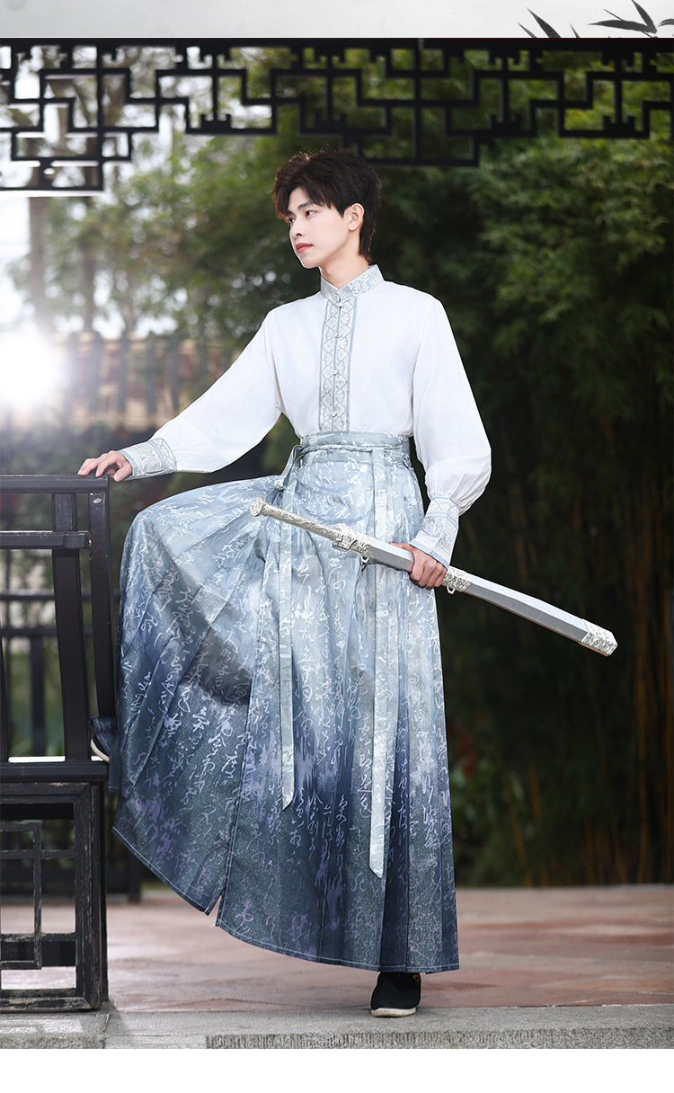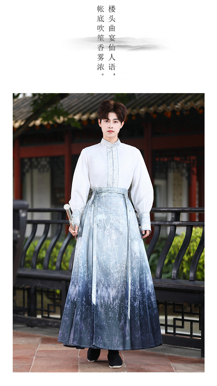 中国风汉服男士汉元素刺绣花长袖印花马面裙古装套装上衣学生班服