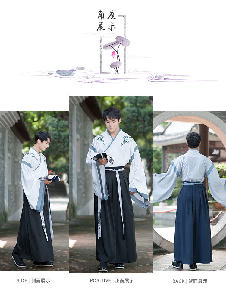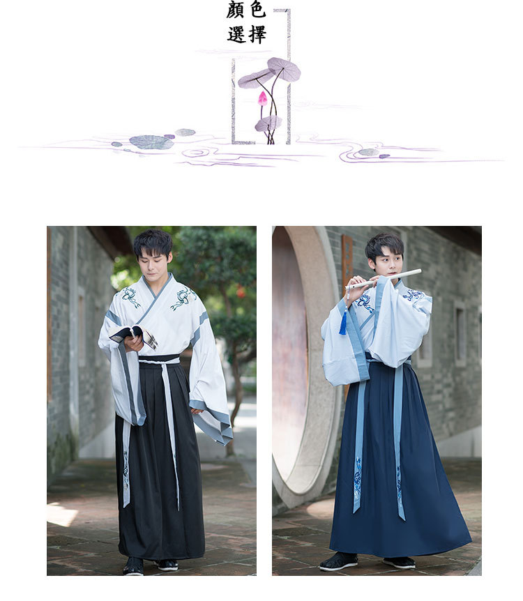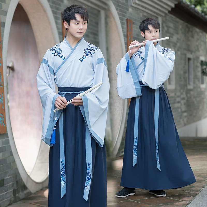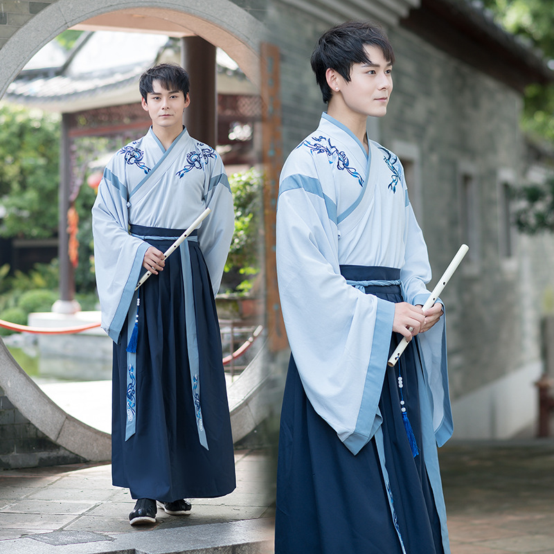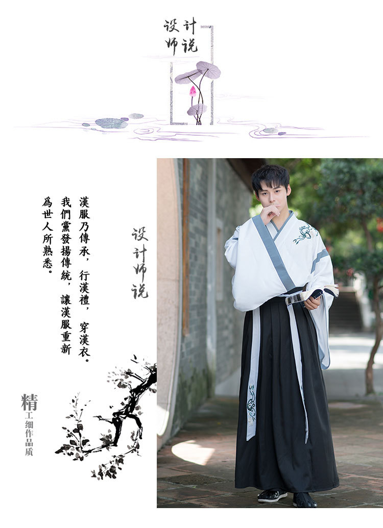 中国风男式汉服大袖衫套装古装汉元素古风魏晋风儒生刺绣交领襦裙