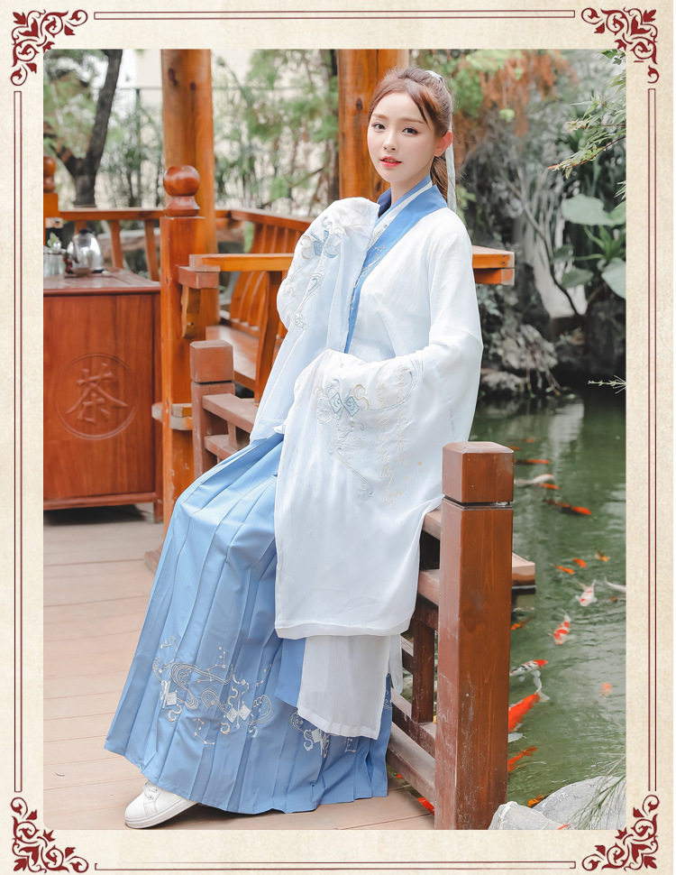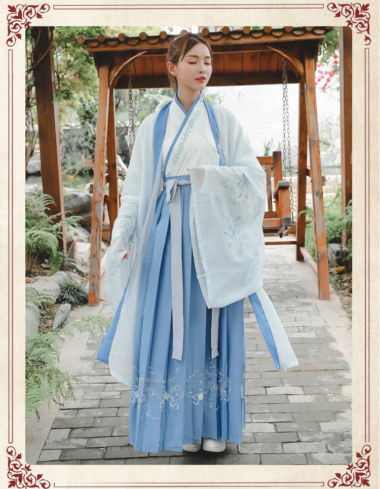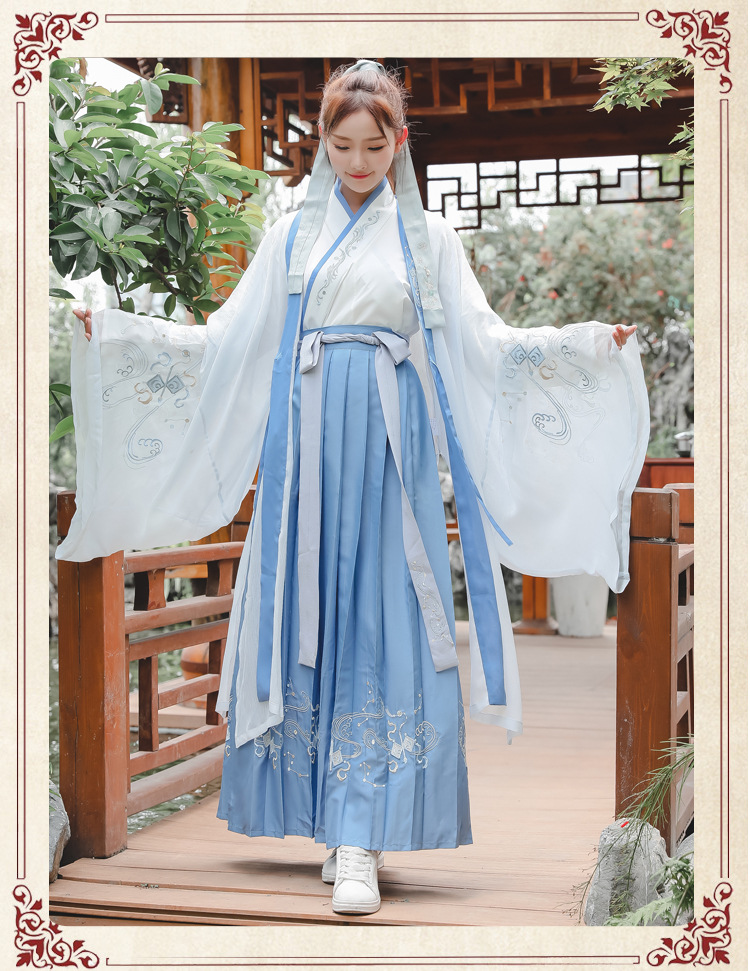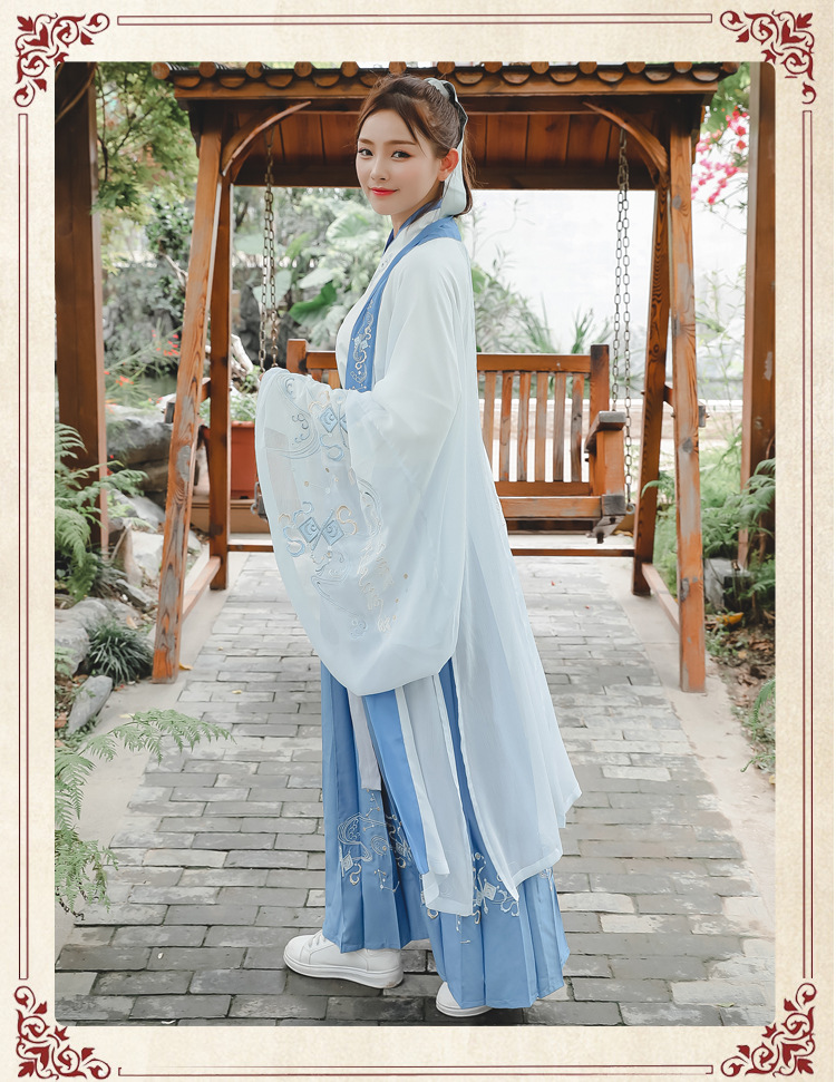 中国风浅蓝色清新薄纱大袖外披仙气交领襦裙三件套男女古风套装