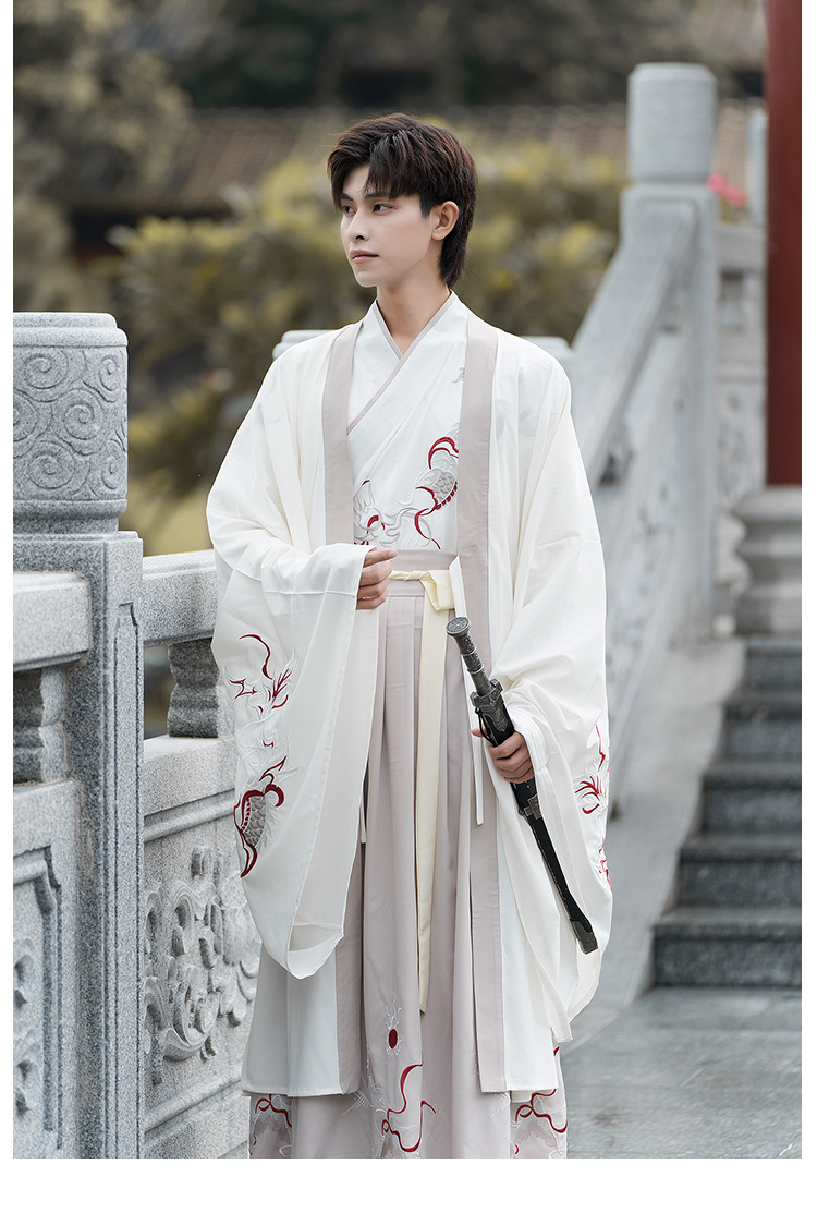 中国风春夏款古装女装汉服男情侣套装龙纹古风交领绣花大氅三件套