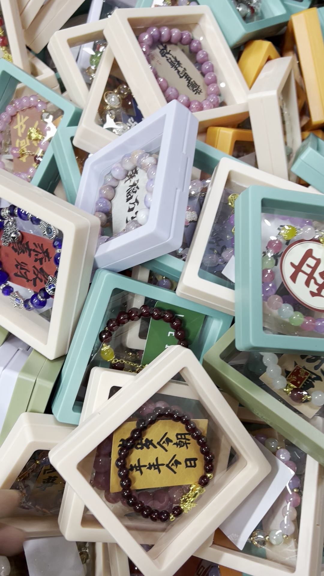 高档透明悬浮展示盒包装,款式随机混搭发货,挑款联系客服。精品盒装手链,发货都有带盒子,独立包装盒。款式随机混搭,每天都在上新,没有一一拍图