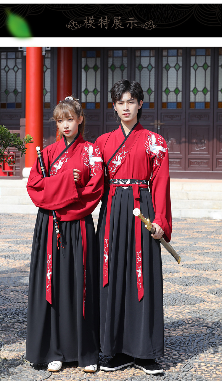 中国风仙鹤交领襦裙书生汉服男女情侣CP装中国风大码仙气古风套装