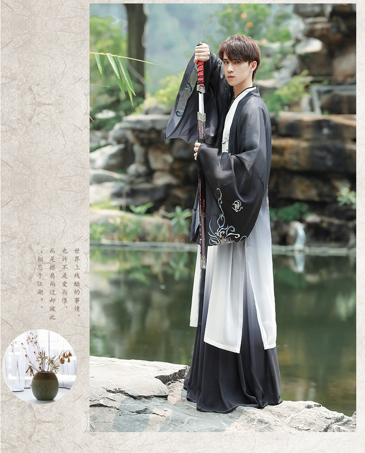 实拍超仙汉服 学生表演服交领齐腰6米超大摆水墨渐变重工刺绣情侣