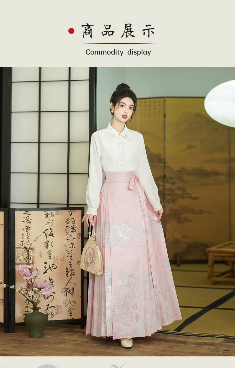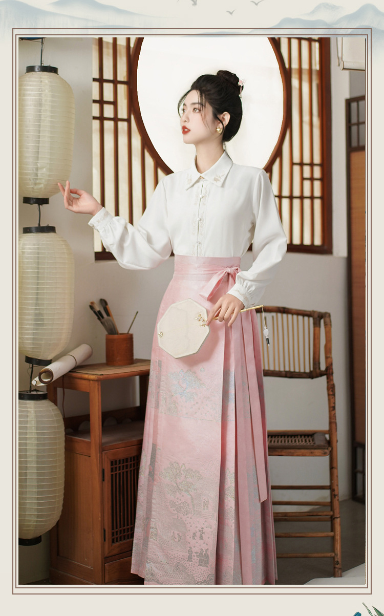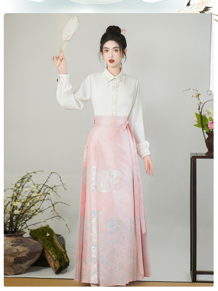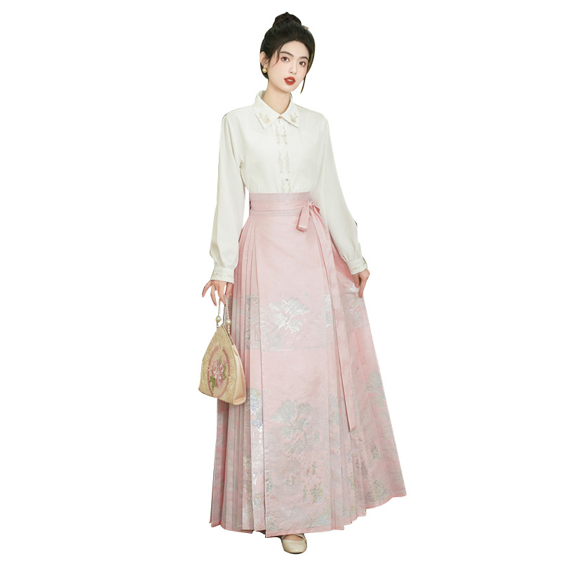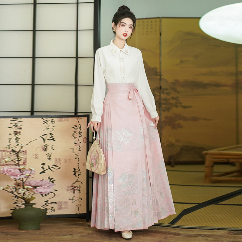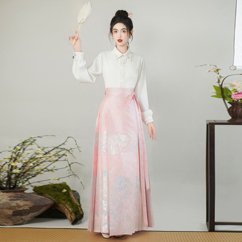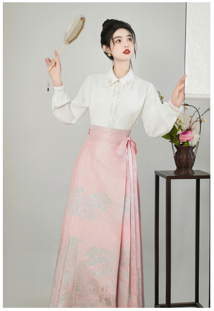 古风粉黛佳人织金马面裙中国风粉色系女装日常新中式刺绣衬衣套装