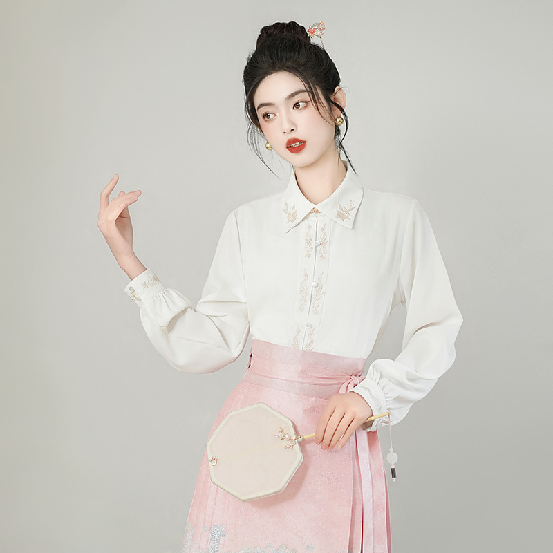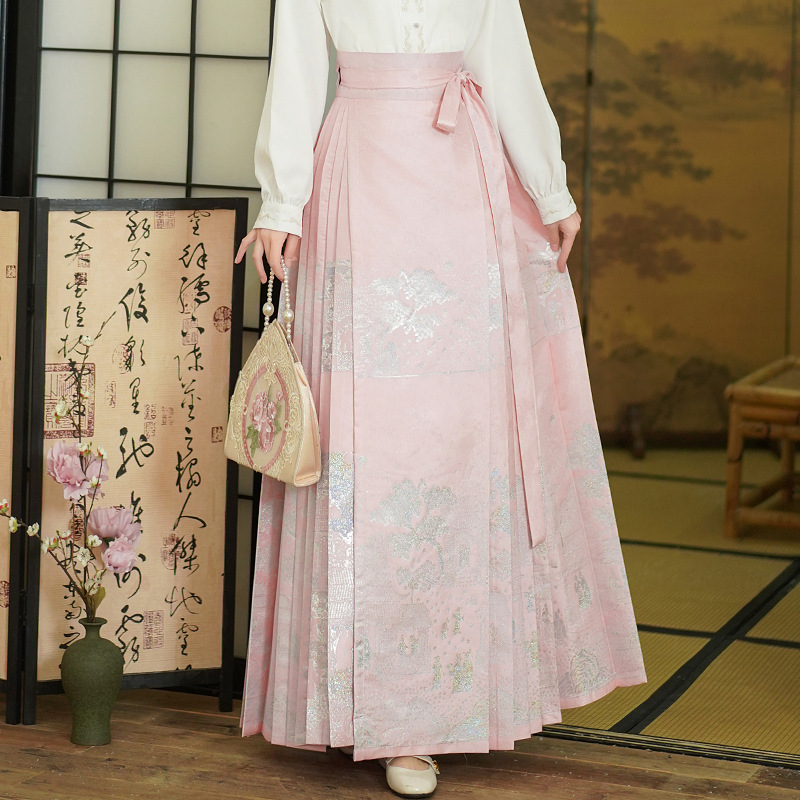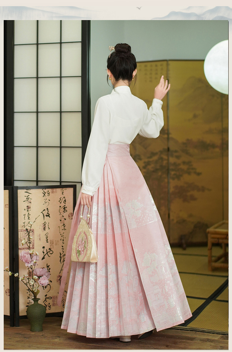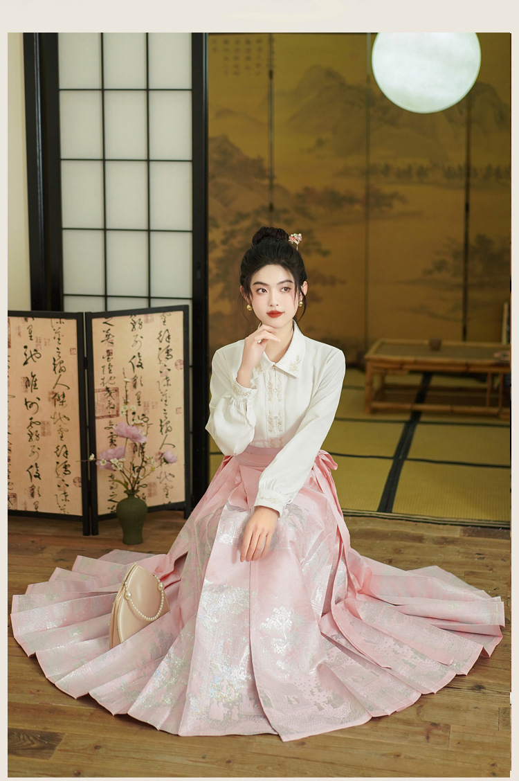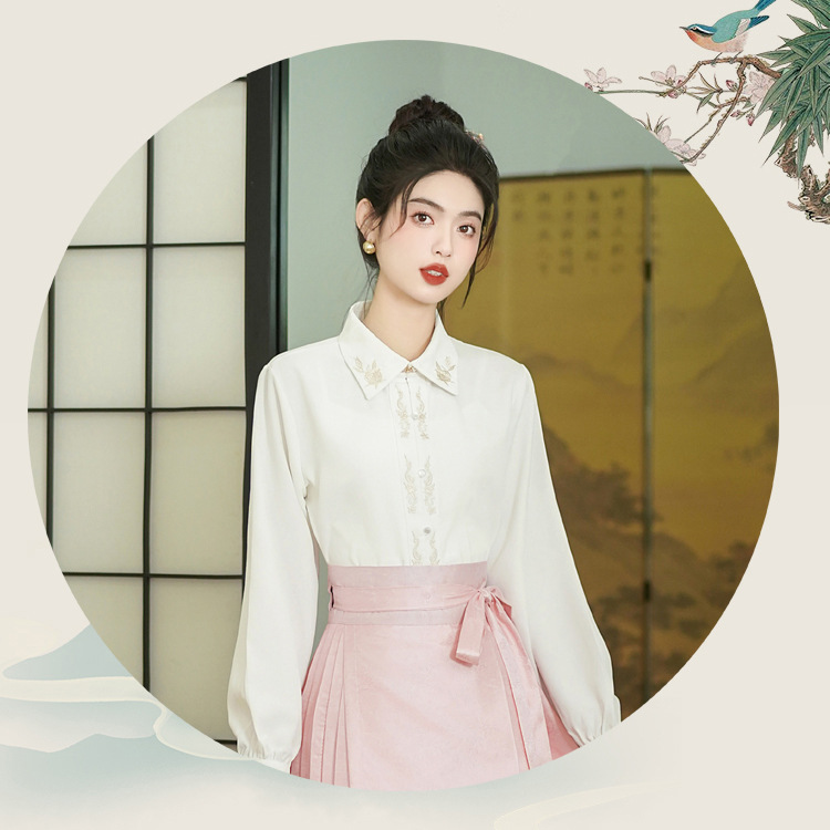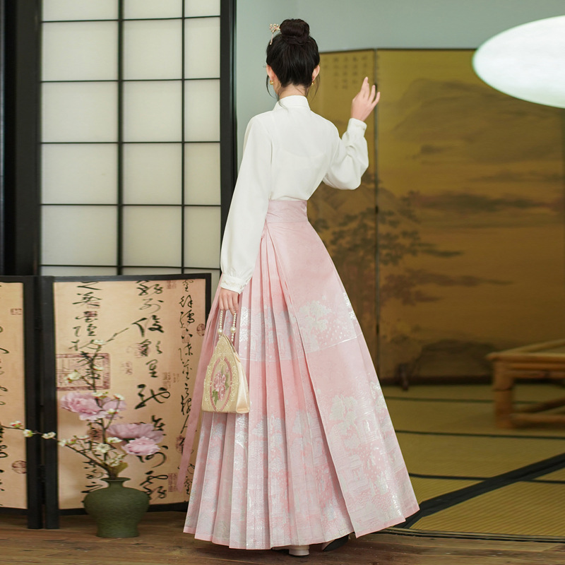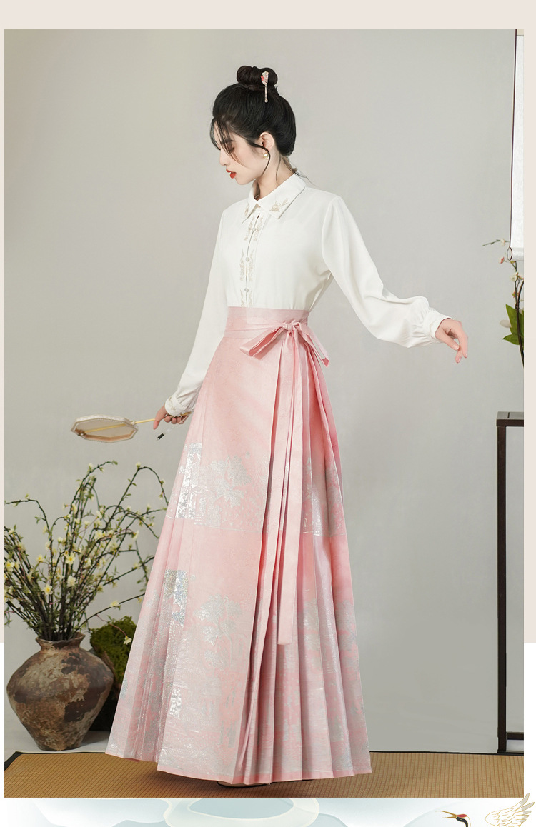 古风粉黛佳人织金马面裙中国风粉色系女装日常新中式刺绣衬衣套装