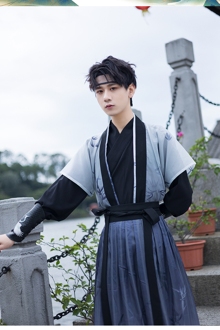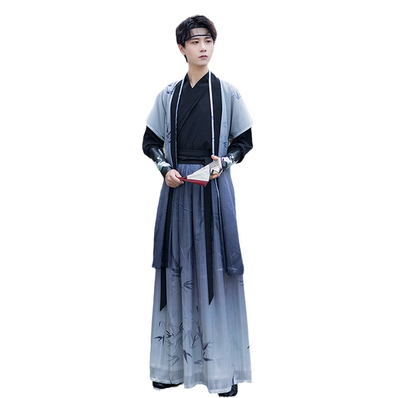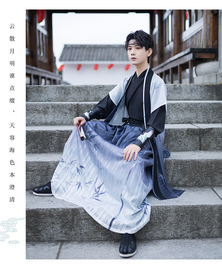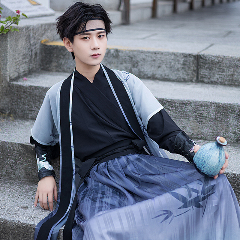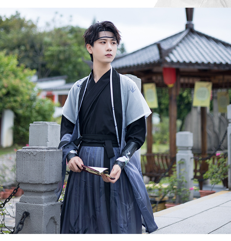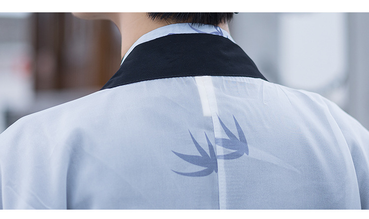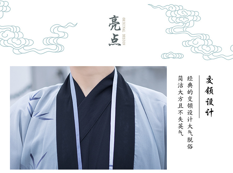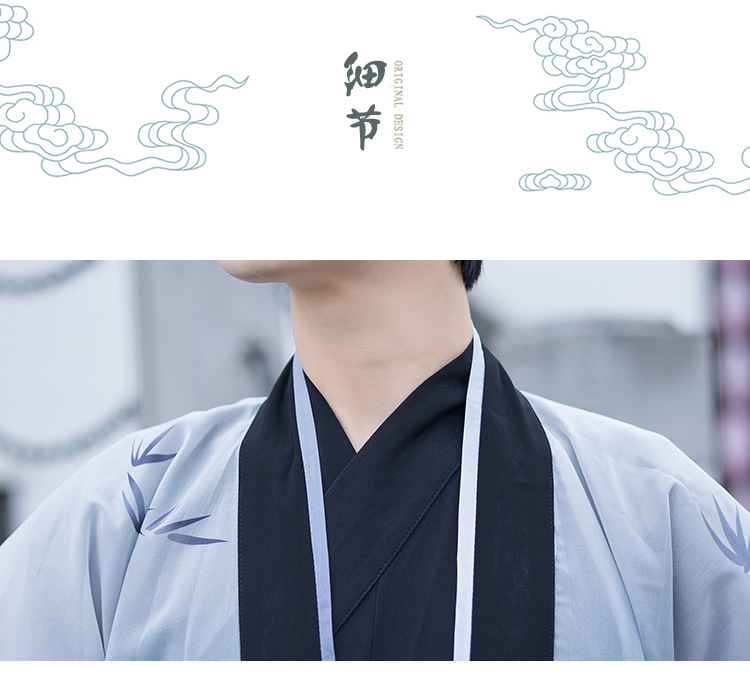 中国风大码男装浅灰长袖汉服青竹开衫三件套古装汉元素传统演出服