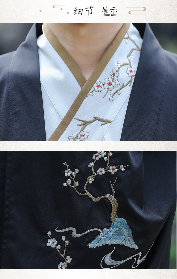 中国风男士黑色大氅外套汉服男九尾狐重工刺绣中国风广袖剑客套装