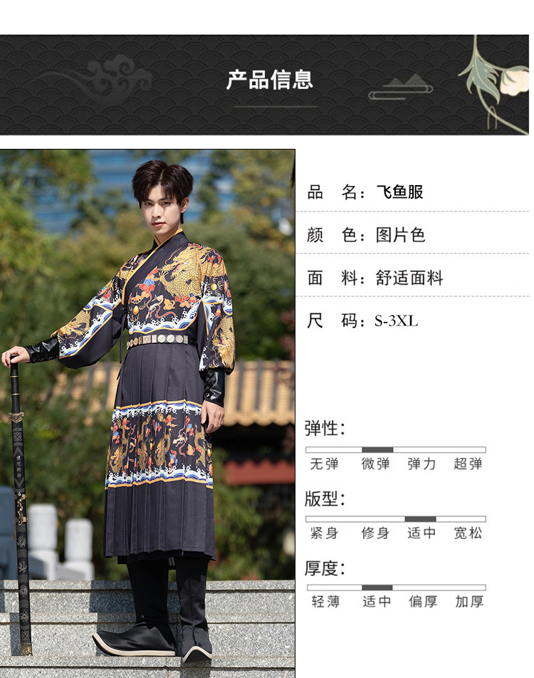 中国风明制男士长袖飞鱼服男装古风汉元素锦衣卫大内侍卫武士汉服