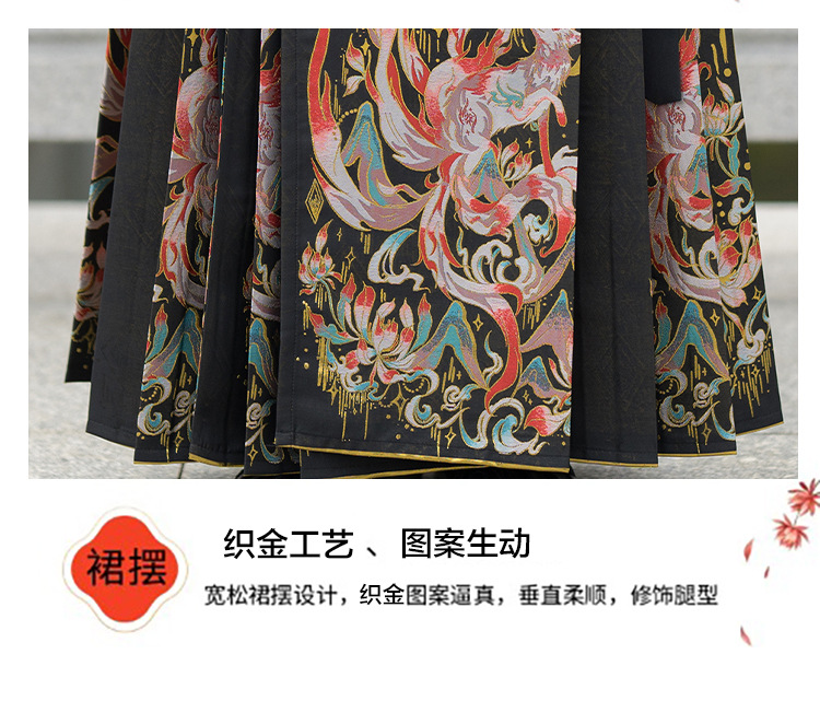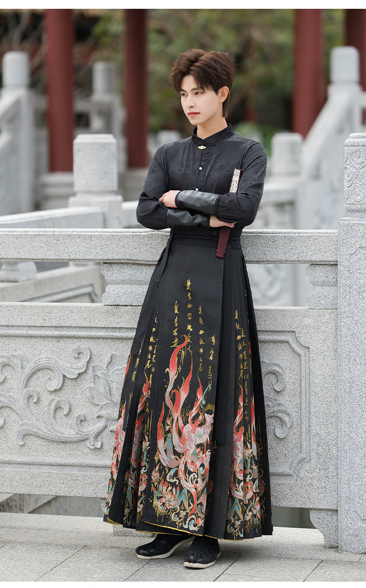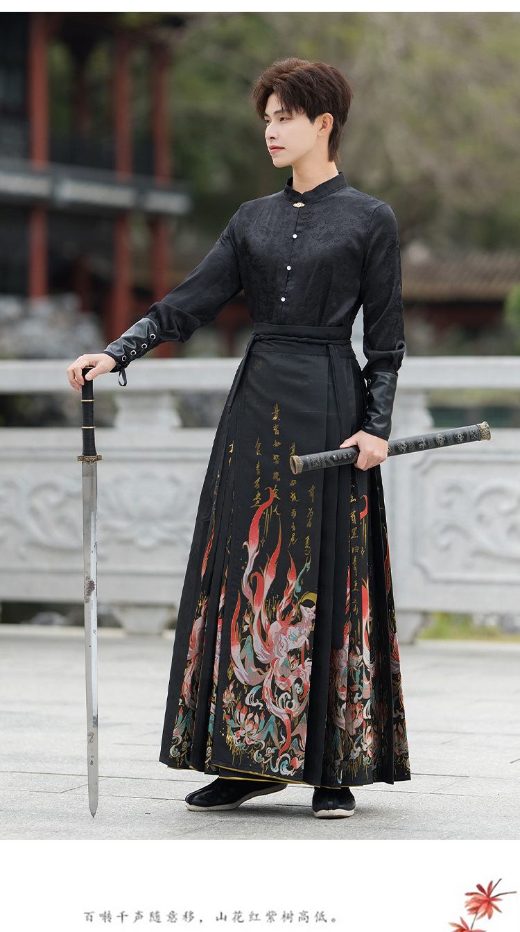 古风新中式九尾狐织金马面裙汉服男装帅气黑色中国风学生班服套装