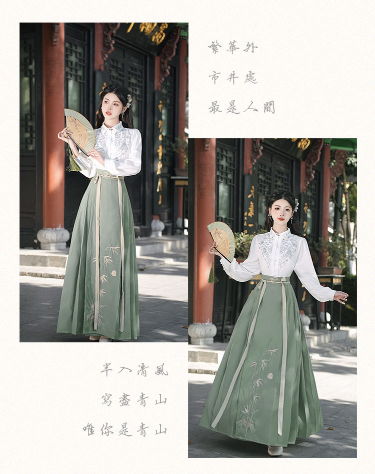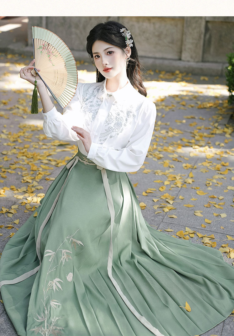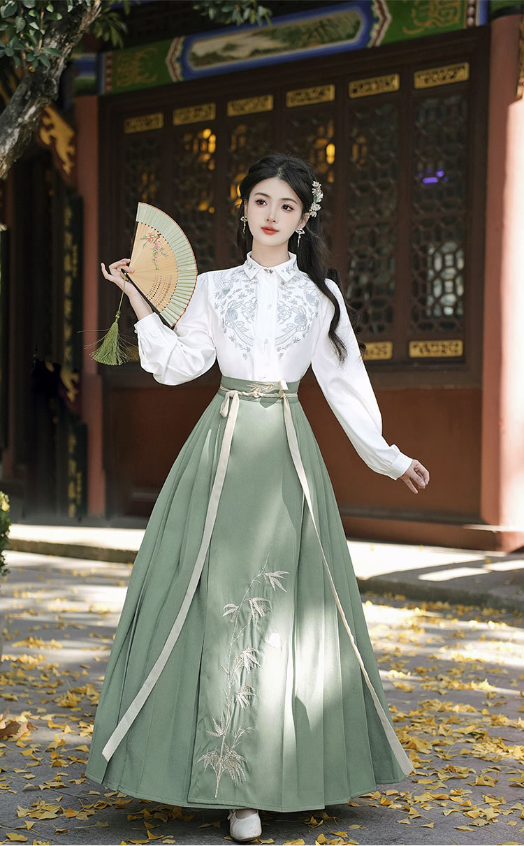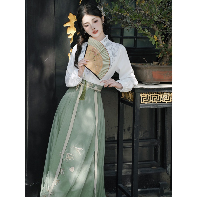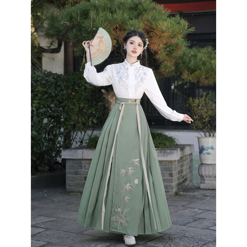 中国风明制女式烫金马面裙新中式衬衣汉服古风汉元素百褶唐装套装