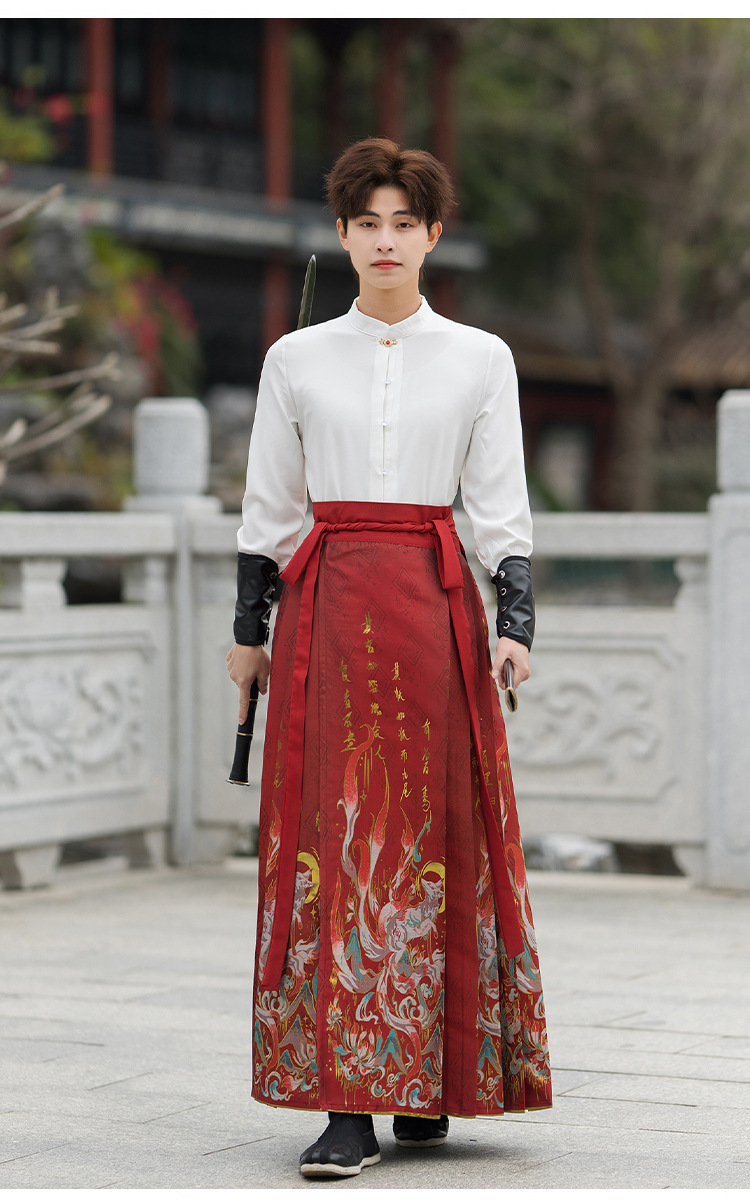 古风九尾狐织金马面裙汉服男装新中式帅气红色中国风学生班服团服