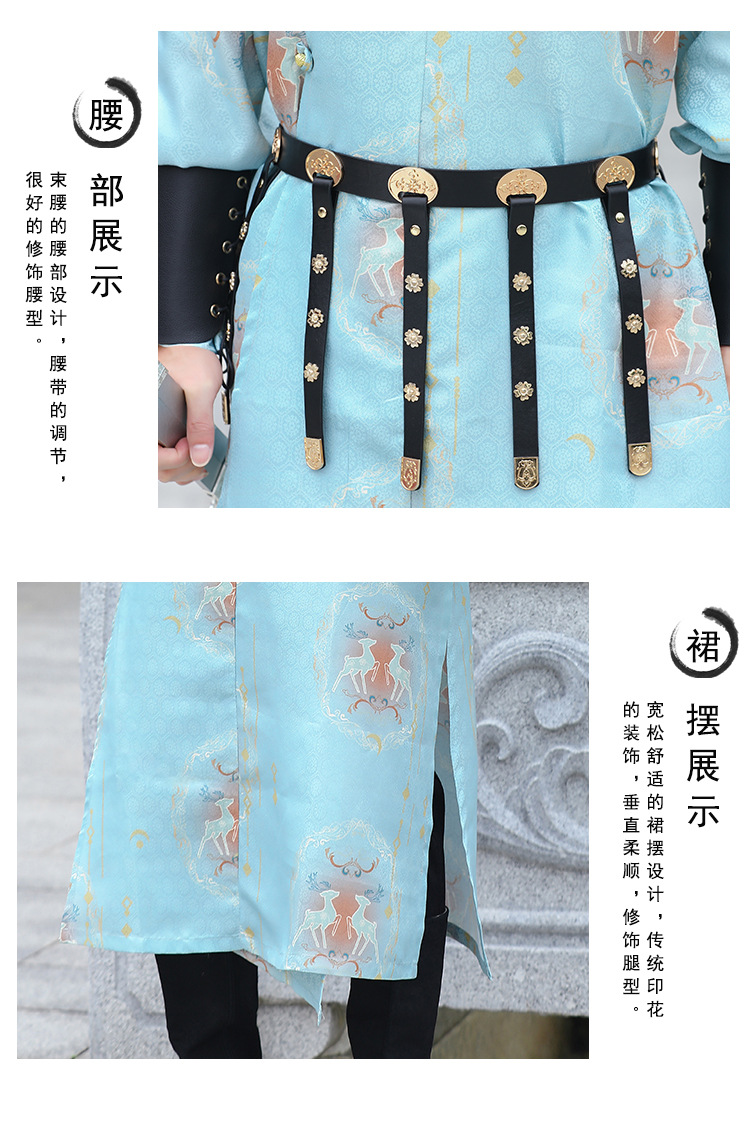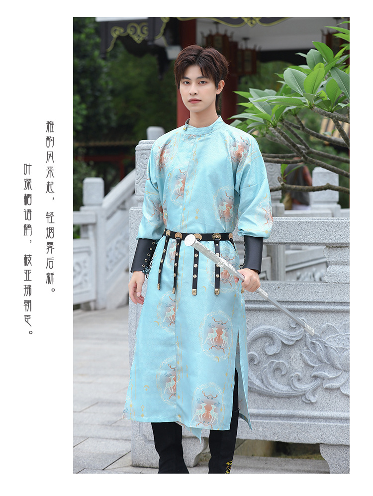 中国风夏季浅青色大码男装古风汉元素汉服男士唐朝古代剑客圆领袍