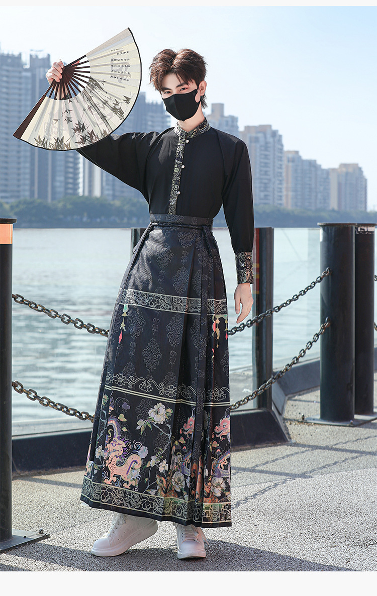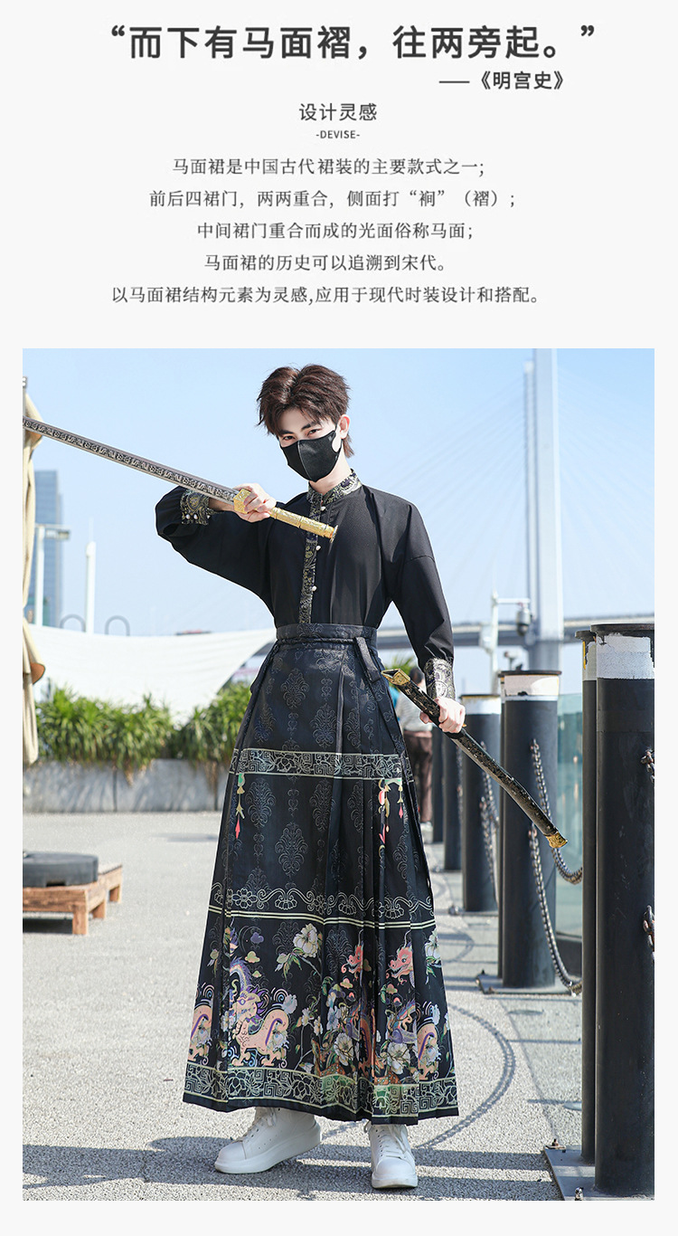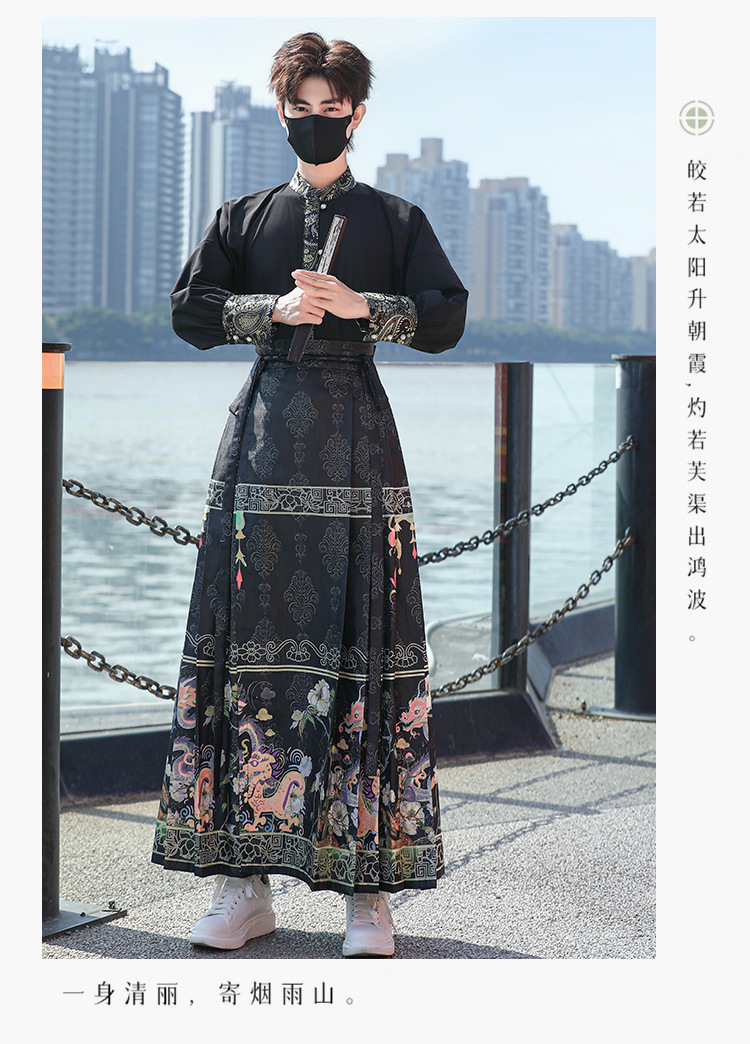 新中式男装国风汉服汉服情侣CP装男女同款提花烫金龙纹大码马面裙