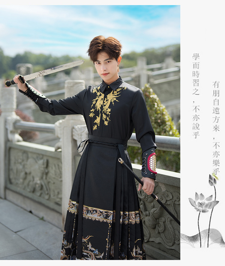 新中式男装国风织金龙凤呈祥中国风刺绣衬衫新中式女织金马面裙原