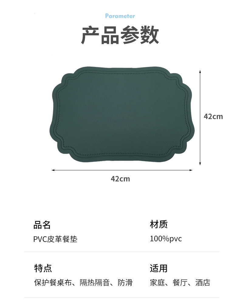 家用简约纯色PVC方形皮革餐垫酒店餐厅桌垫防油隔热垫批发