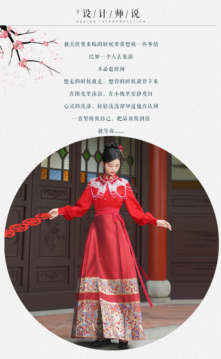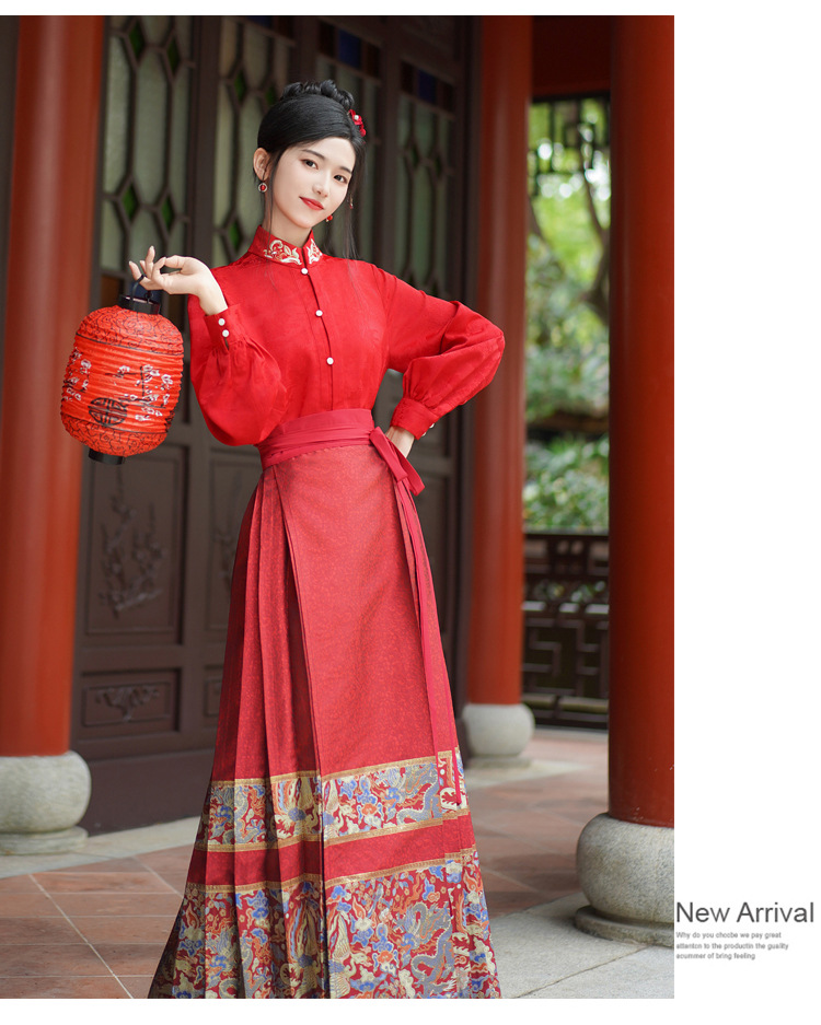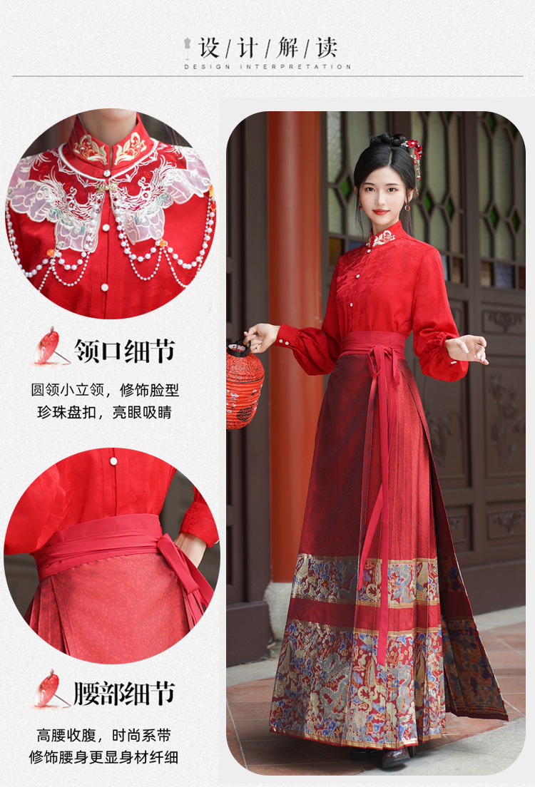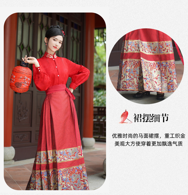中国风明制女士红色凤凰织金马面裙新中式汉服立领长袖衬衫古风女