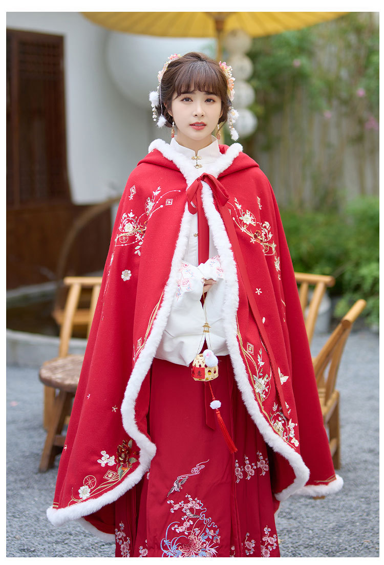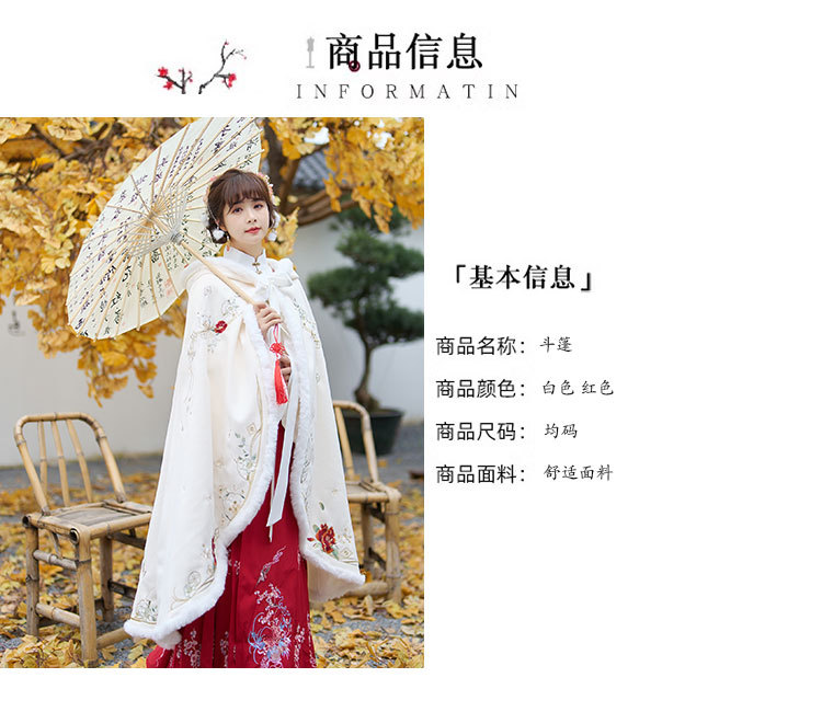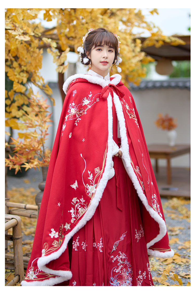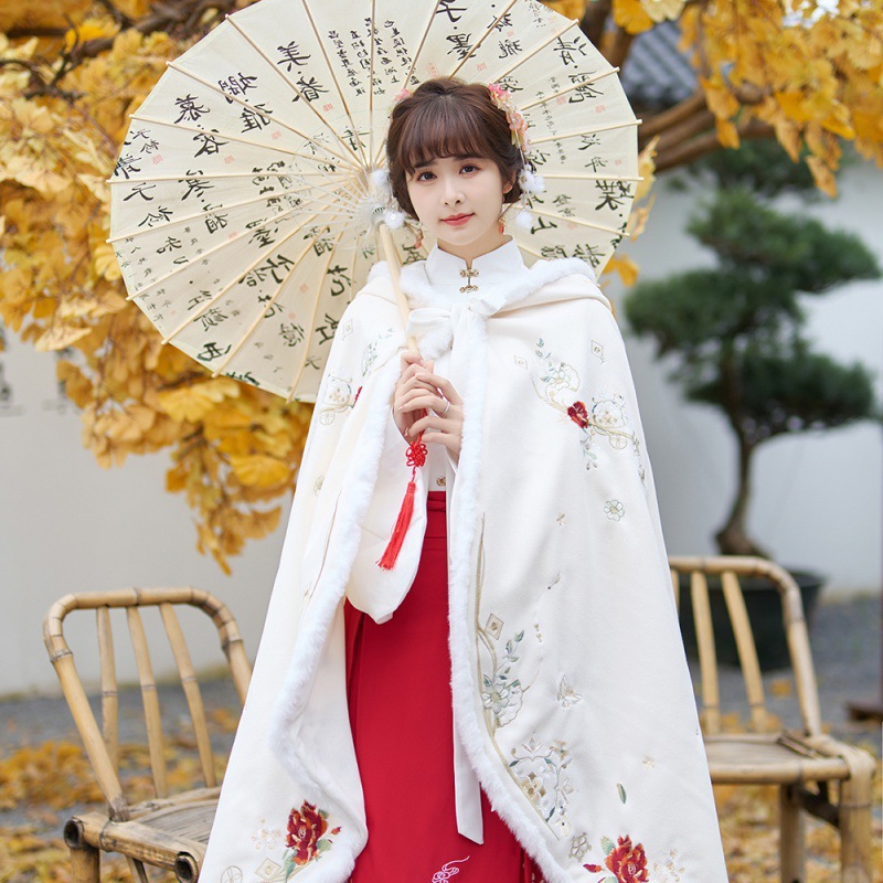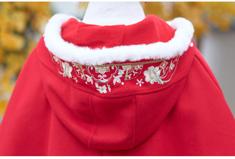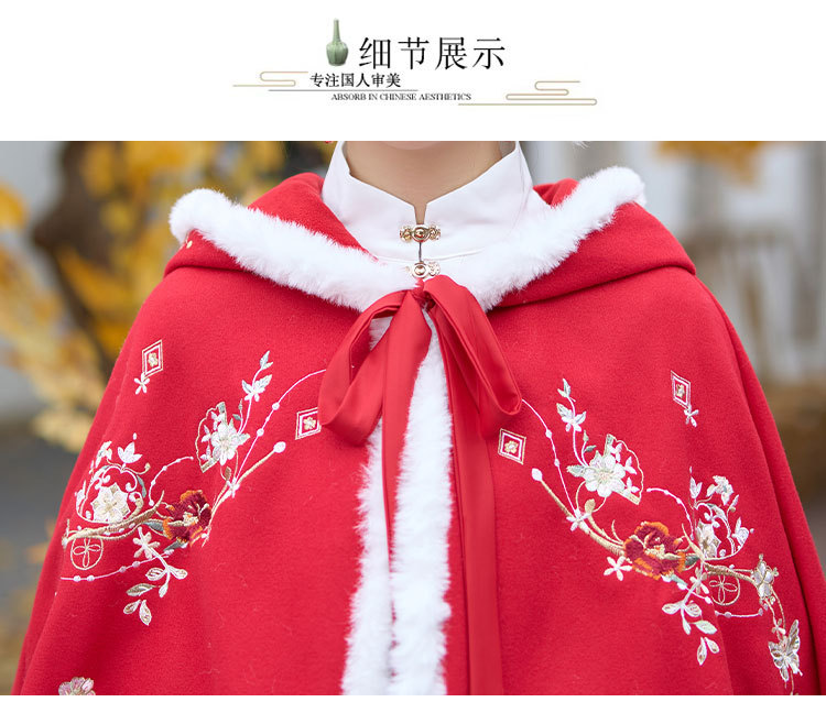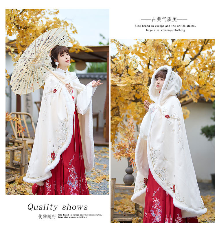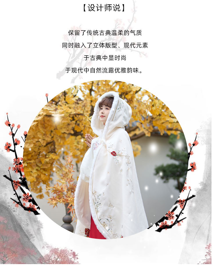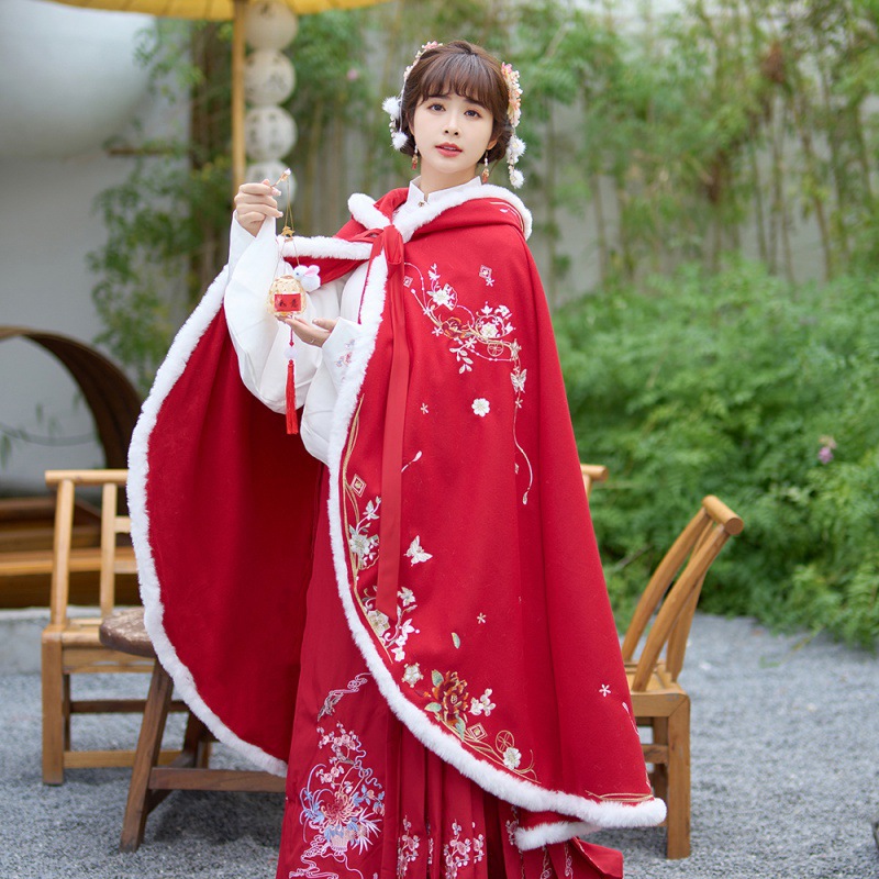 中国风女装汉服重工绣花古风斗篷长款加厚加绒呢子披风女式外套冬