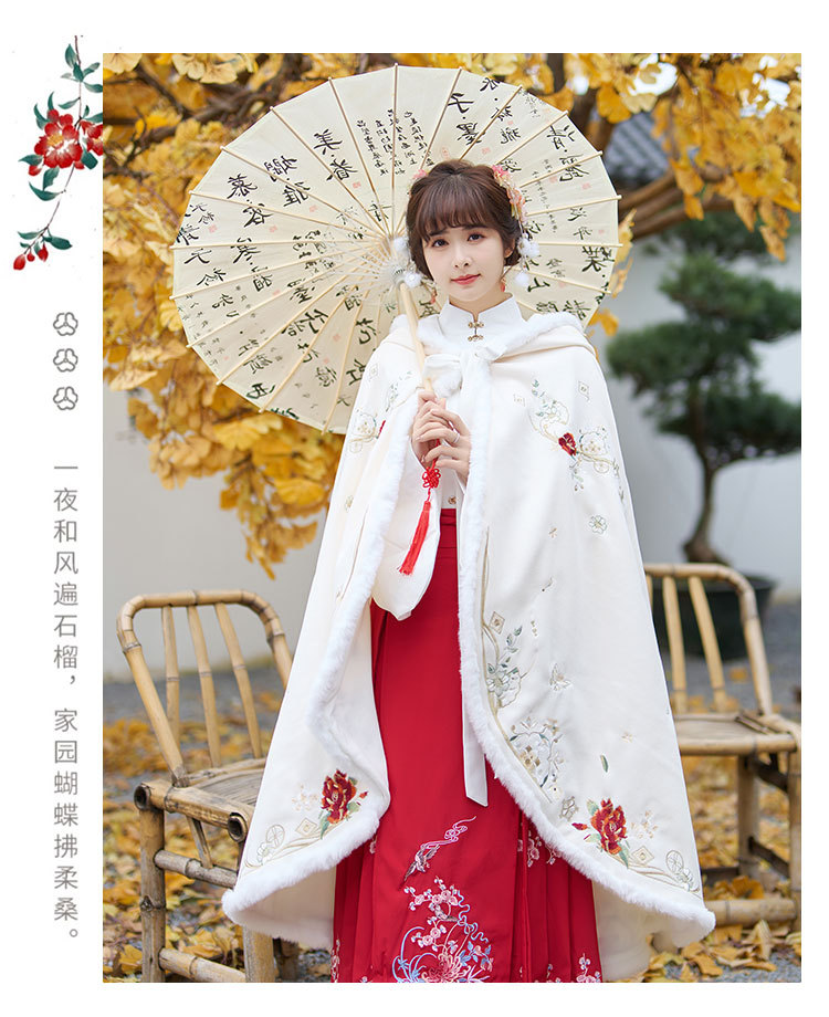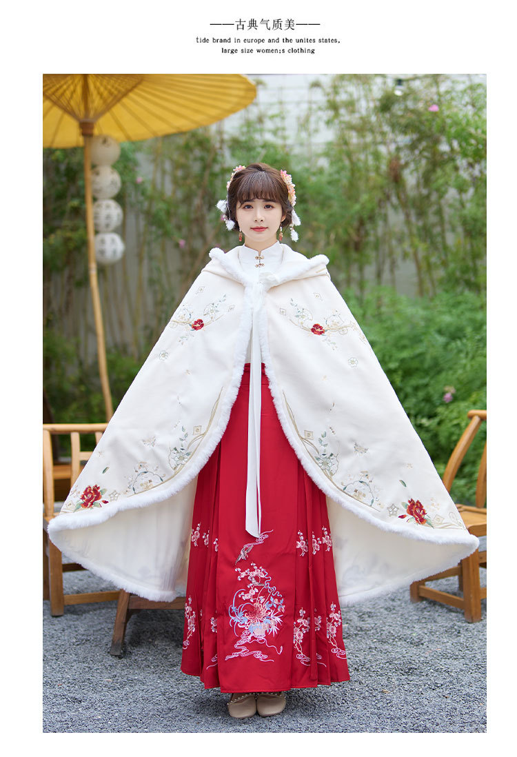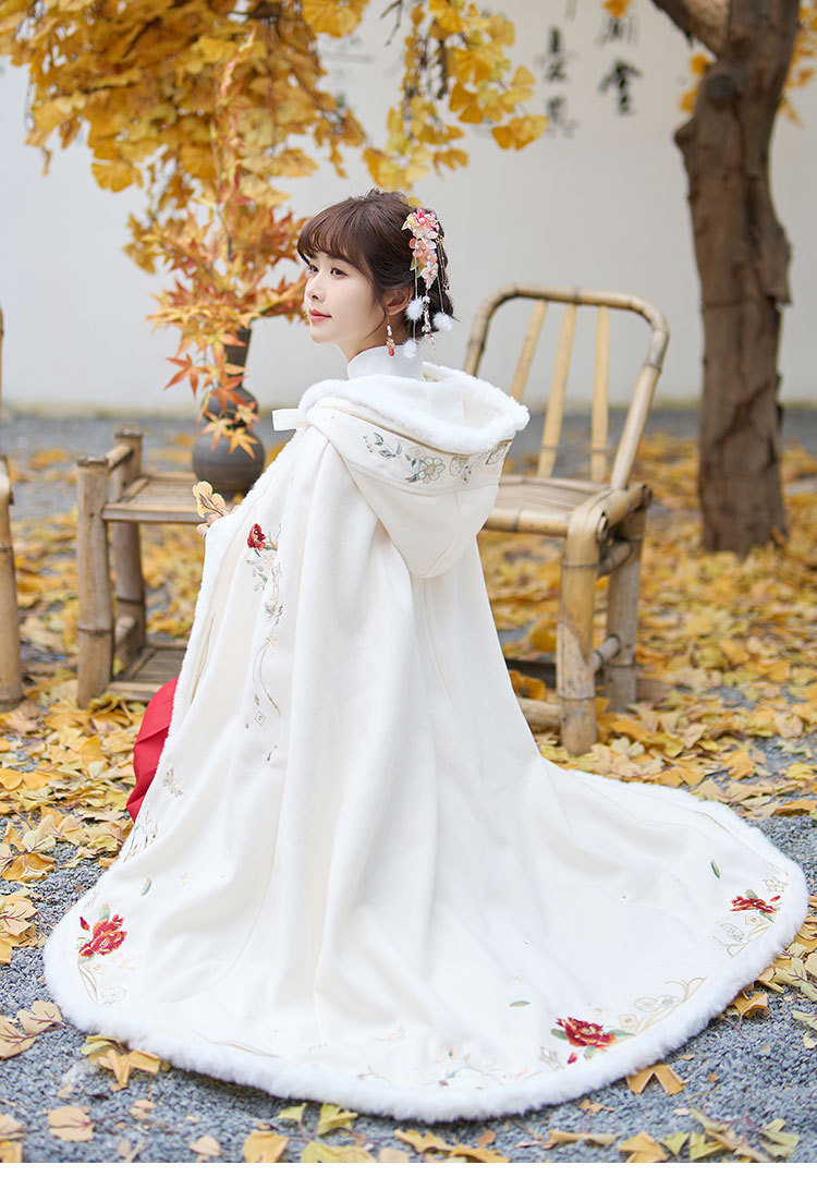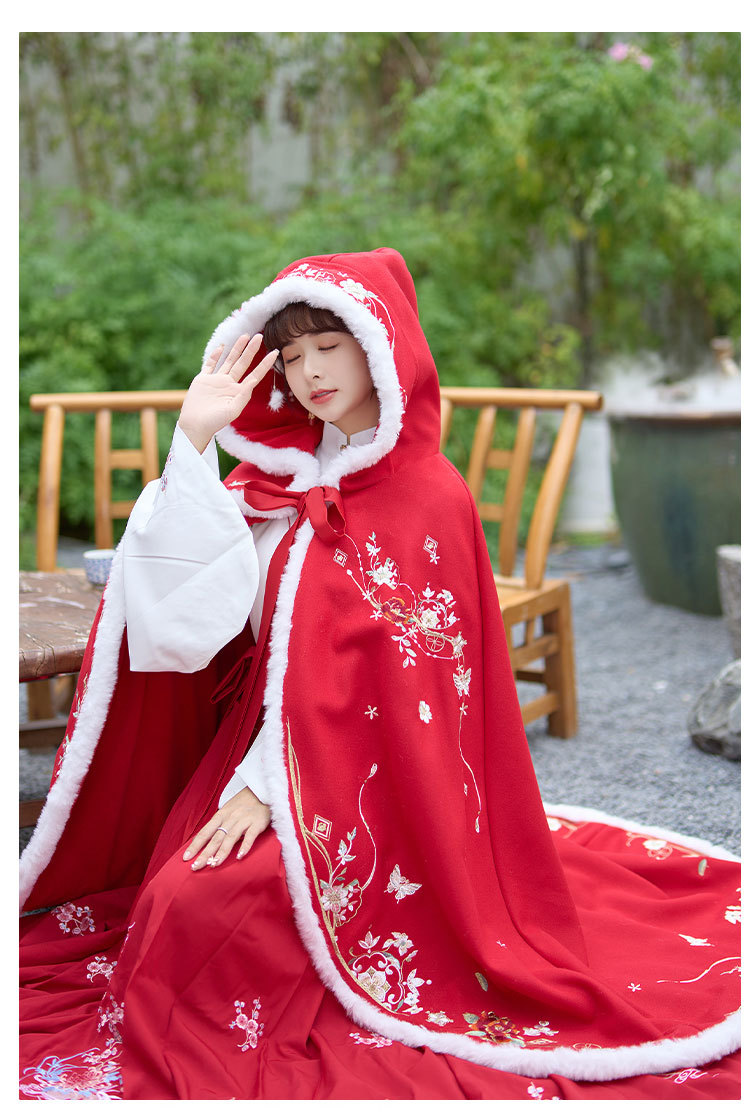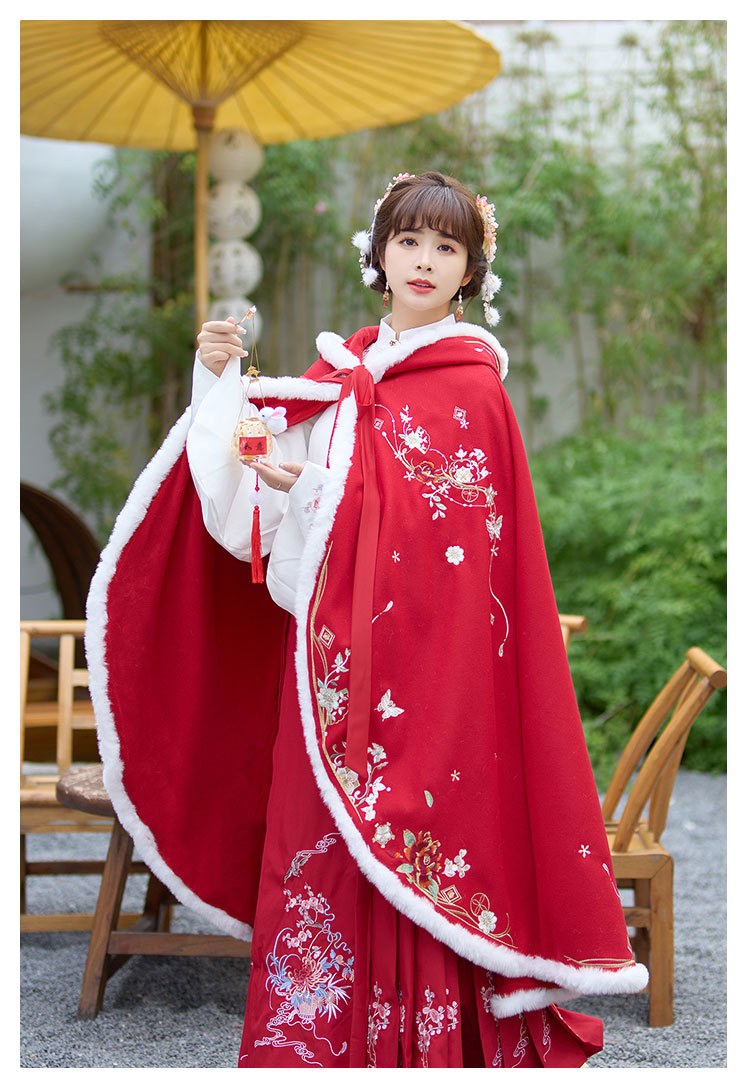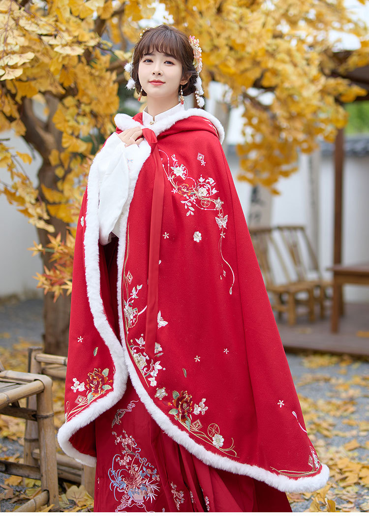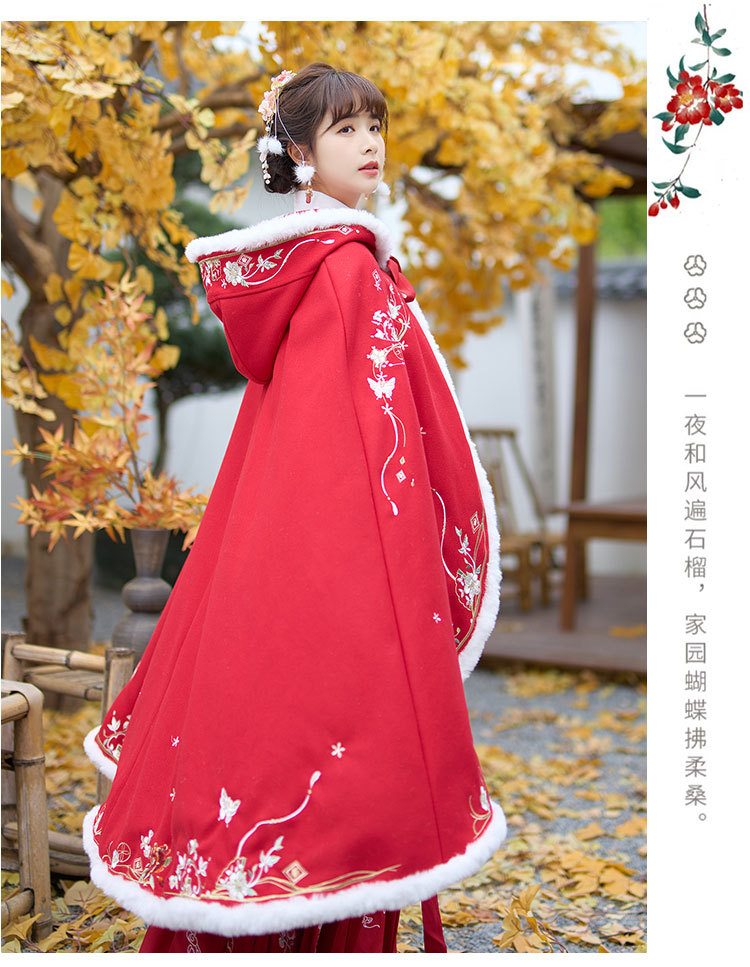 中国风女装汉服重工绣花古风斗篷长款加厚加绒呢子披风女式外套冬
