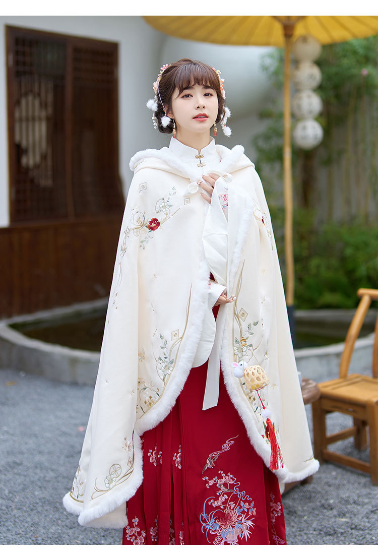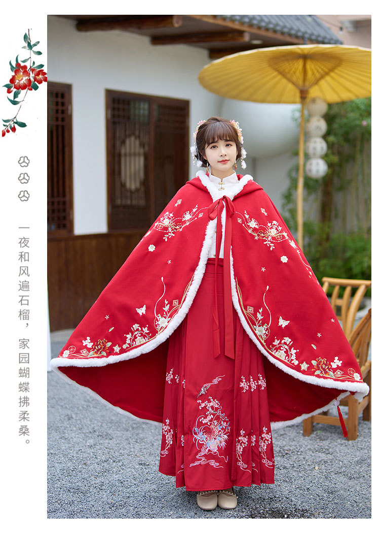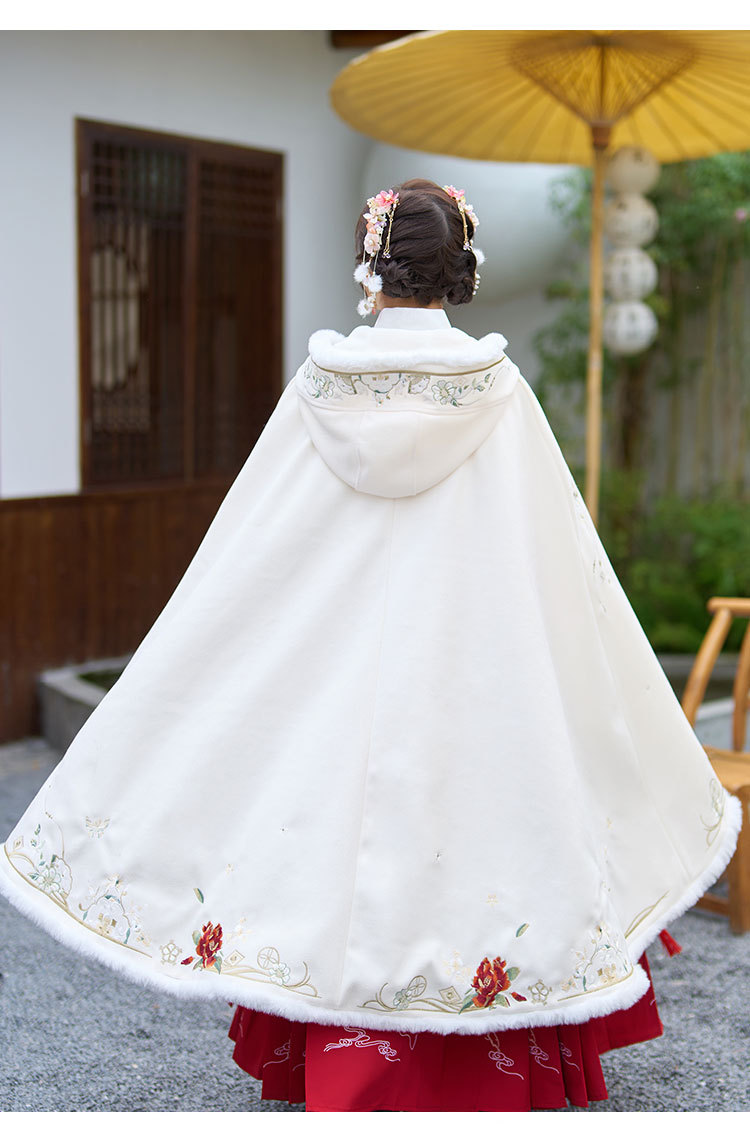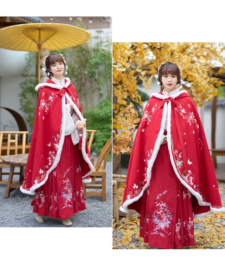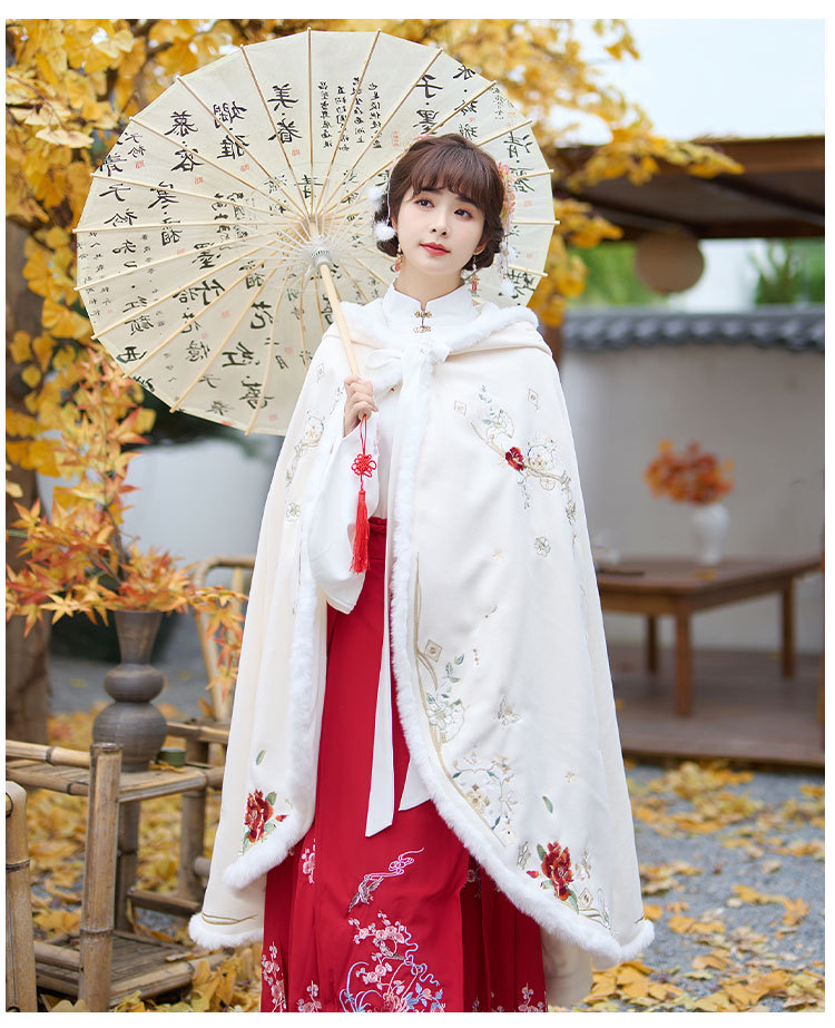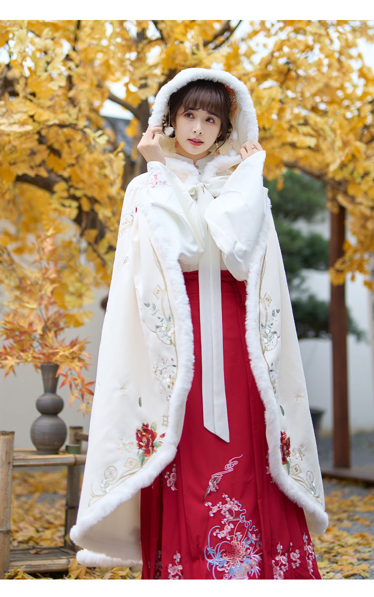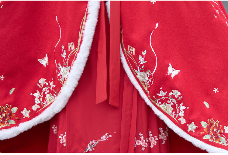 中国风女装汉服重工绣花古风斗篷长款加厚加绒呢子披风女式外套冬