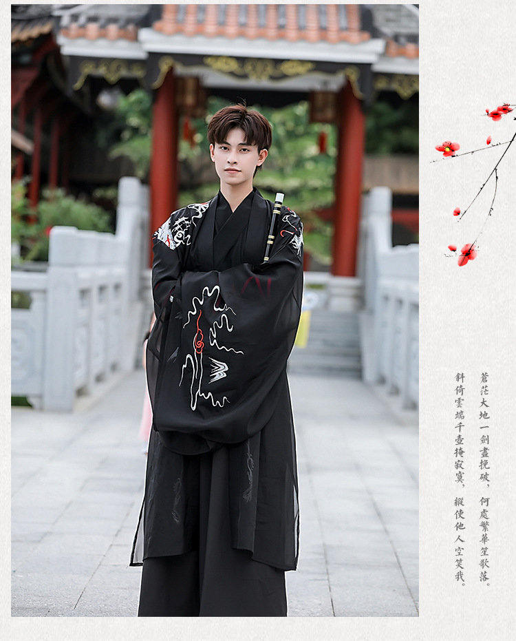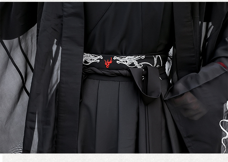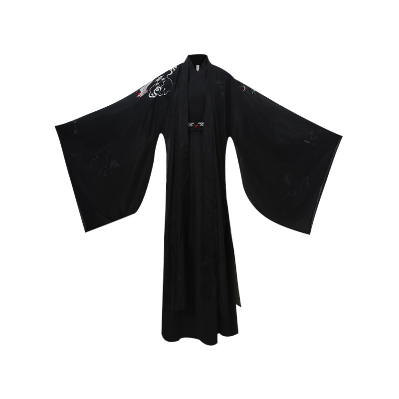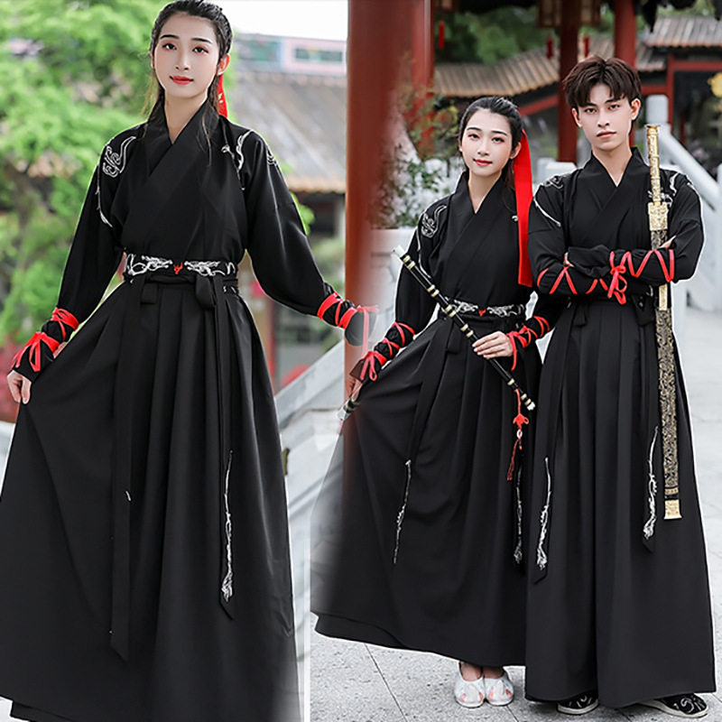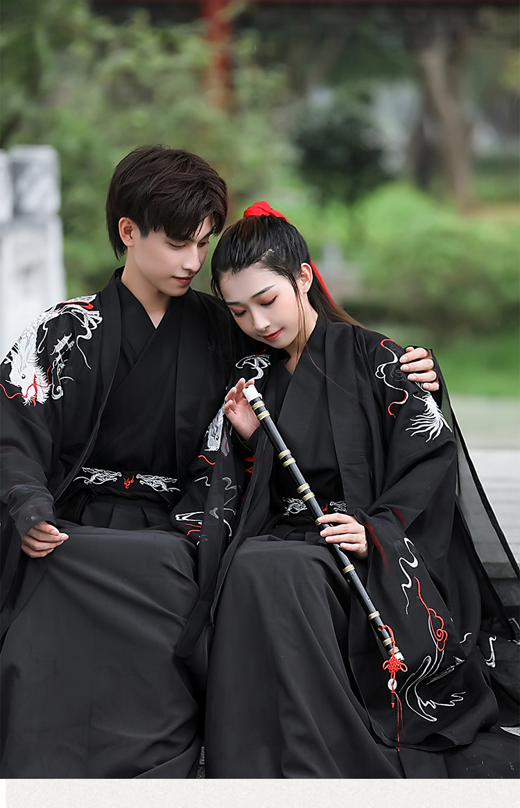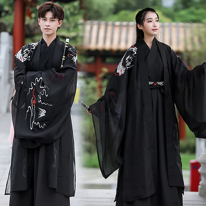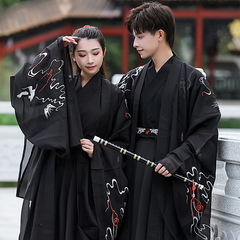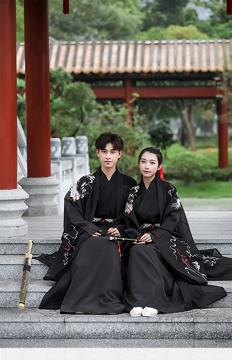 中国风传统绣花日常改良汉服男女情侣装古风灵鹤刺绣道袍黑色套装