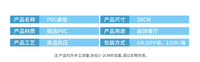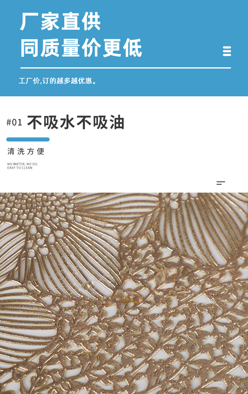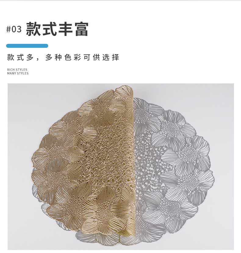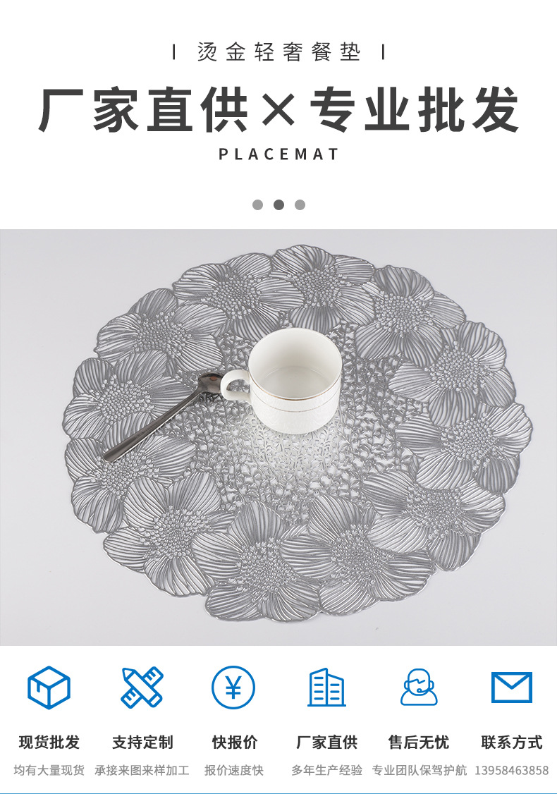 跨境花边PVC餐垫北欧风烫金隔热垫防水防油西餐厅酒店装饰餐桌垫