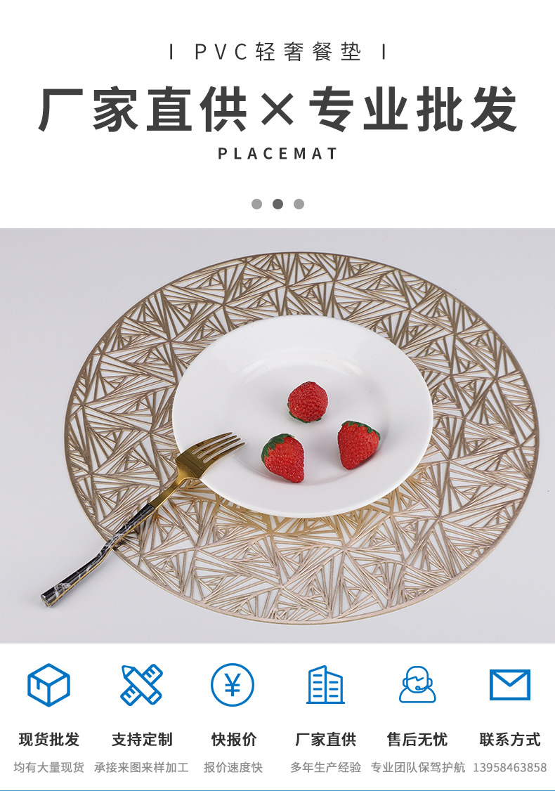 跨境镂空隔热垫圆形不规则装饰垫 西餐垫ins酒店烫金餐垫欧式