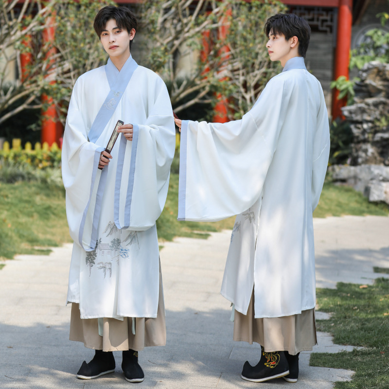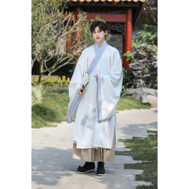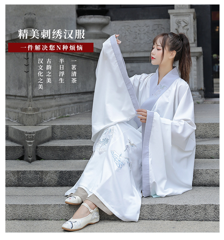 古风白色仙气长袍大袖汉服长衫居士服男女同款春夏中国风禅意班服