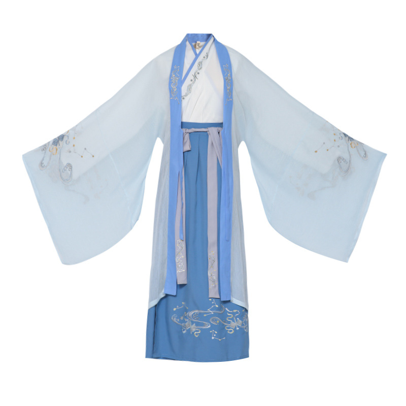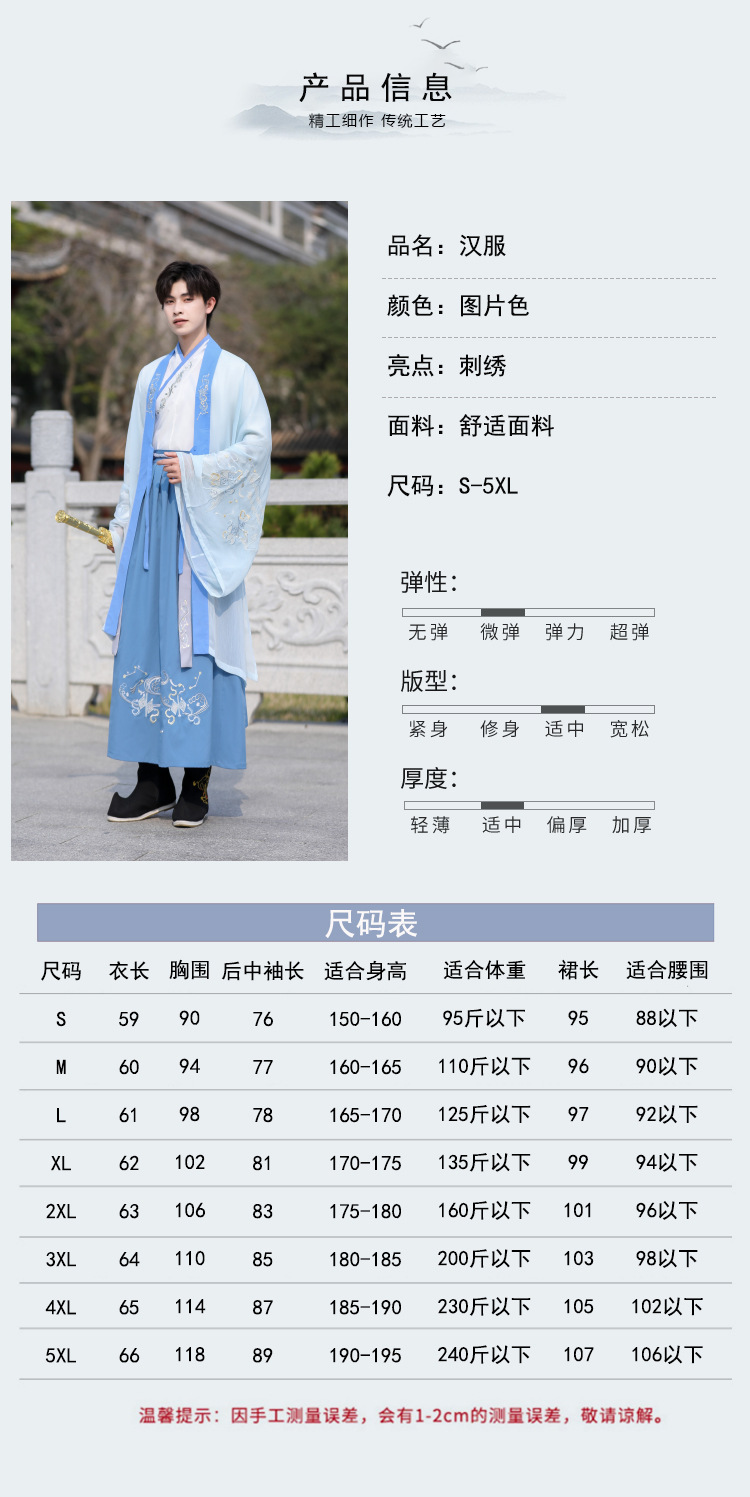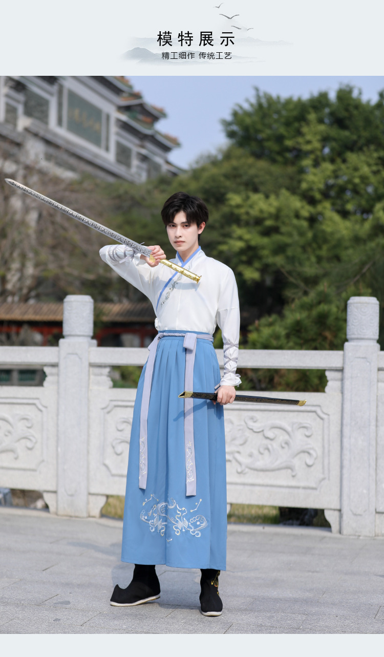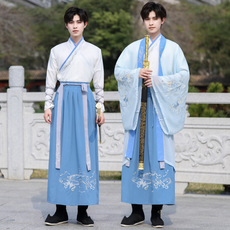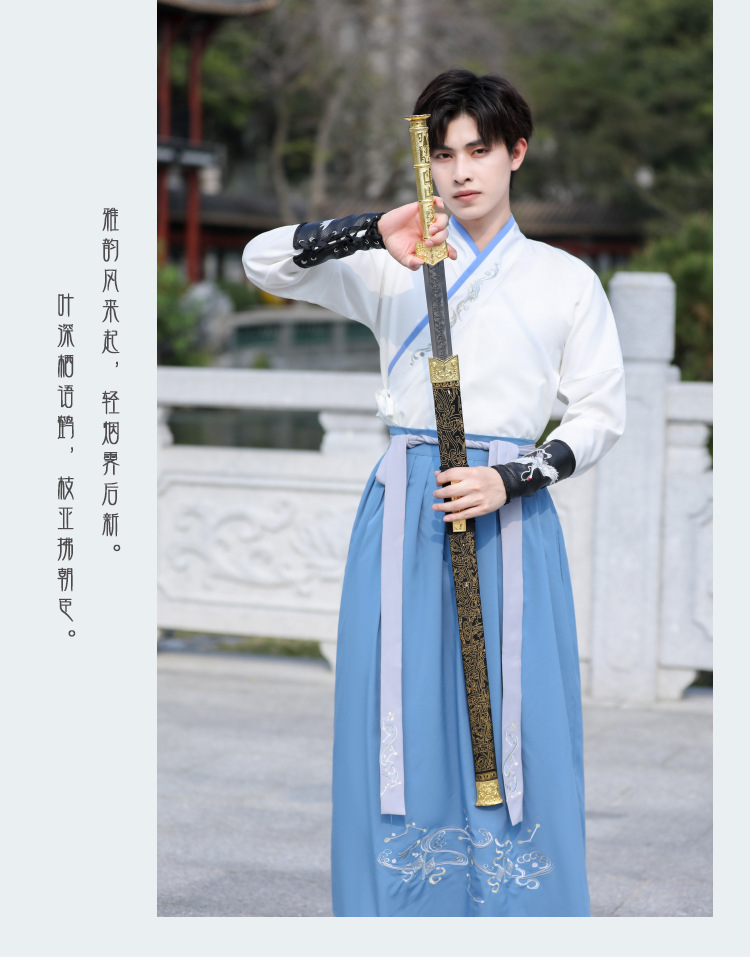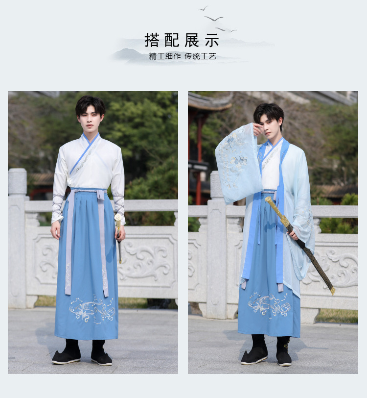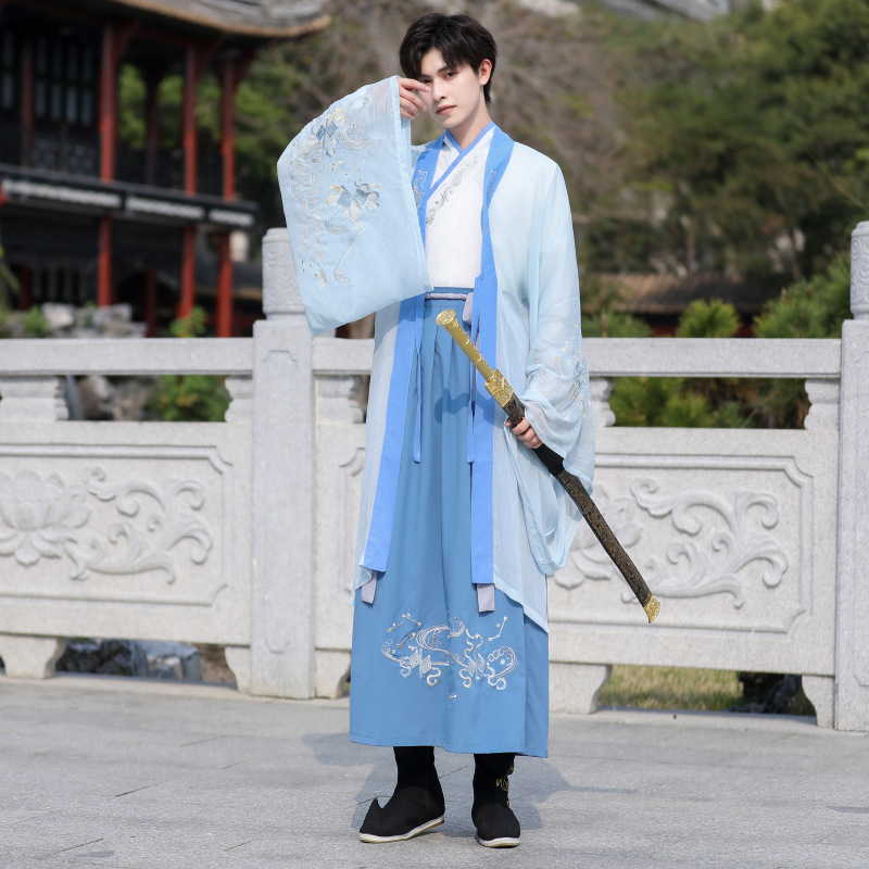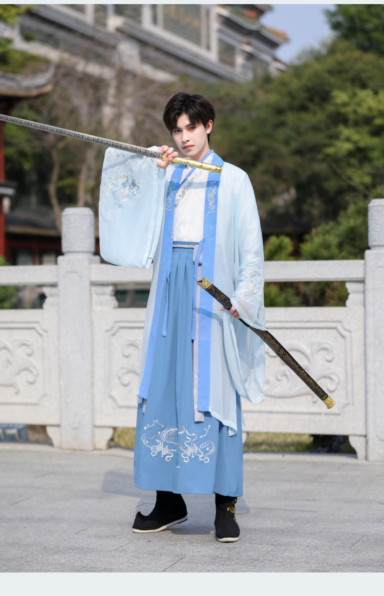 中国风大码男装浅蓝武侠古风汉服大袖衫套装男学生毕业古装演出服
