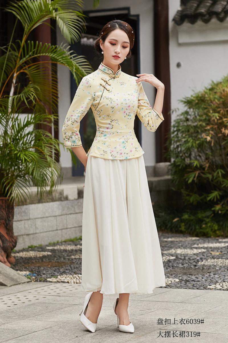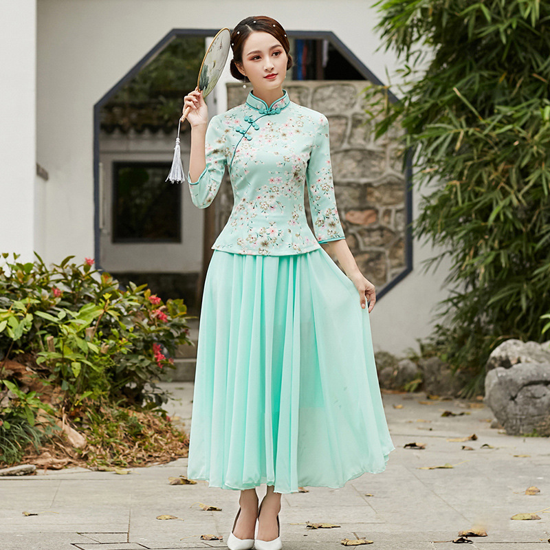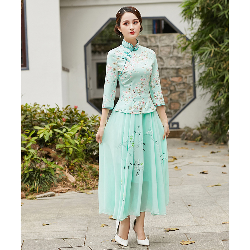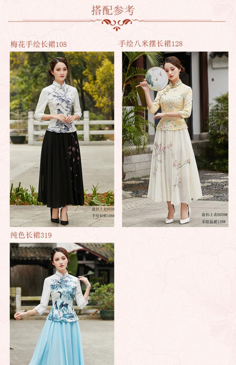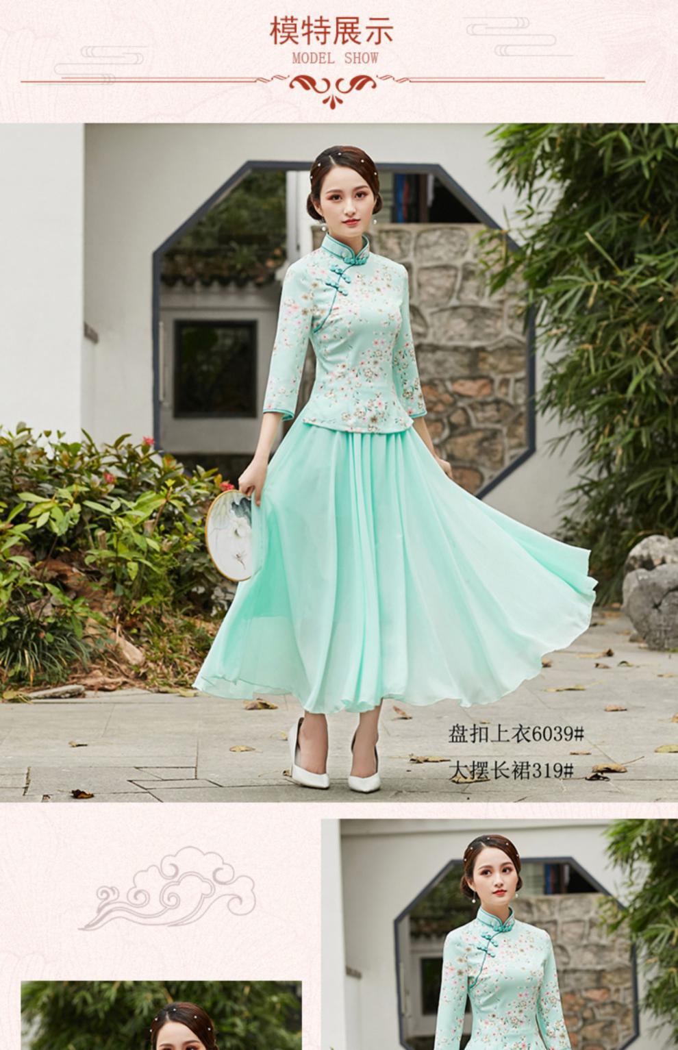 改良日常中式女装立领盘扣旗袍上衣优雅长裙汉元素国风大码套装夏
