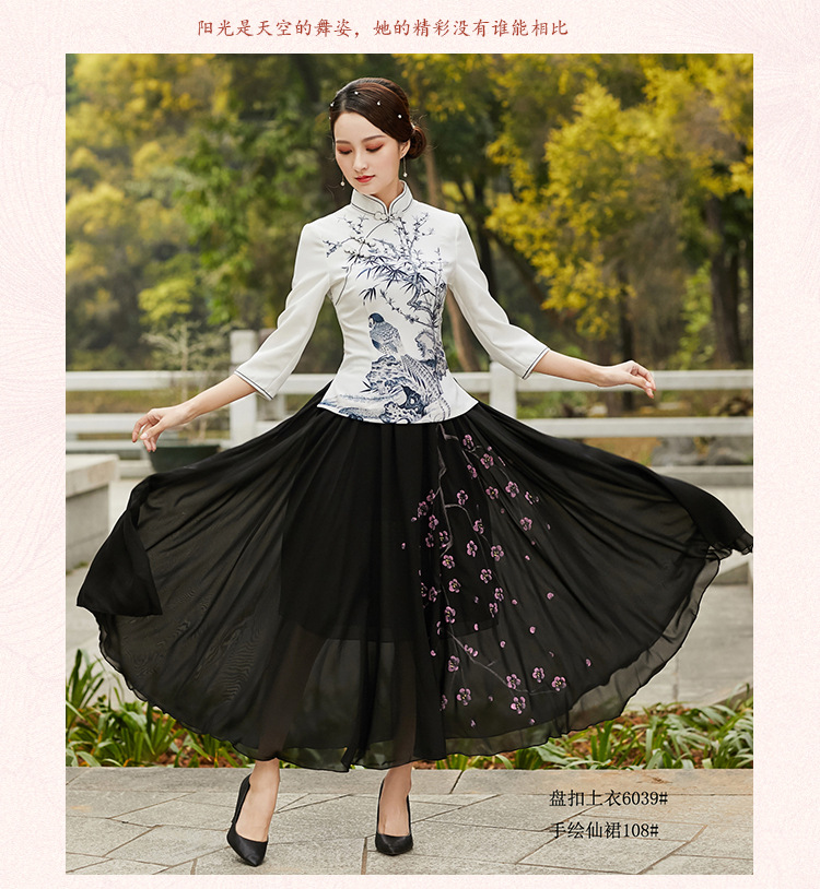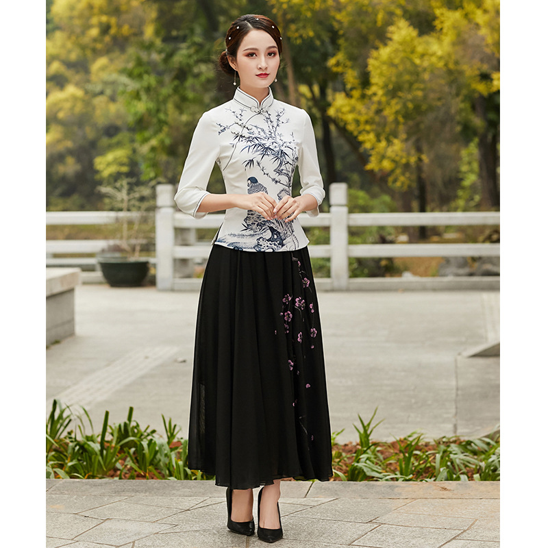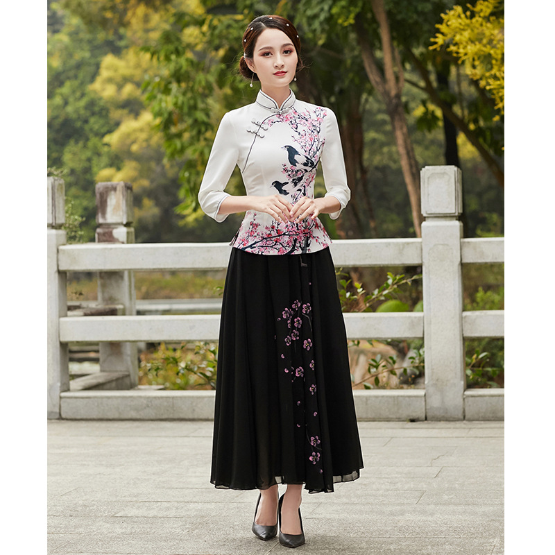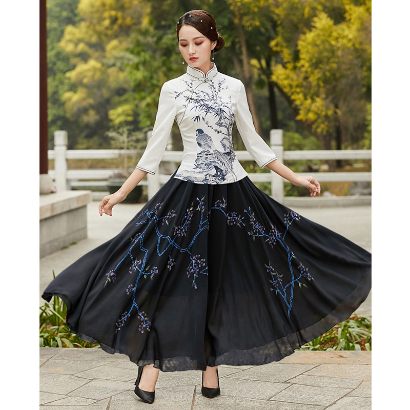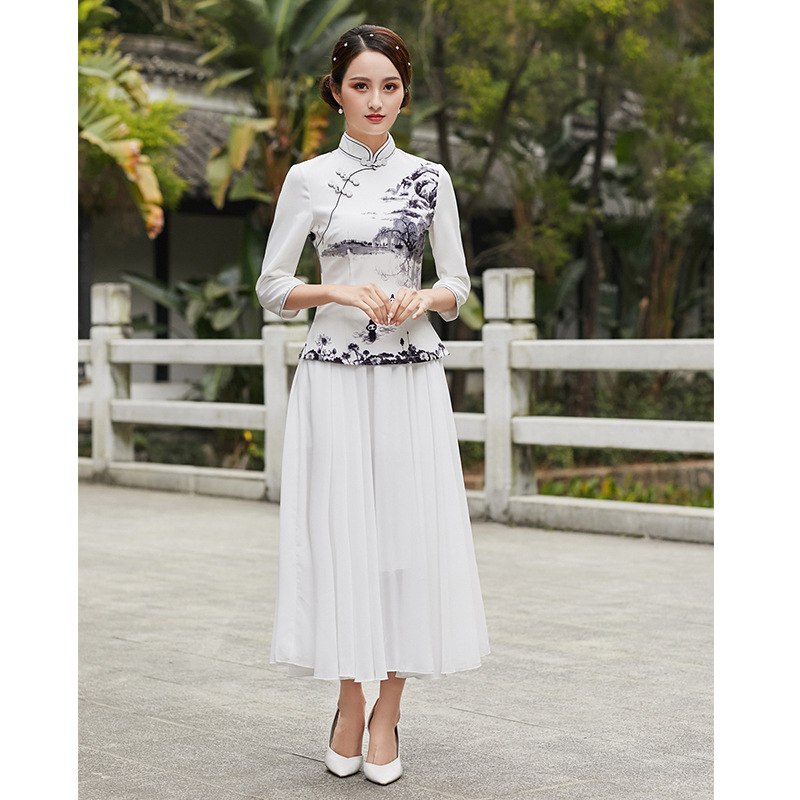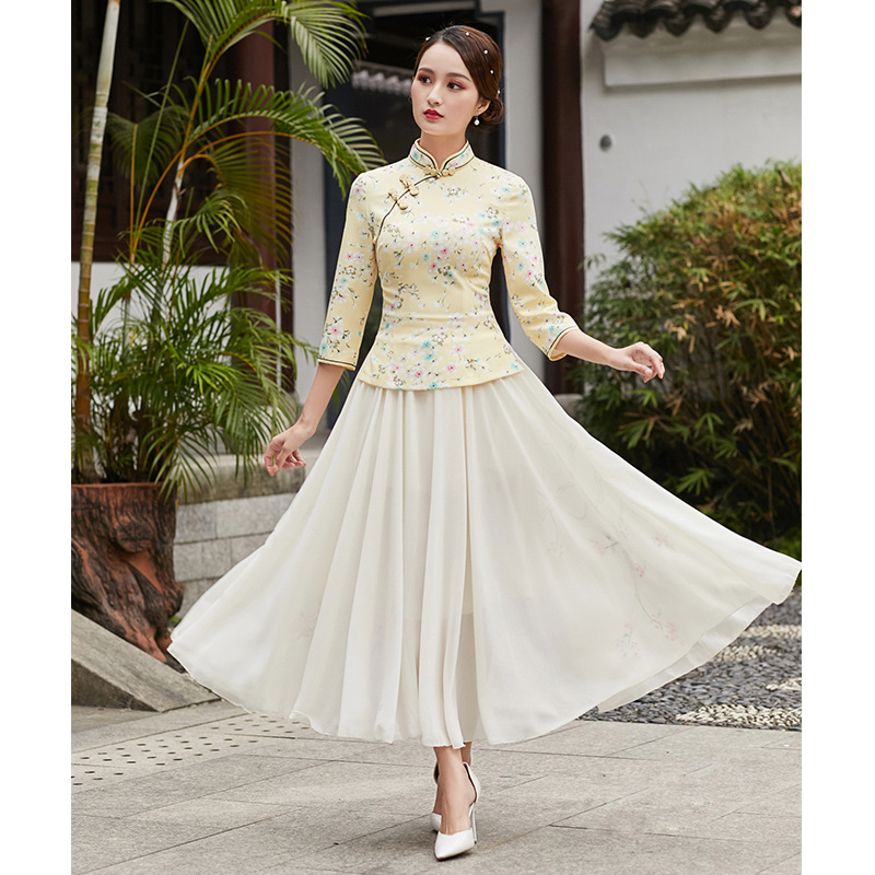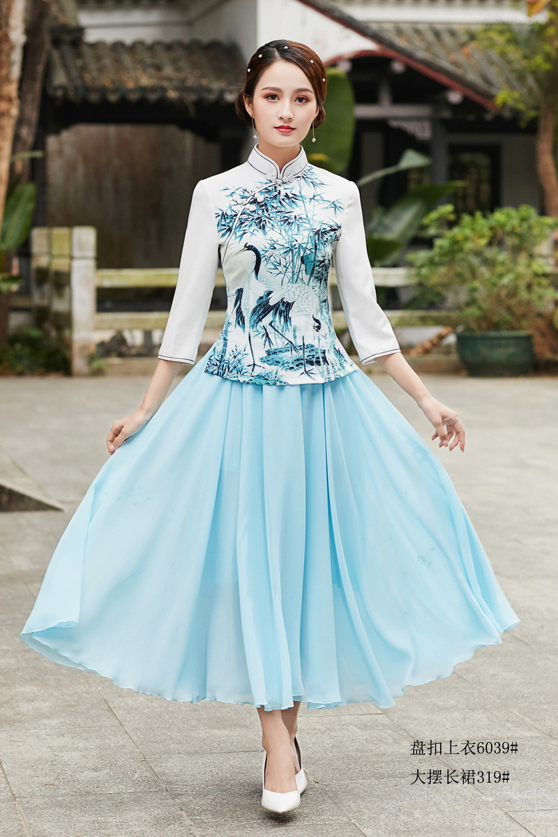 改良日常中式女装立领盘扣旗袍上衣优雅长裙汉元素国风大码套装夏