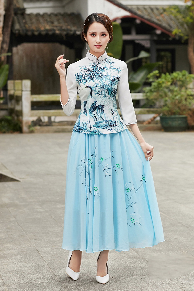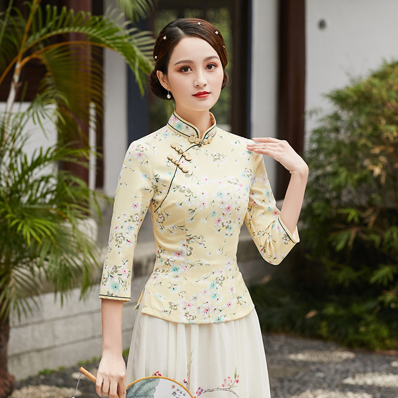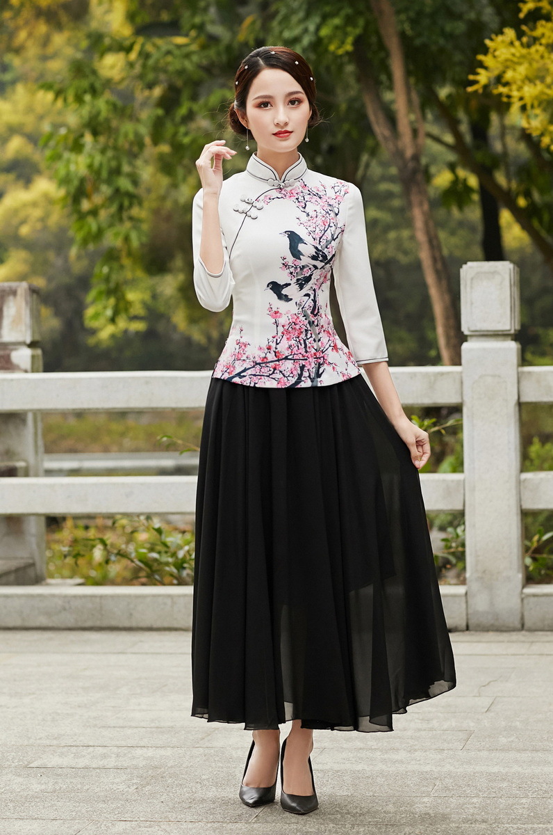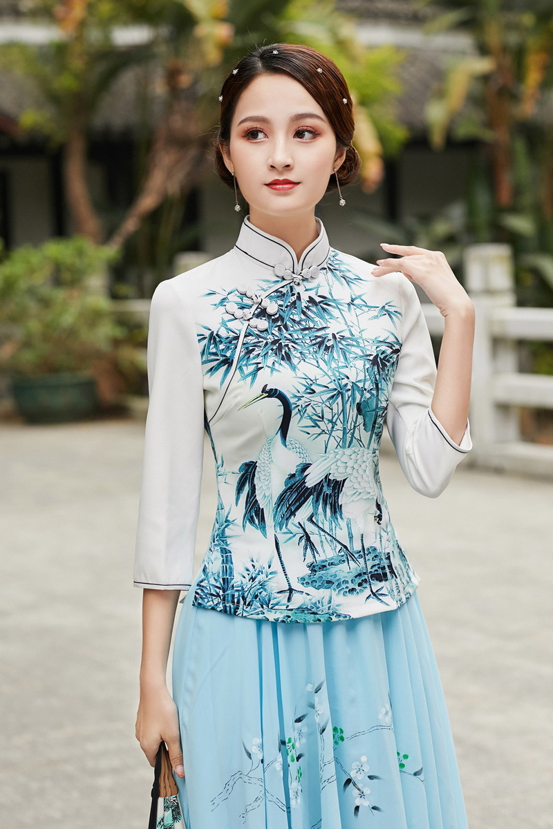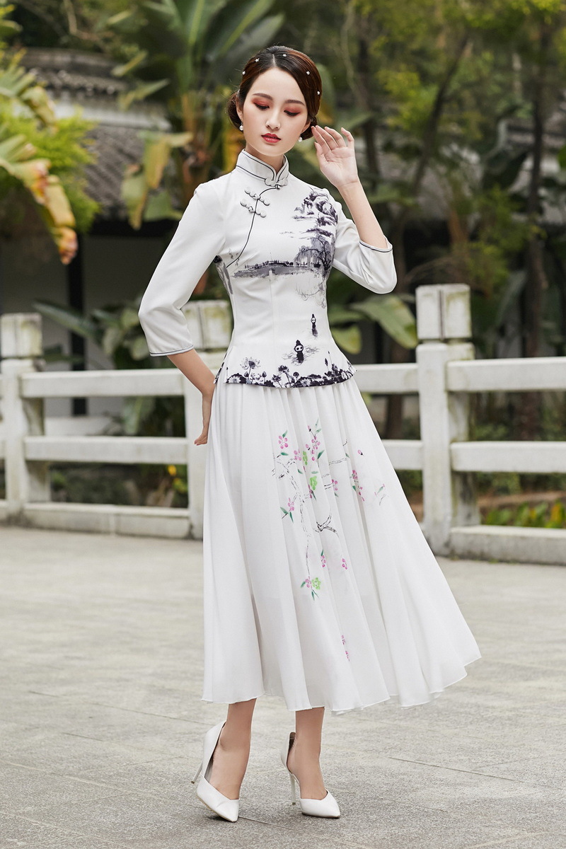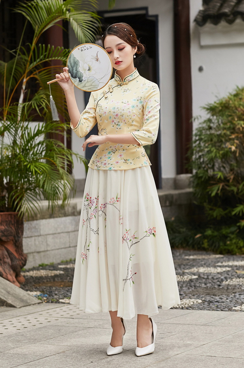 改良日常中式女装立领盘扣旗袍上衣优雅长裙汉元素国风大码套装夏