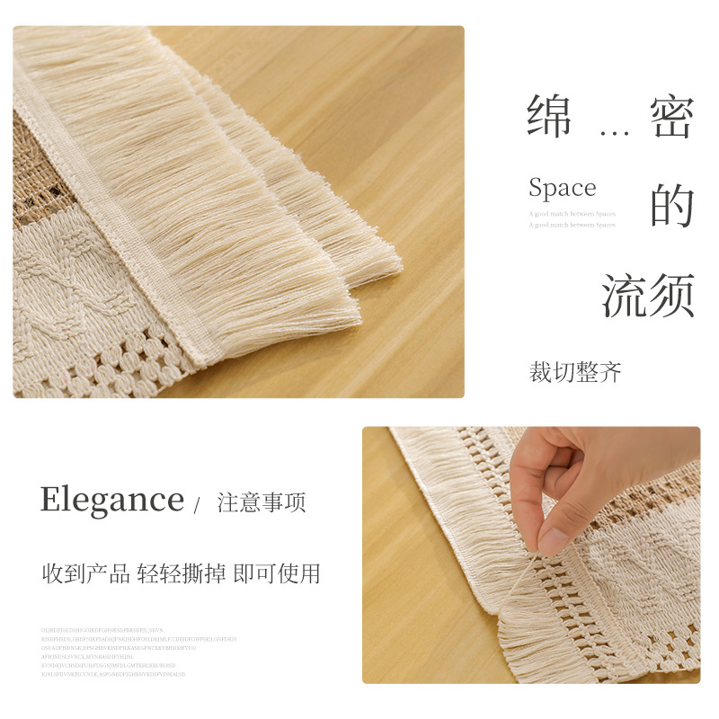 北欧风复古亚麻桌旗宫廷钩花棉麻流苏花边餐垫餐桌垫边柜桌巾批发