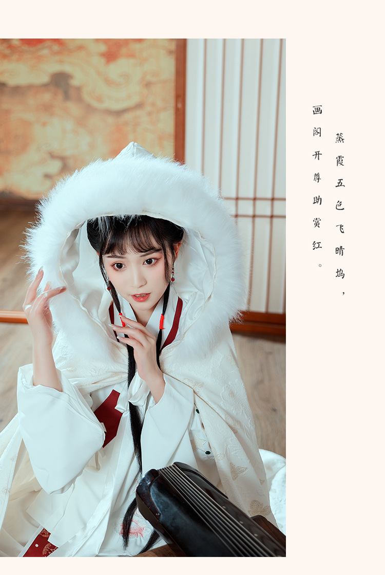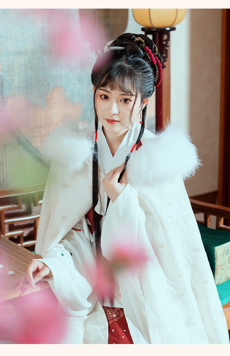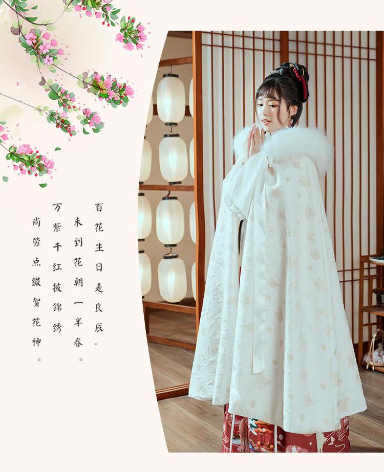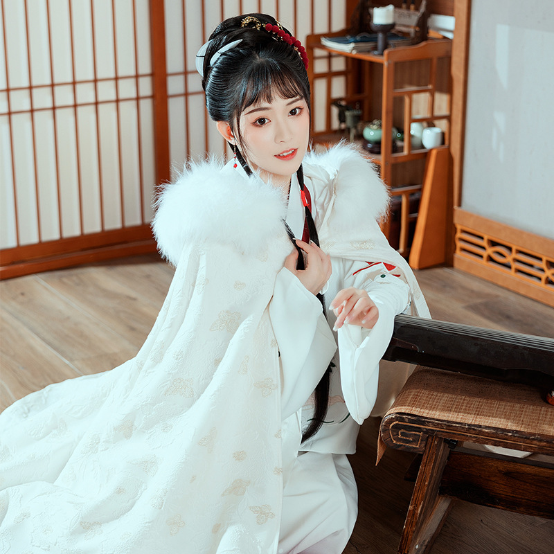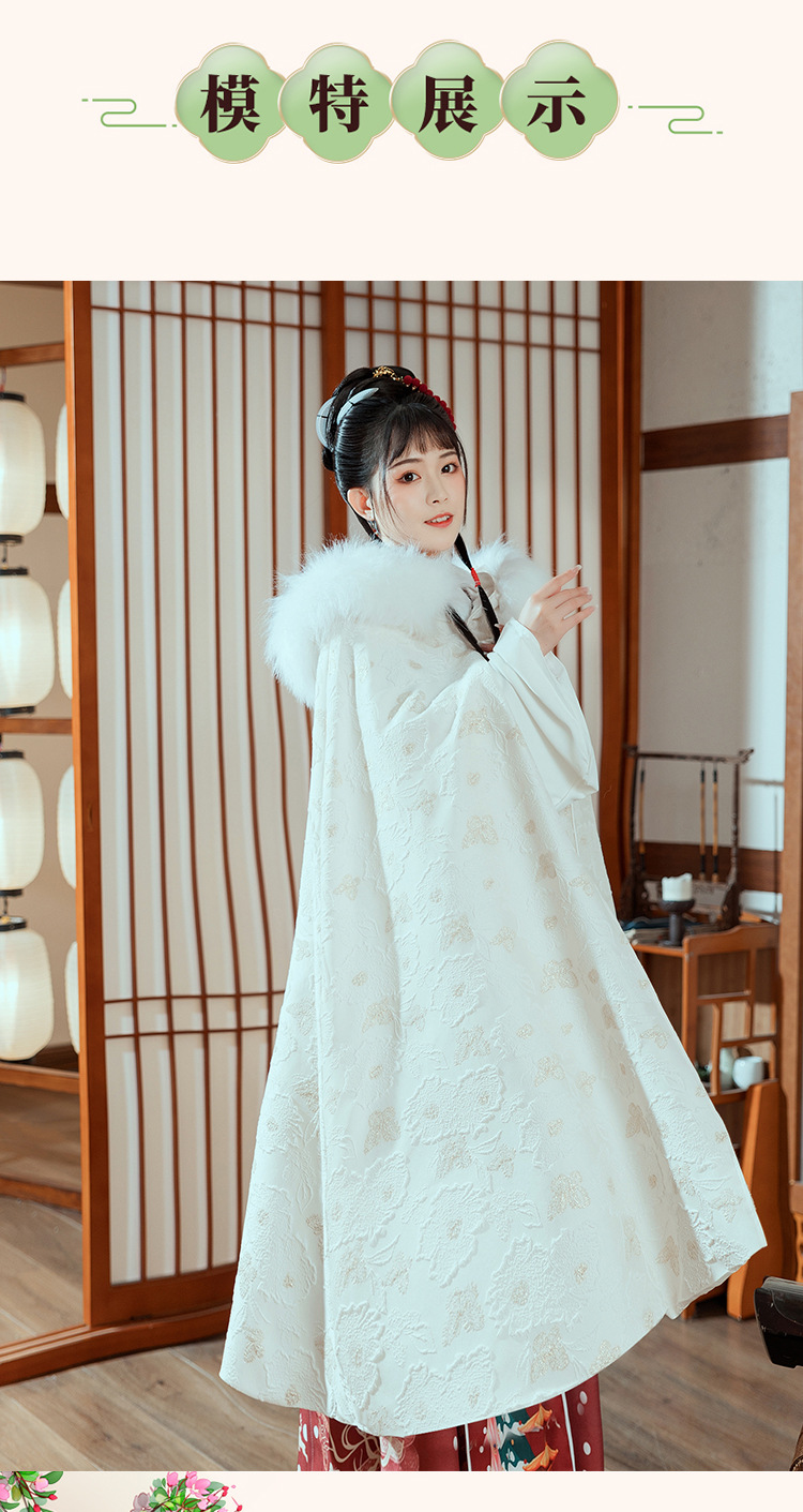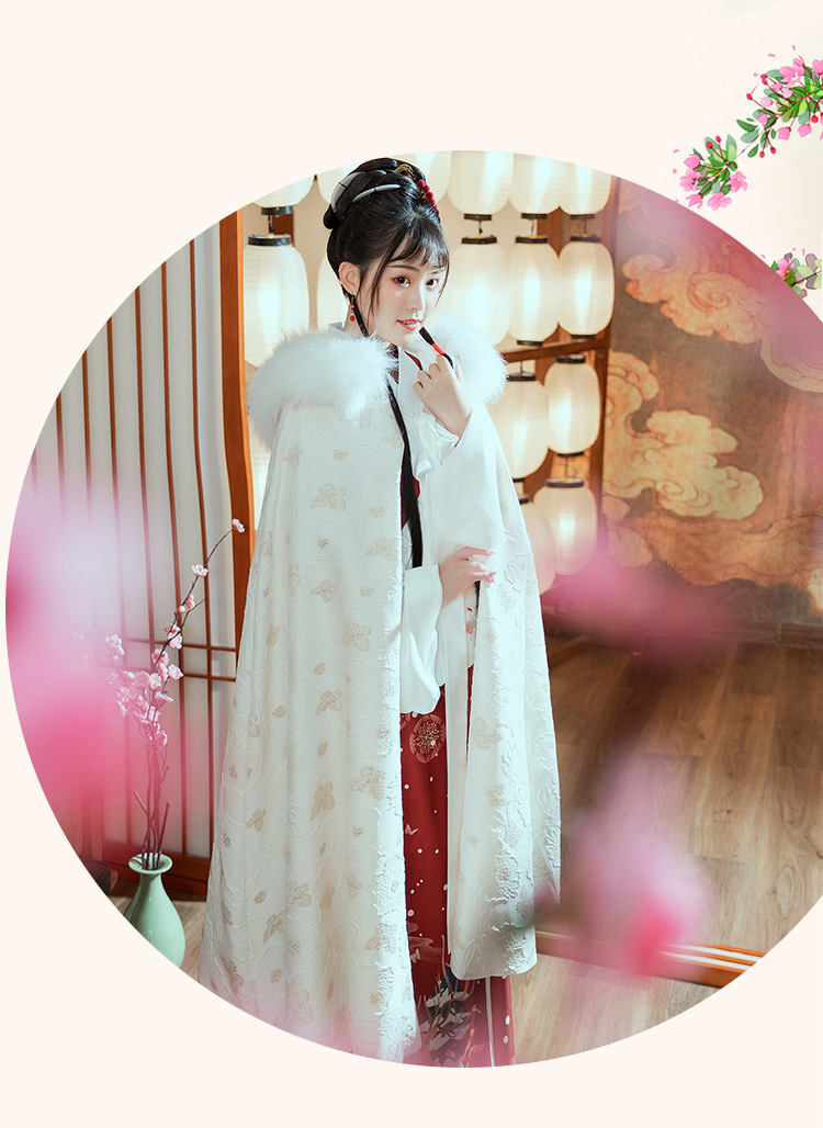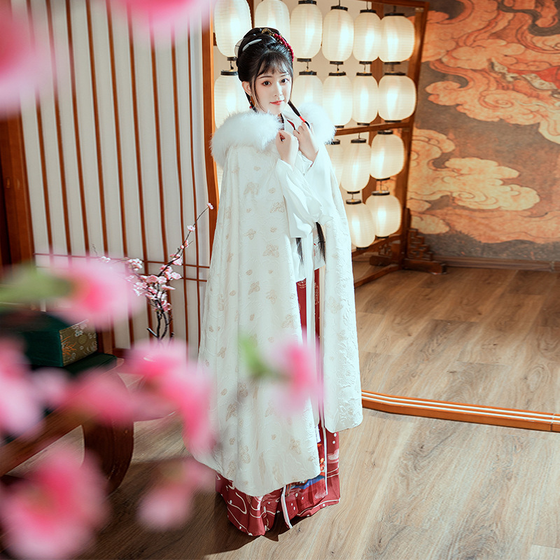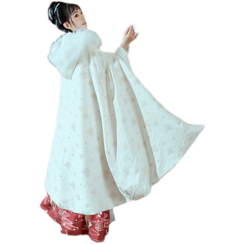 中国风冬装加绒加厚提花暗纹汉服披风仙气大毛领保暖斗篷女士外套