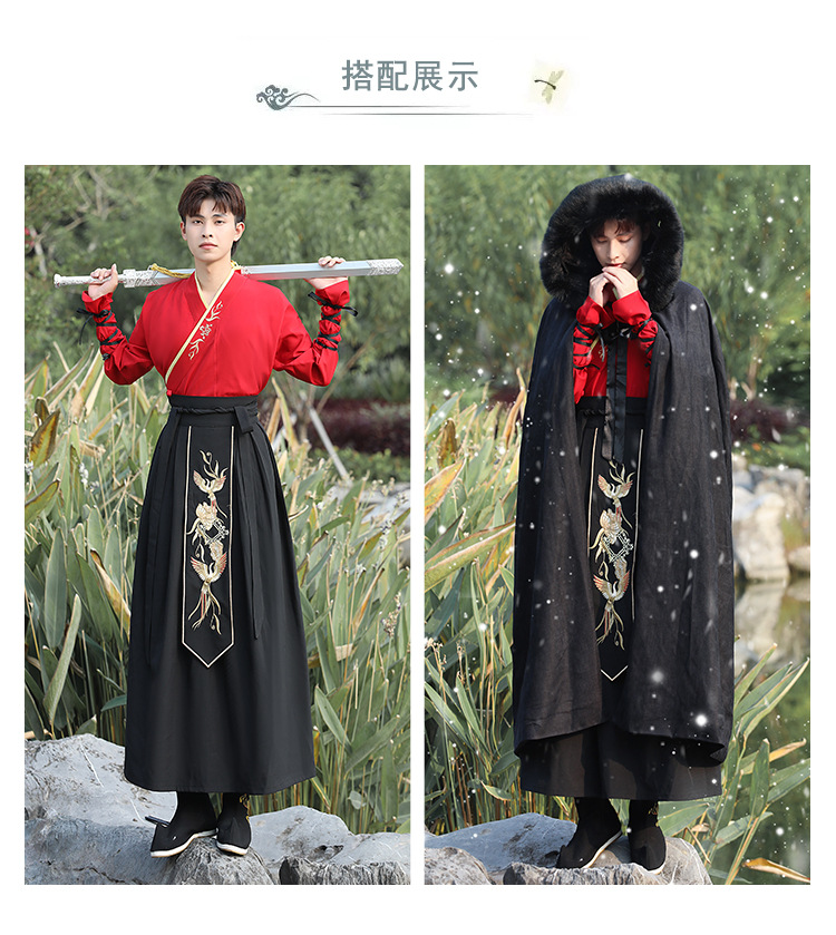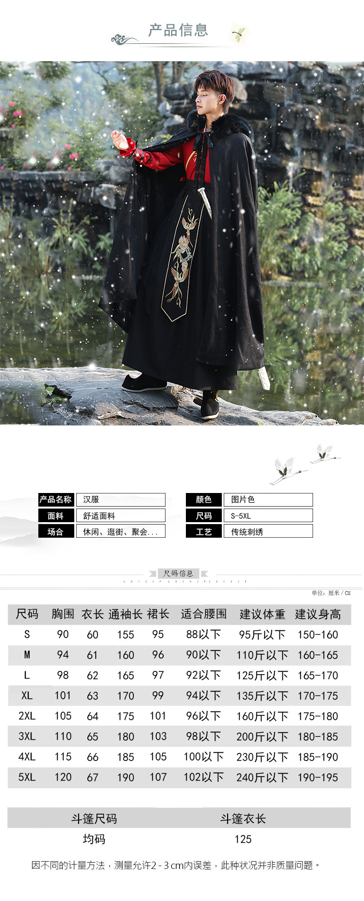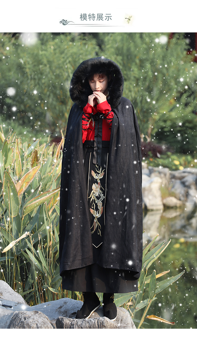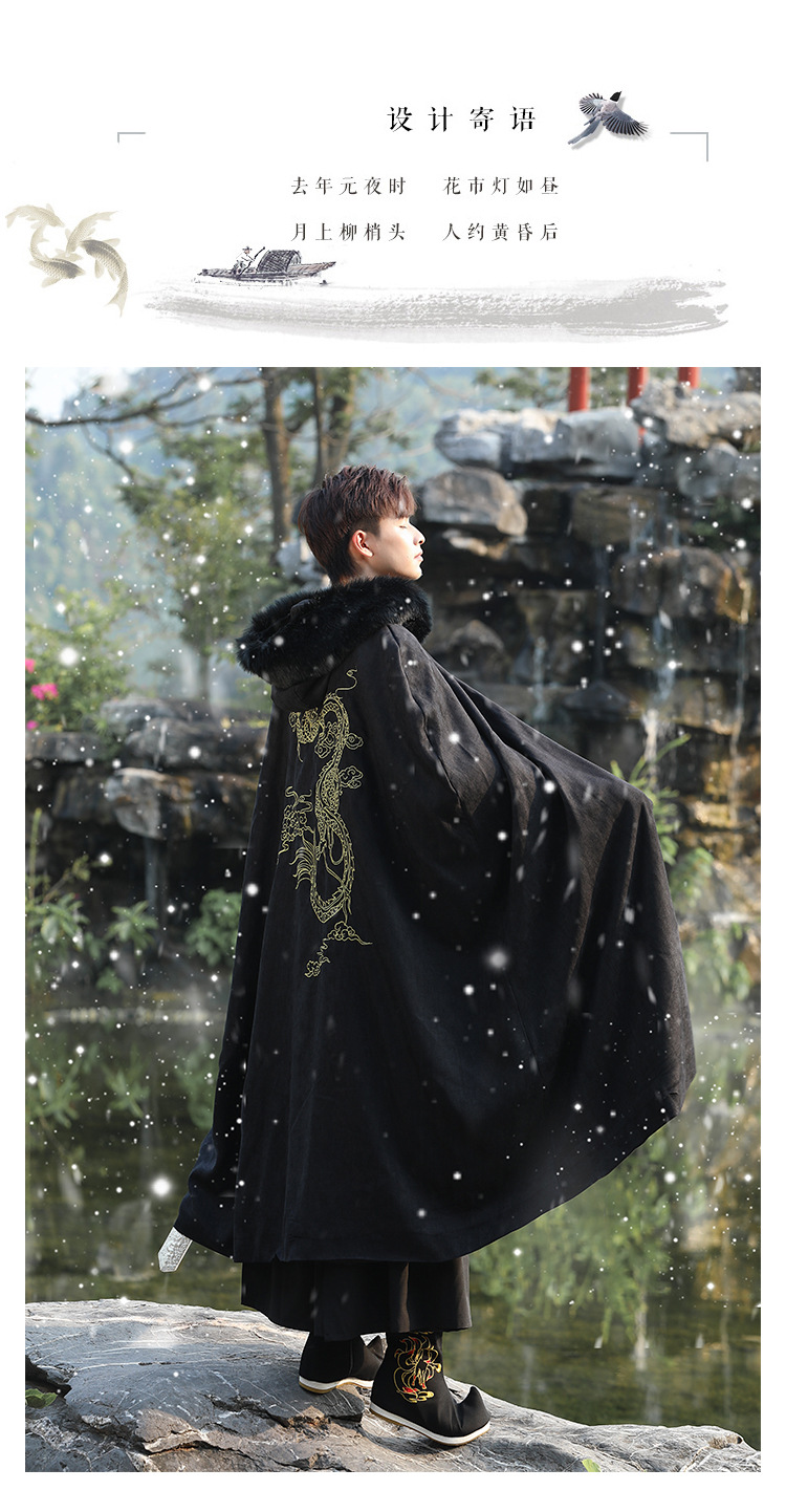 中国风冬季汉服男中长款斗篷保暖加绒加厚款龙纹绣花武侠披风外套