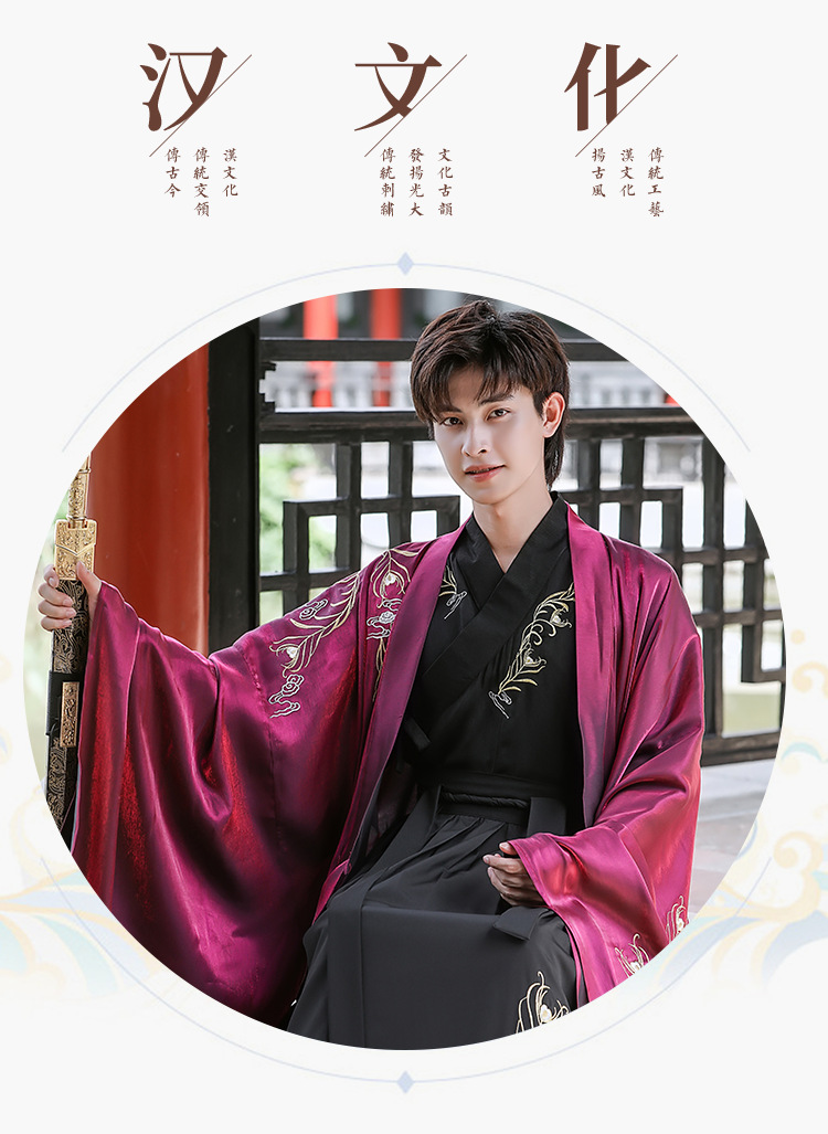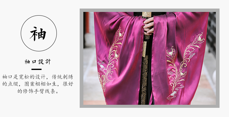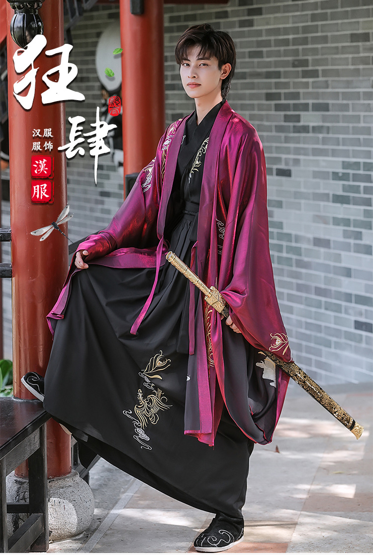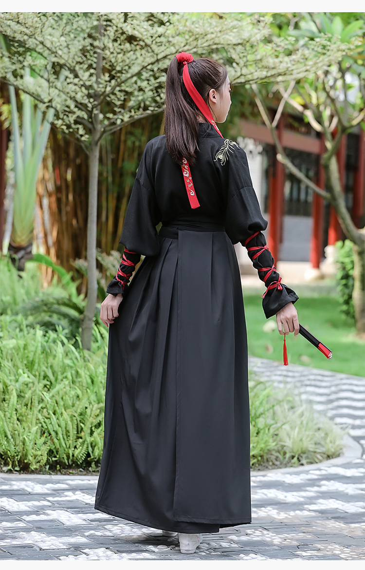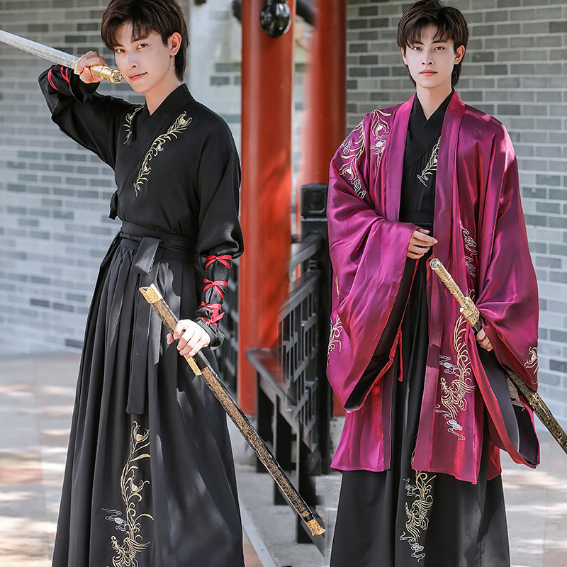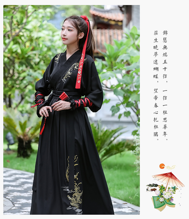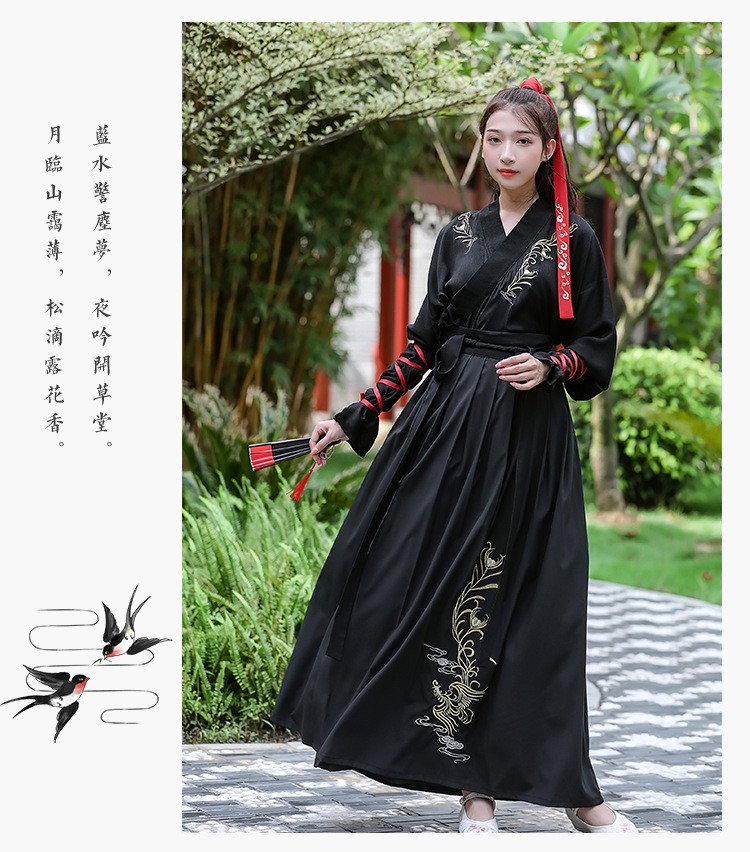 黑色交领汉服凤凰刺绣男女CP武侠中国风学生日常表演大码套装班服
