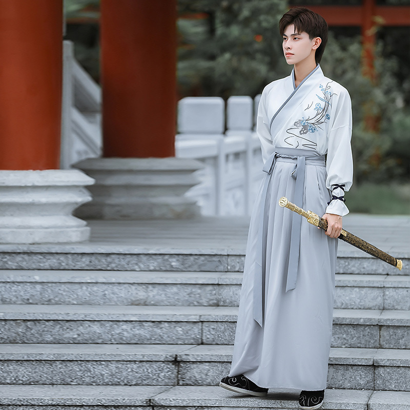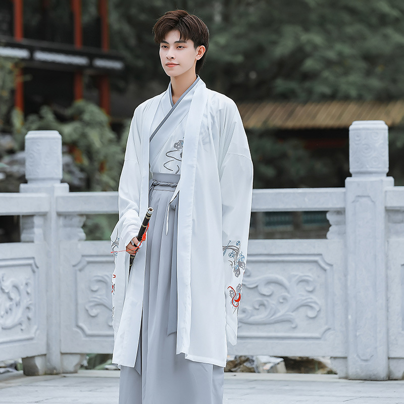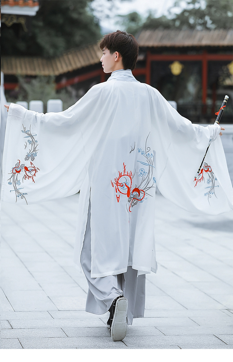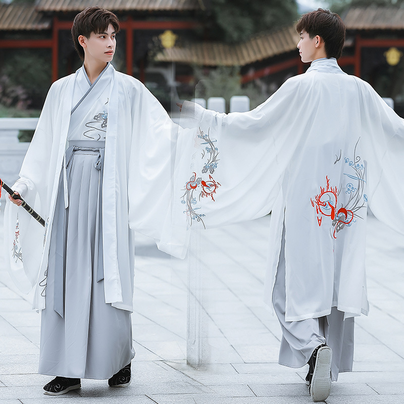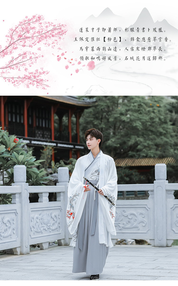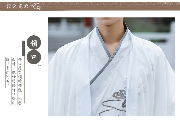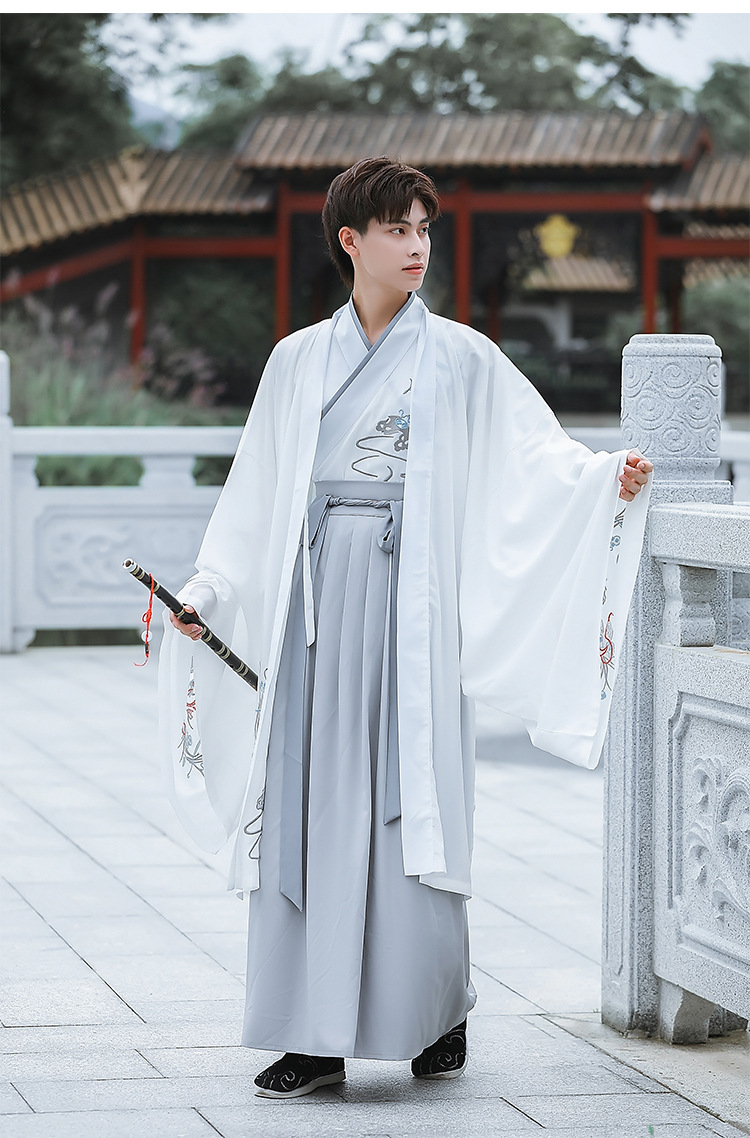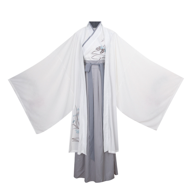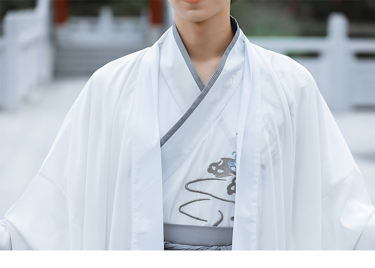 中国风白色大袖外氅交领绣花上衣襦裙广袖薄款男生汉服古装演出服