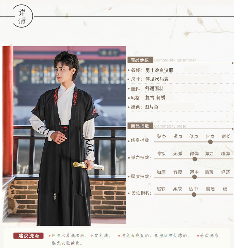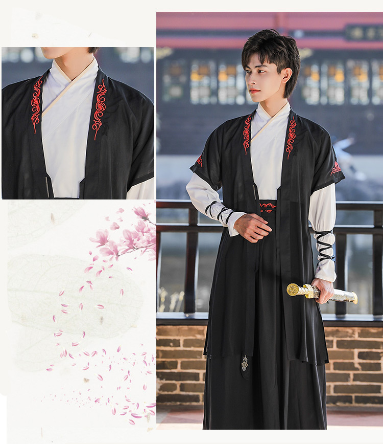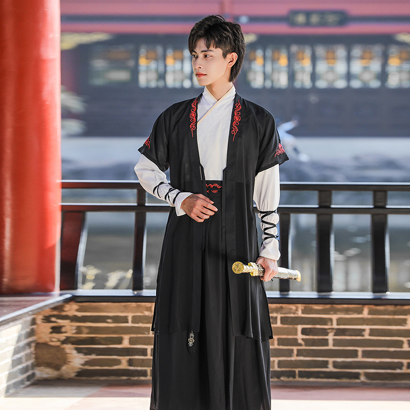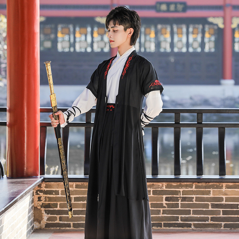 国风宋制半臂开衫汉服男半臂中国风侠客男仙气大码古装古风三件套