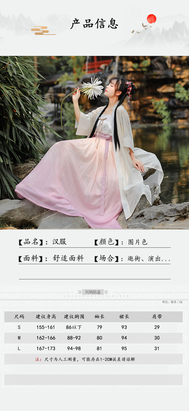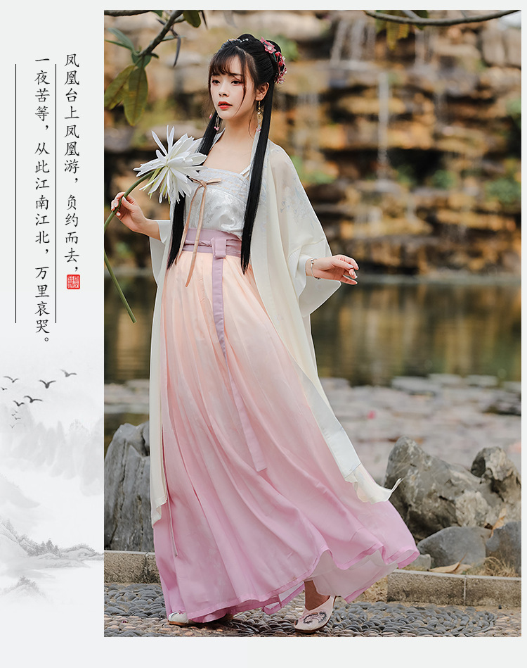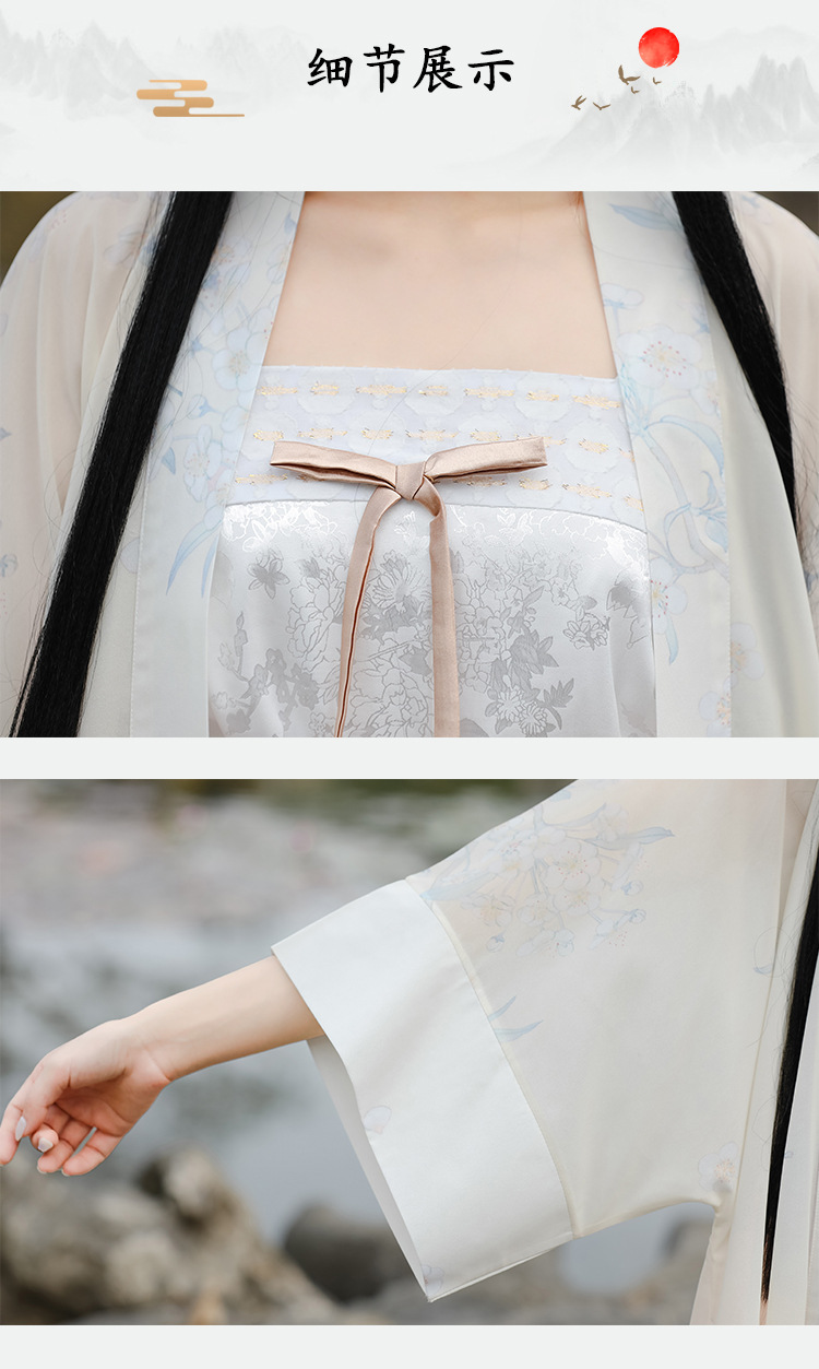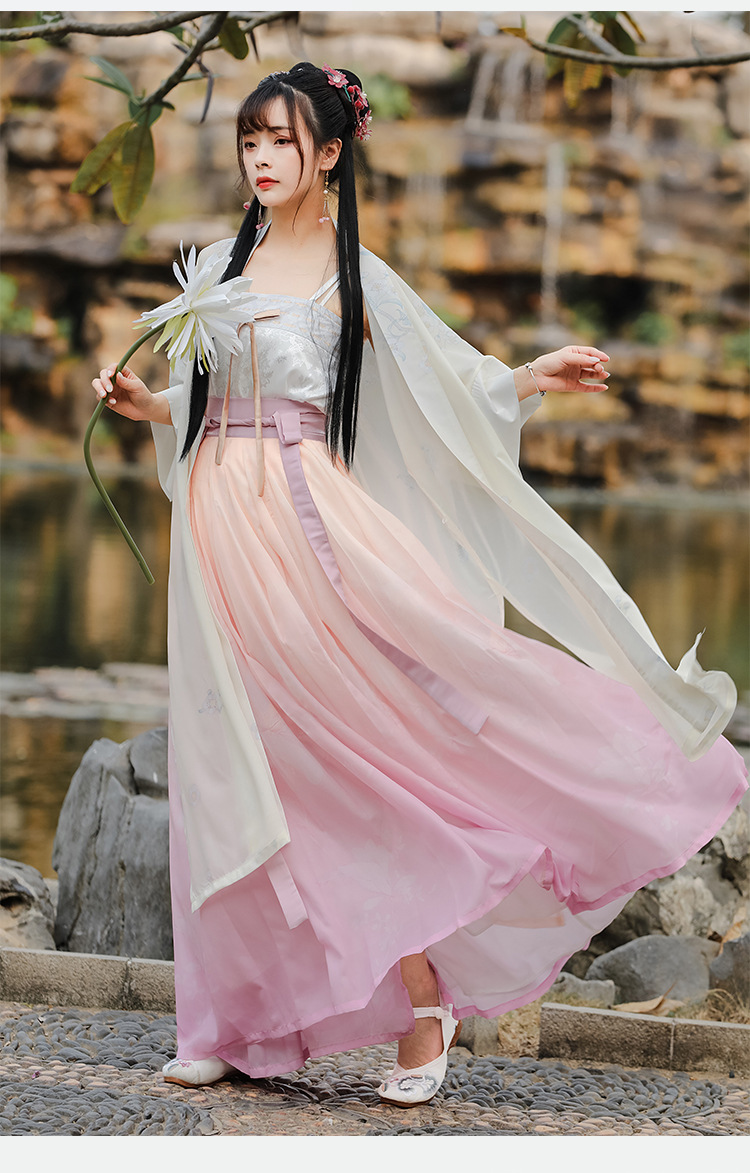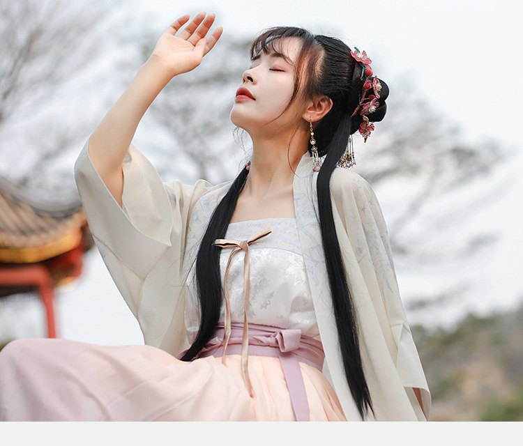 粉色梨花刺绣汉服对襟阔袖长褙子齐腰百迭裙吊带宋抹女仙气三件套