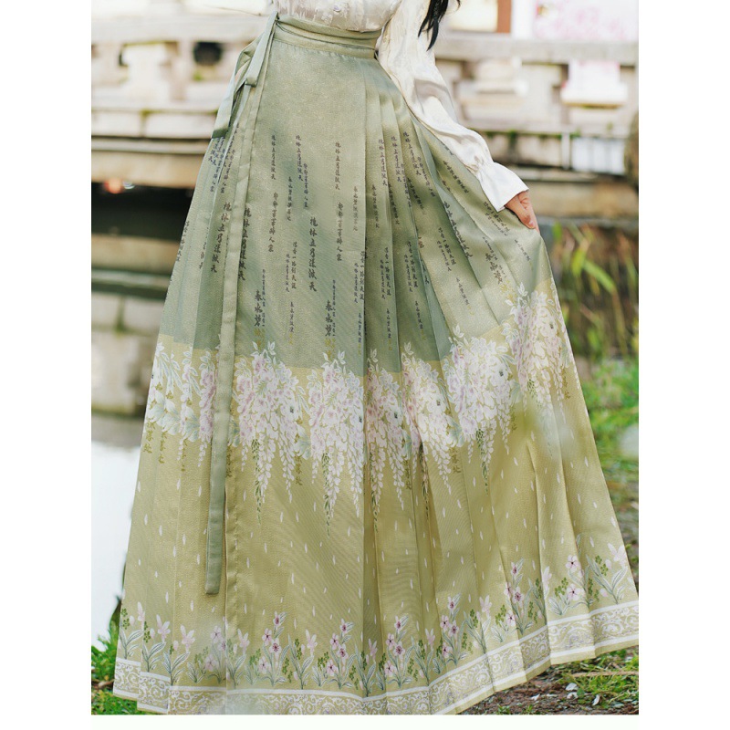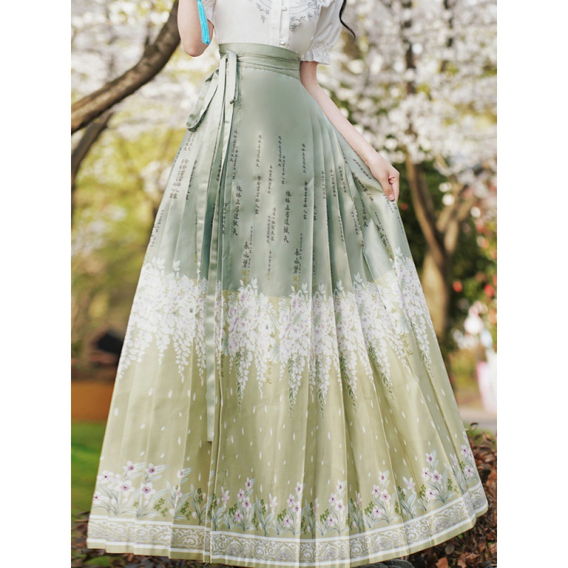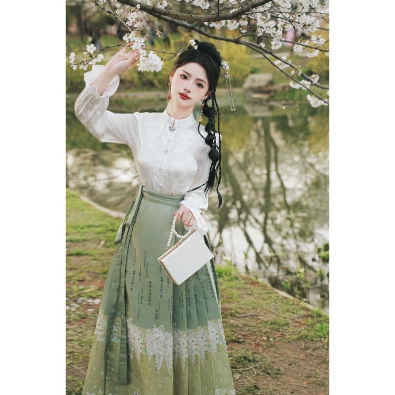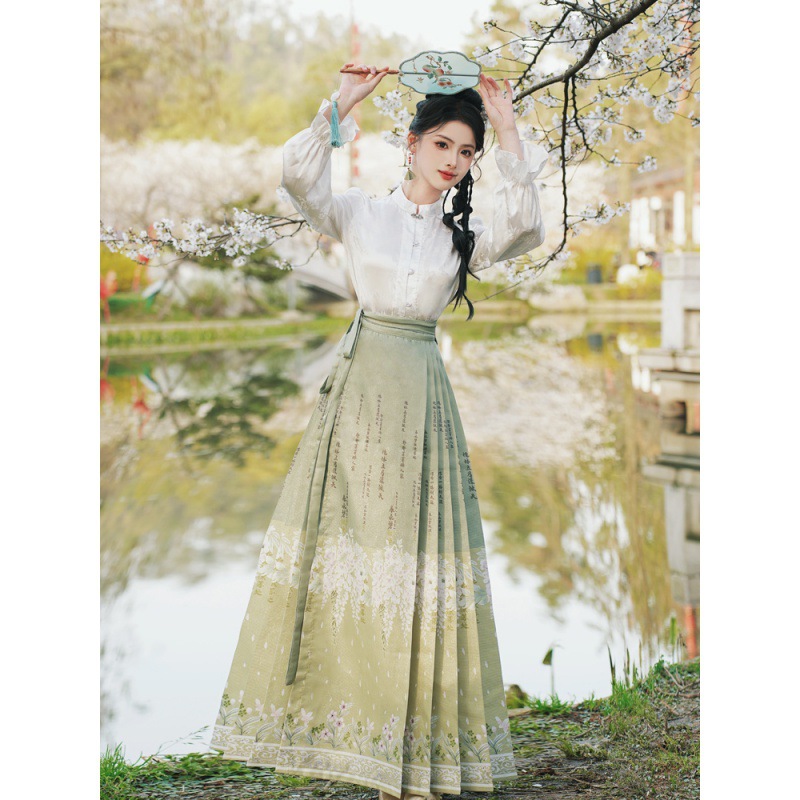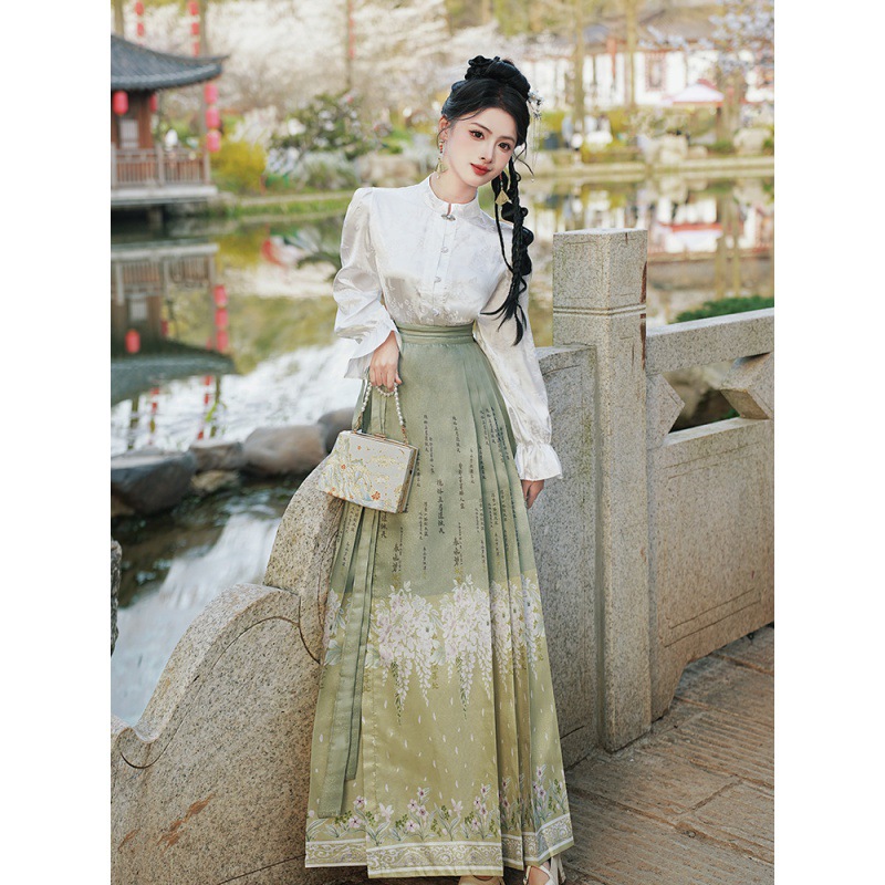 春夏新款新中式中国风汉服汉元素提花缎面上衣金线提花马面裙套装