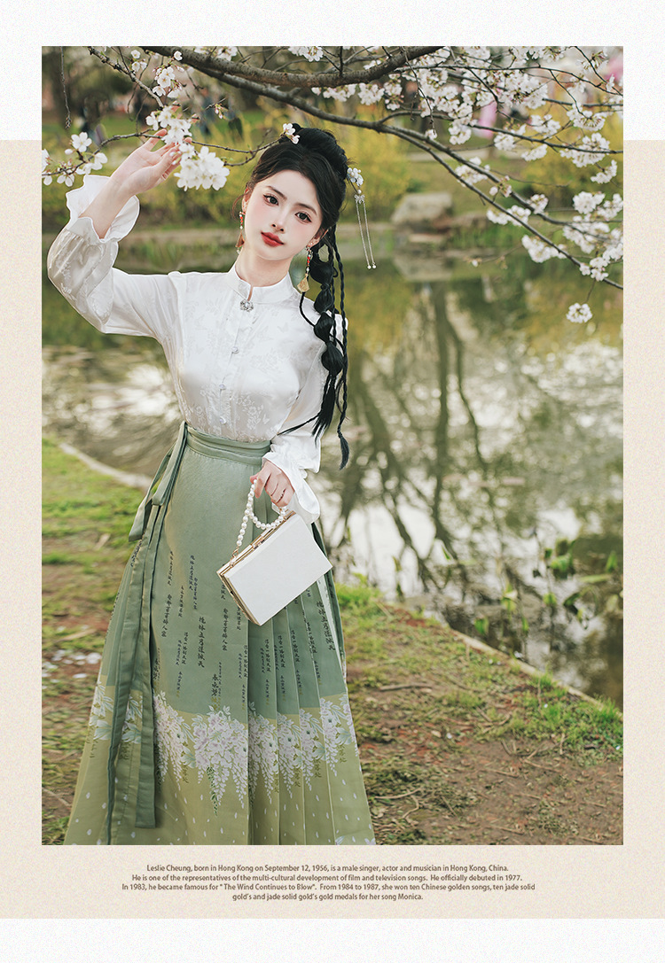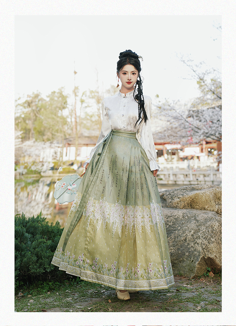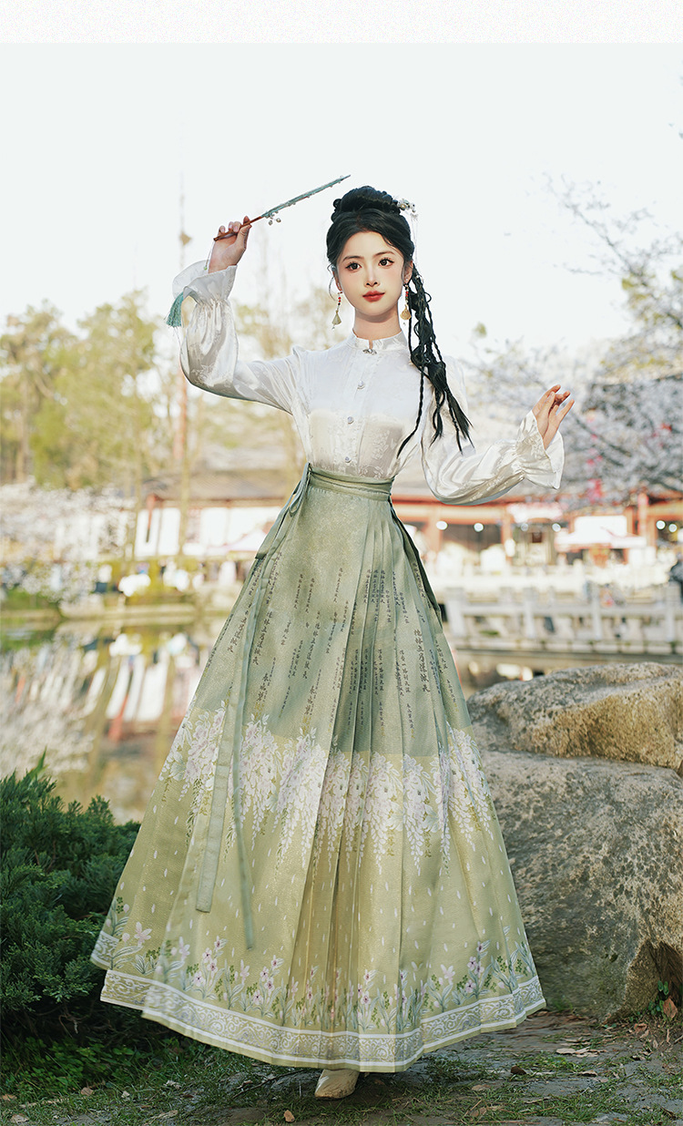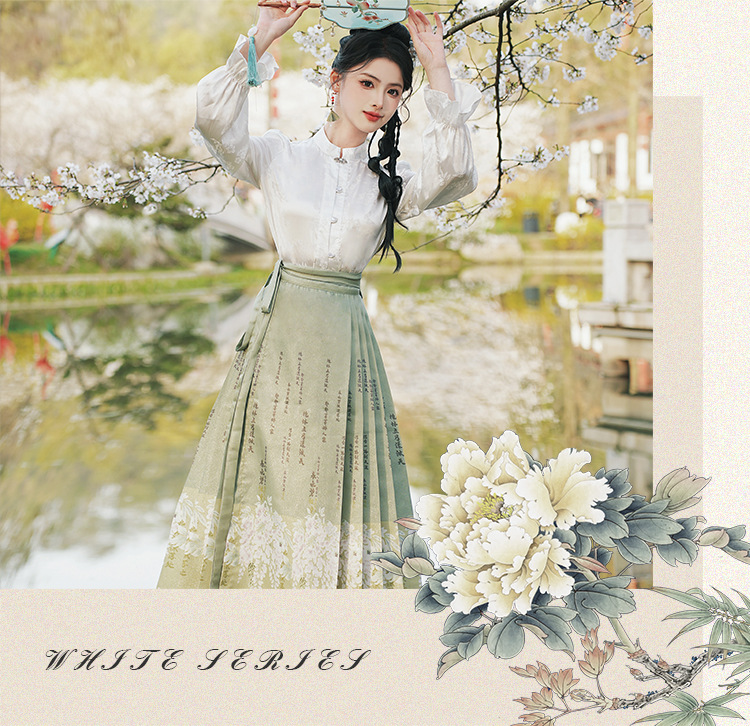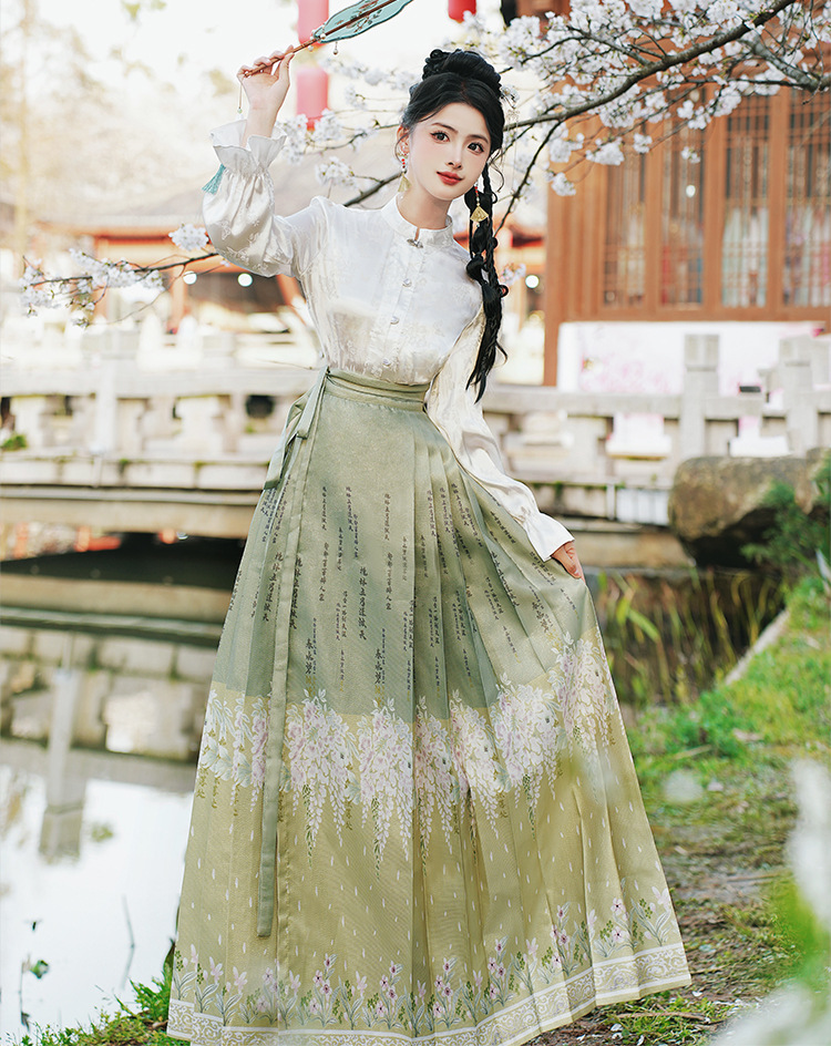 春夏新款新中式中国风汉服汉元素提花缎面上衣金线提花马面裙套装
