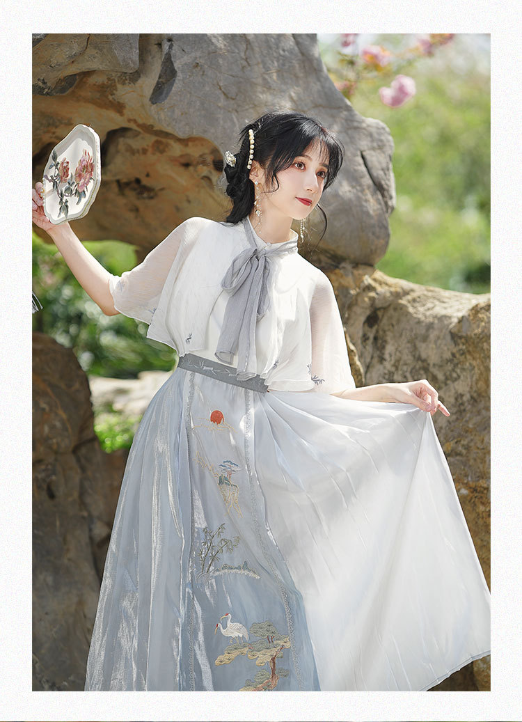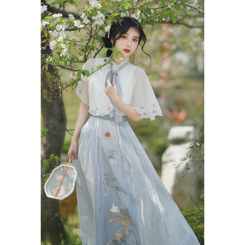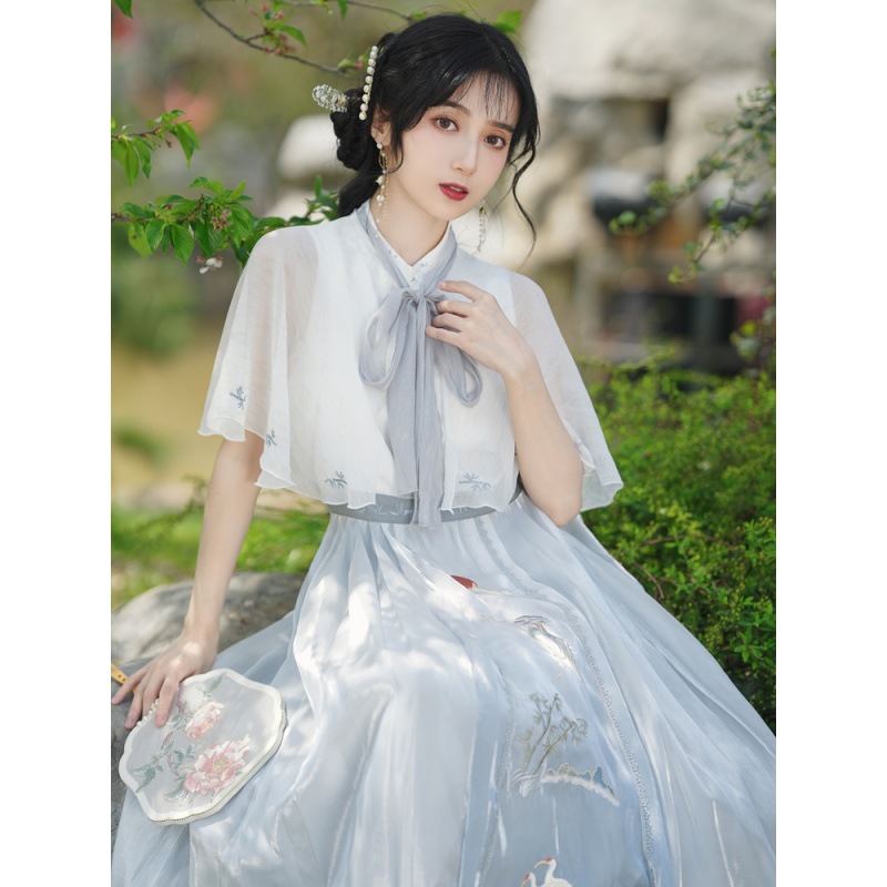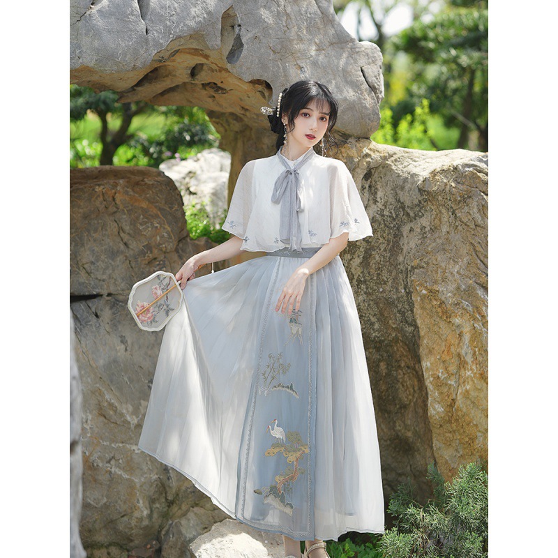 夏装新款汉服汉元素绣花连衣裙新中式女士复古风防晒小披肩两件套