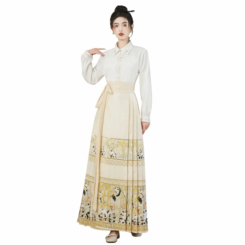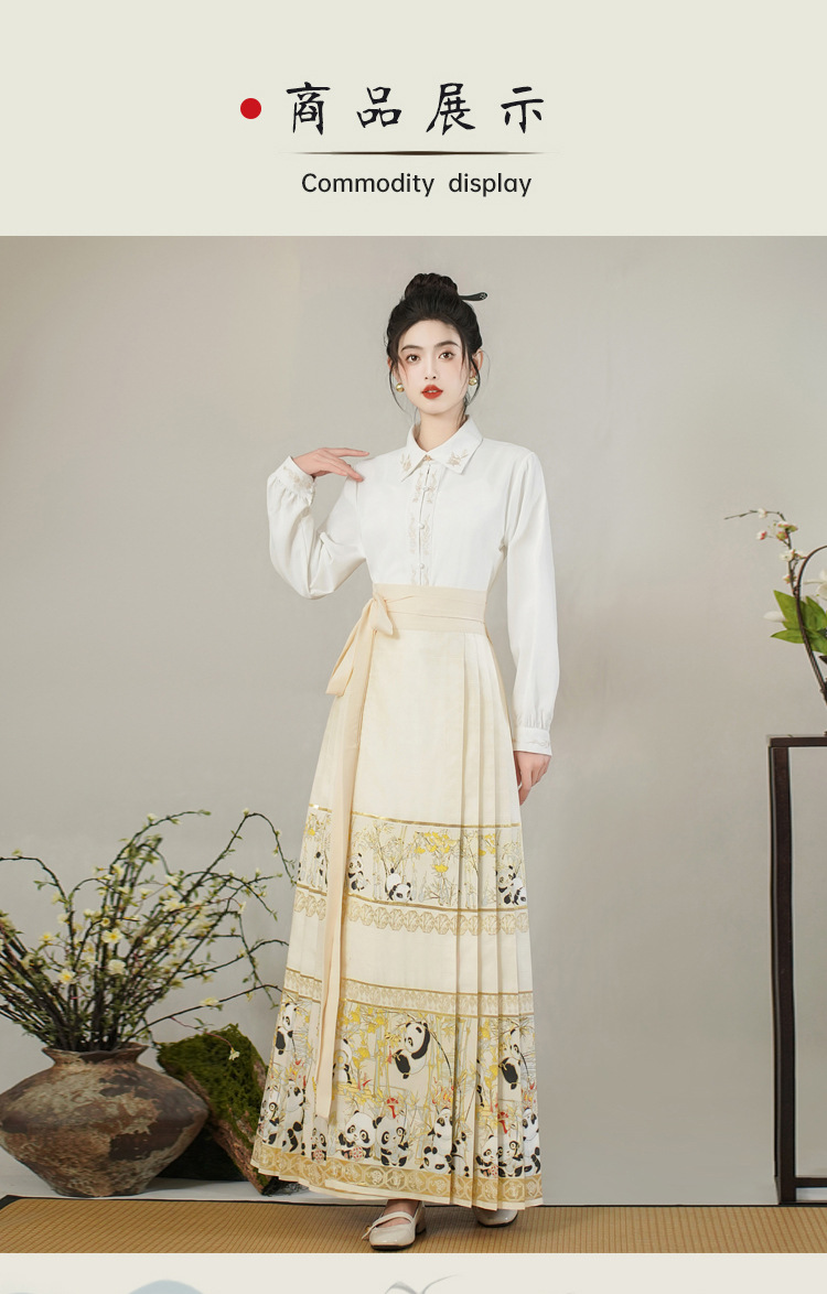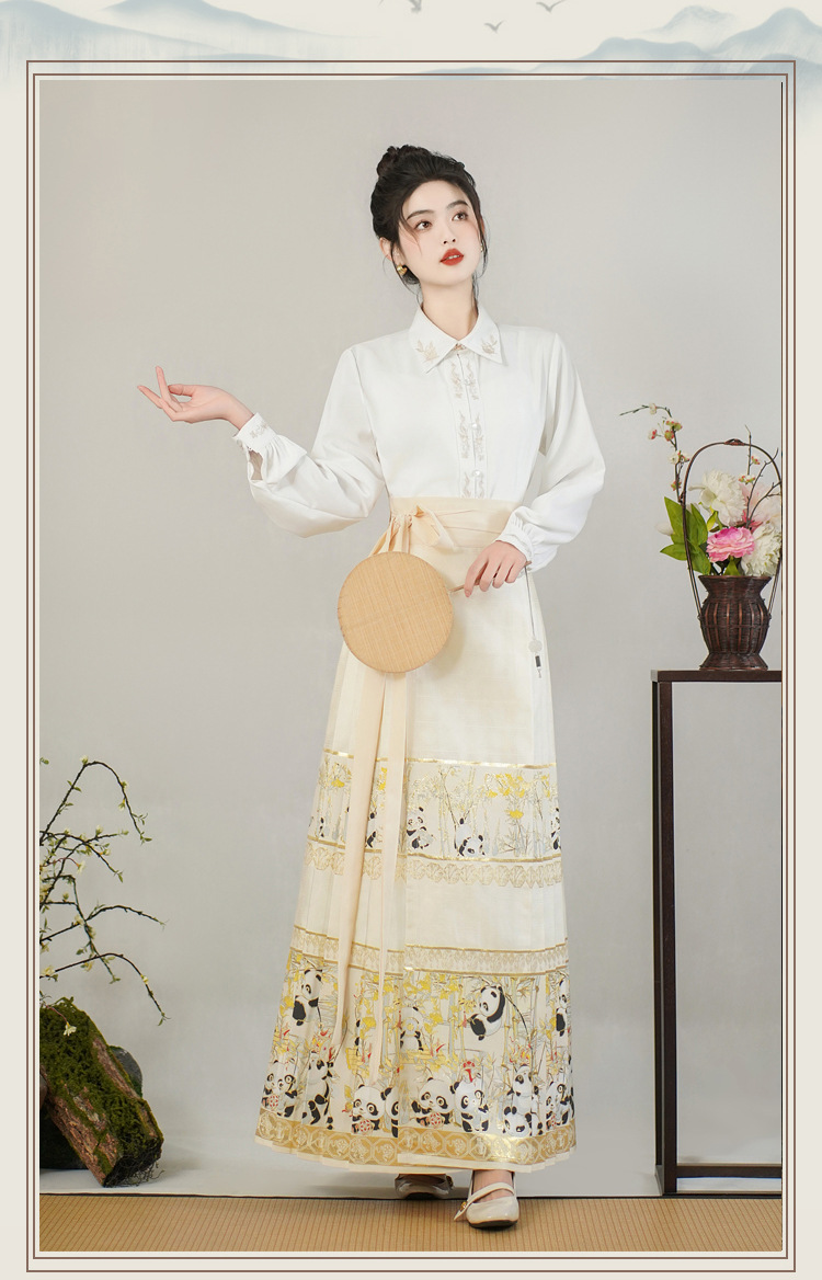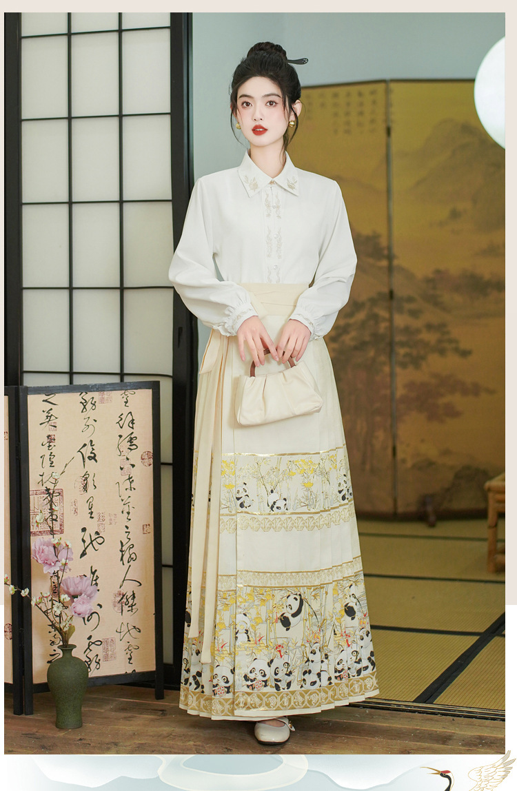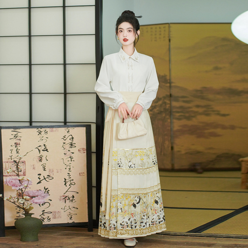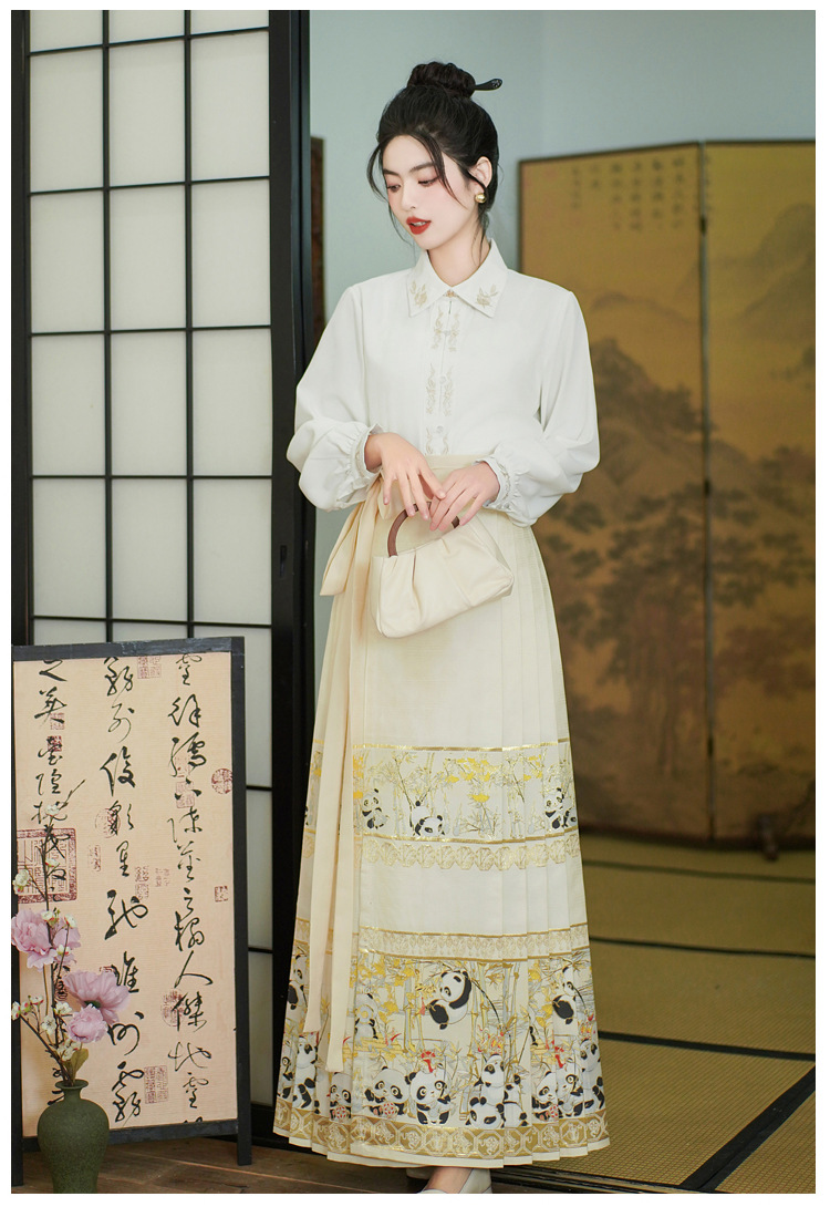 古风金竹熊猫织金妆花马面裙汉服可爱熊猫女装日常通勤新中式衬衣