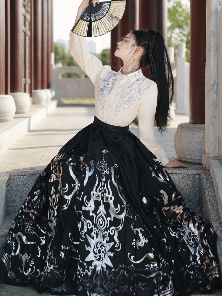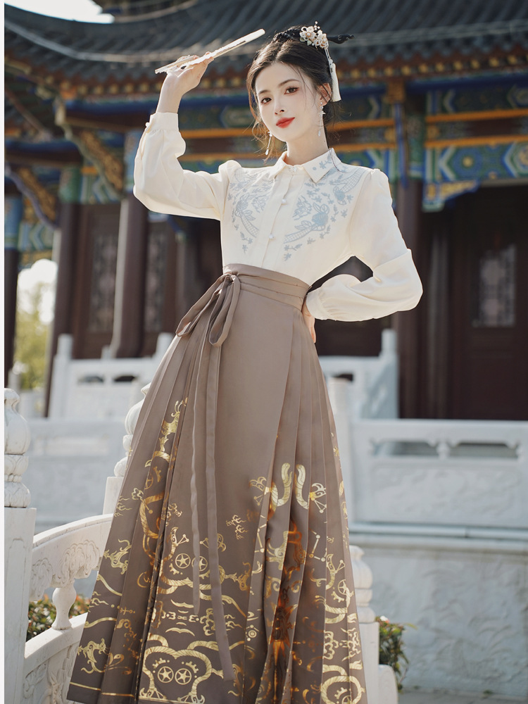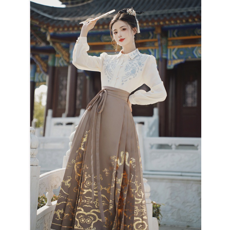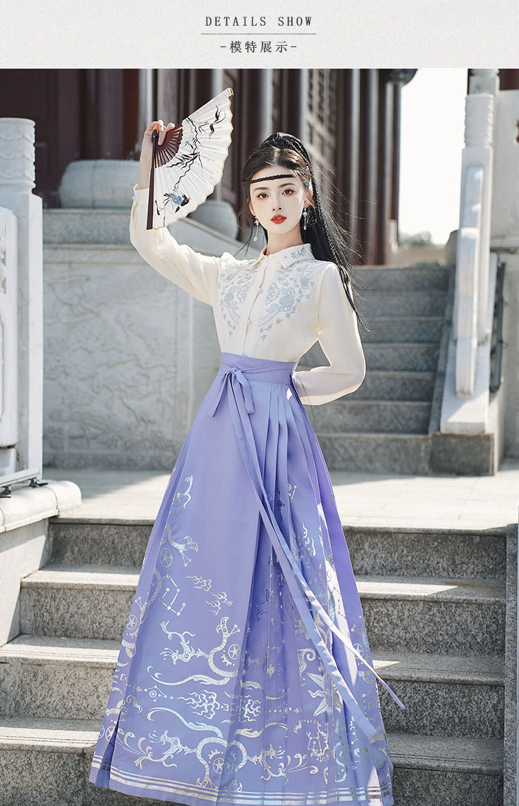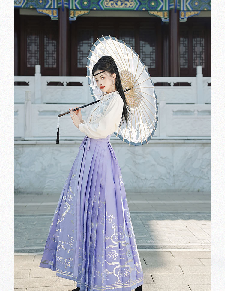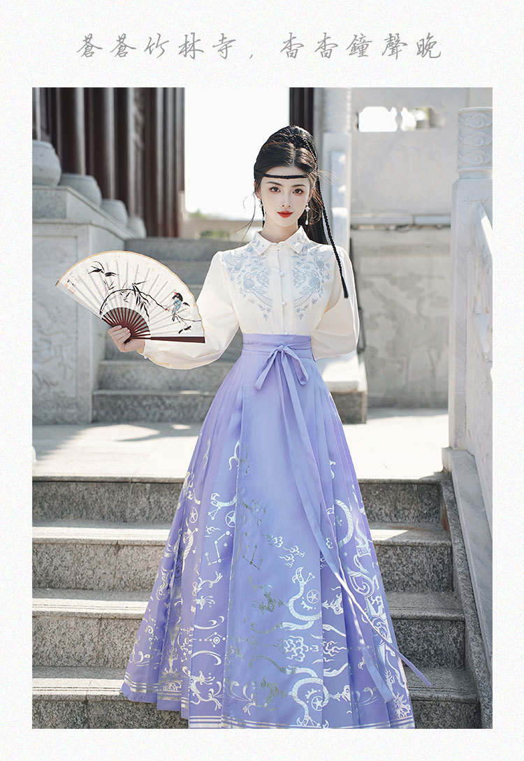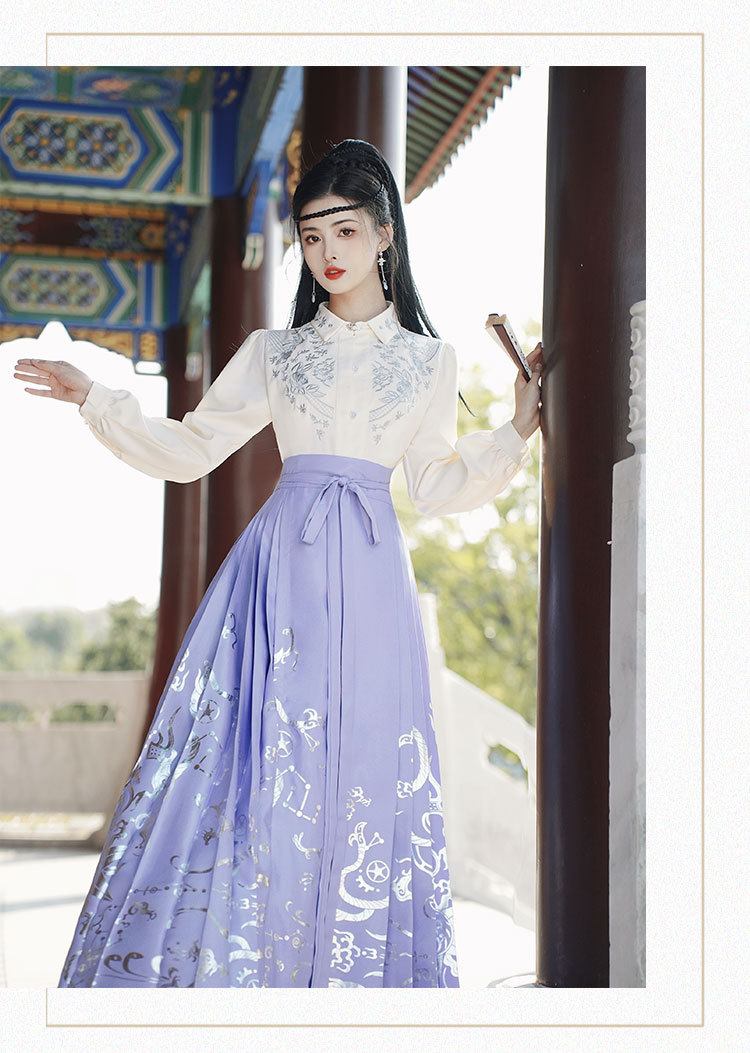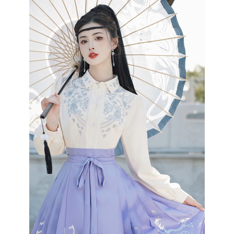 新中式女装国风6503实拍国风汉服汉元素刺绣花长袖+紫色烫金古风
